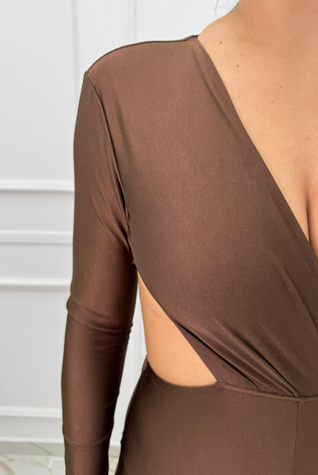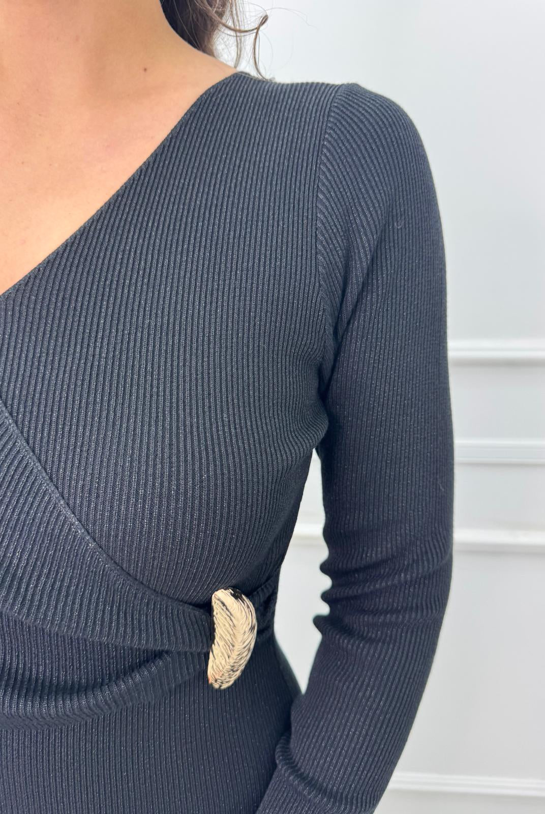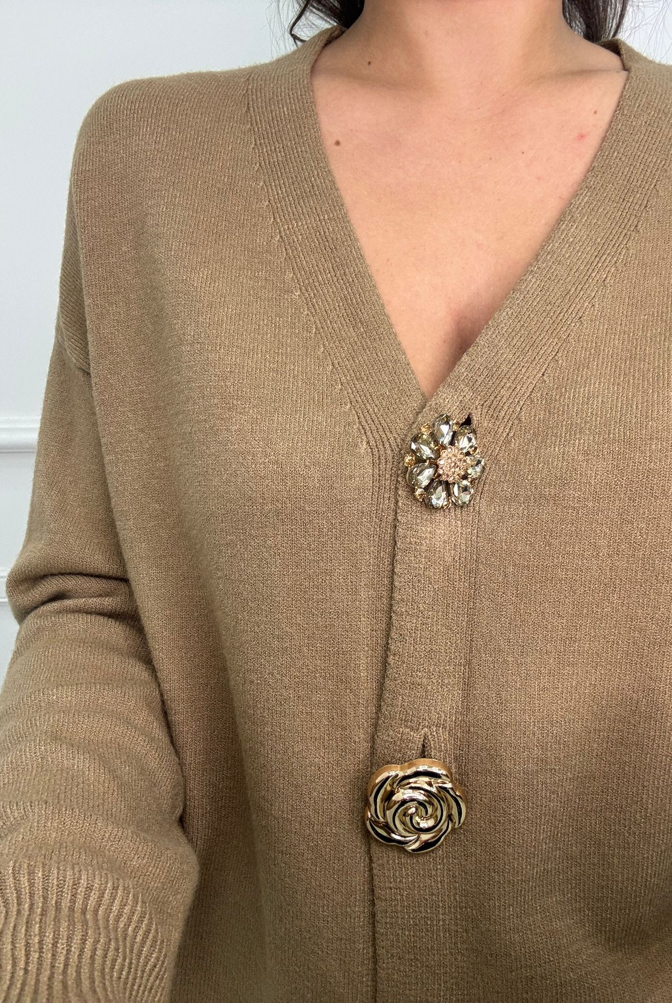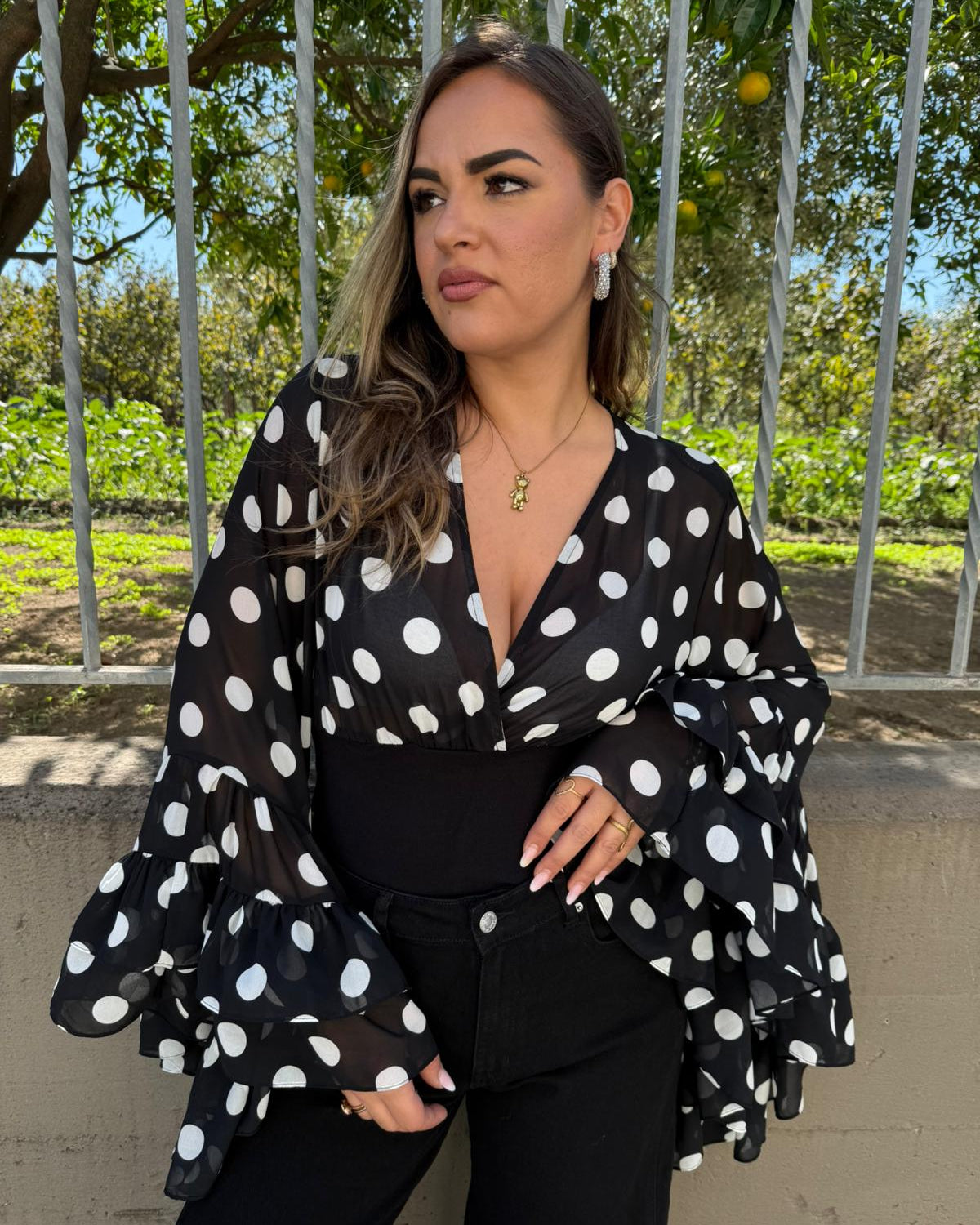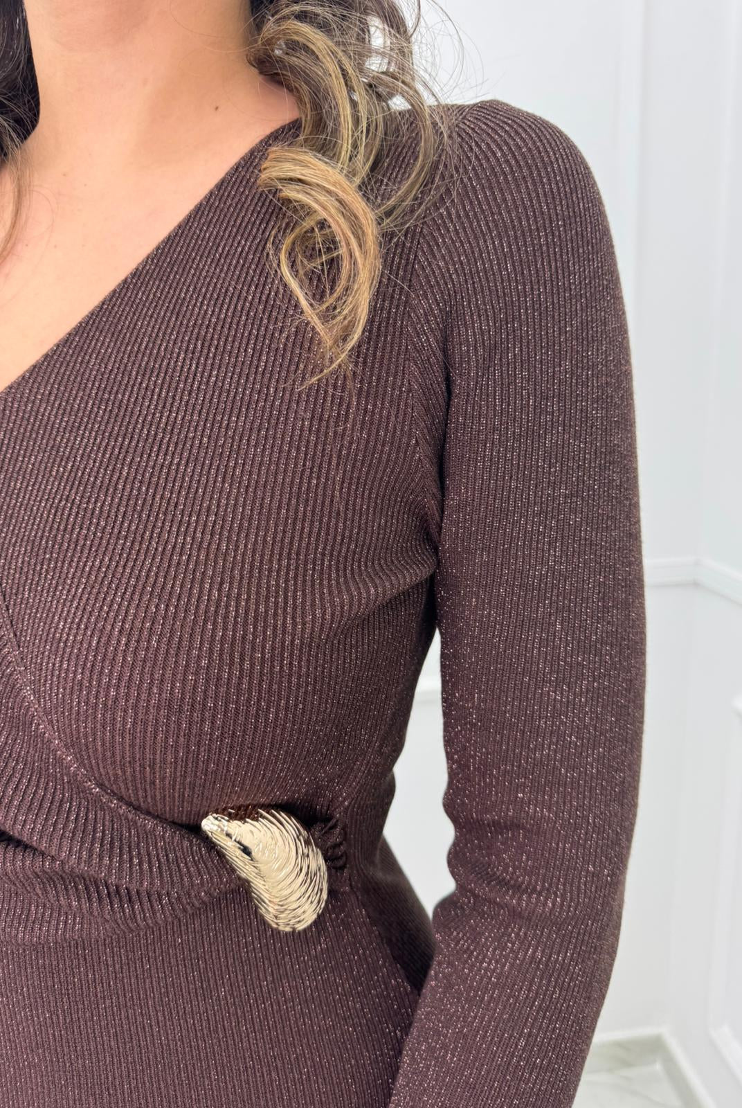 - La modella è una taglia 44, 4^ di seno e indossa la taglia "L"