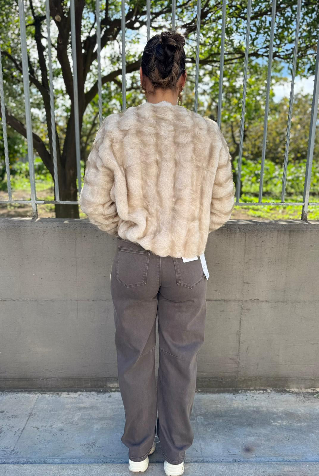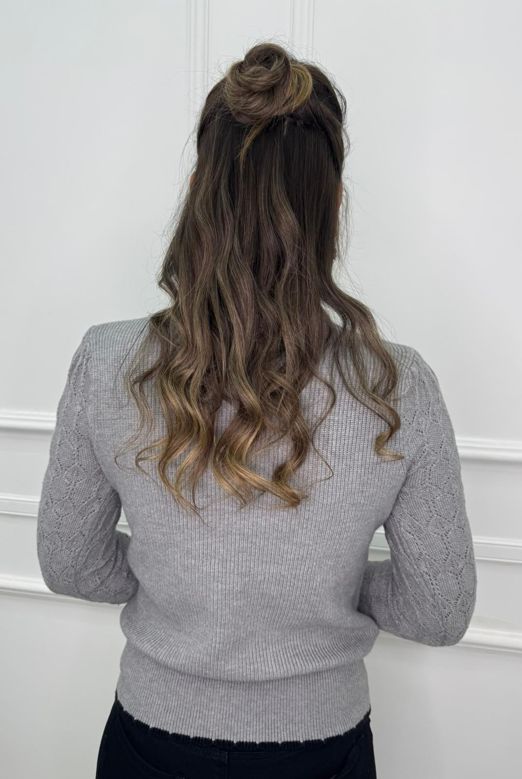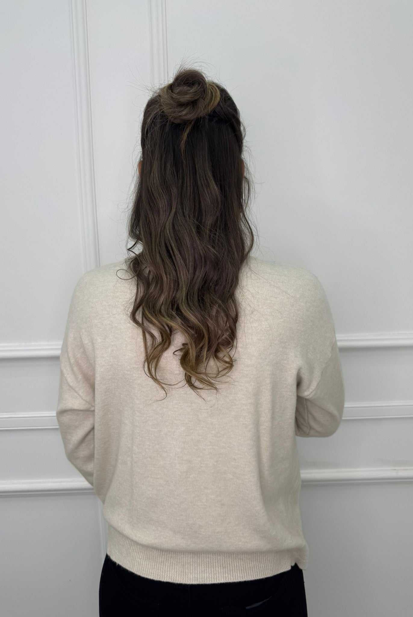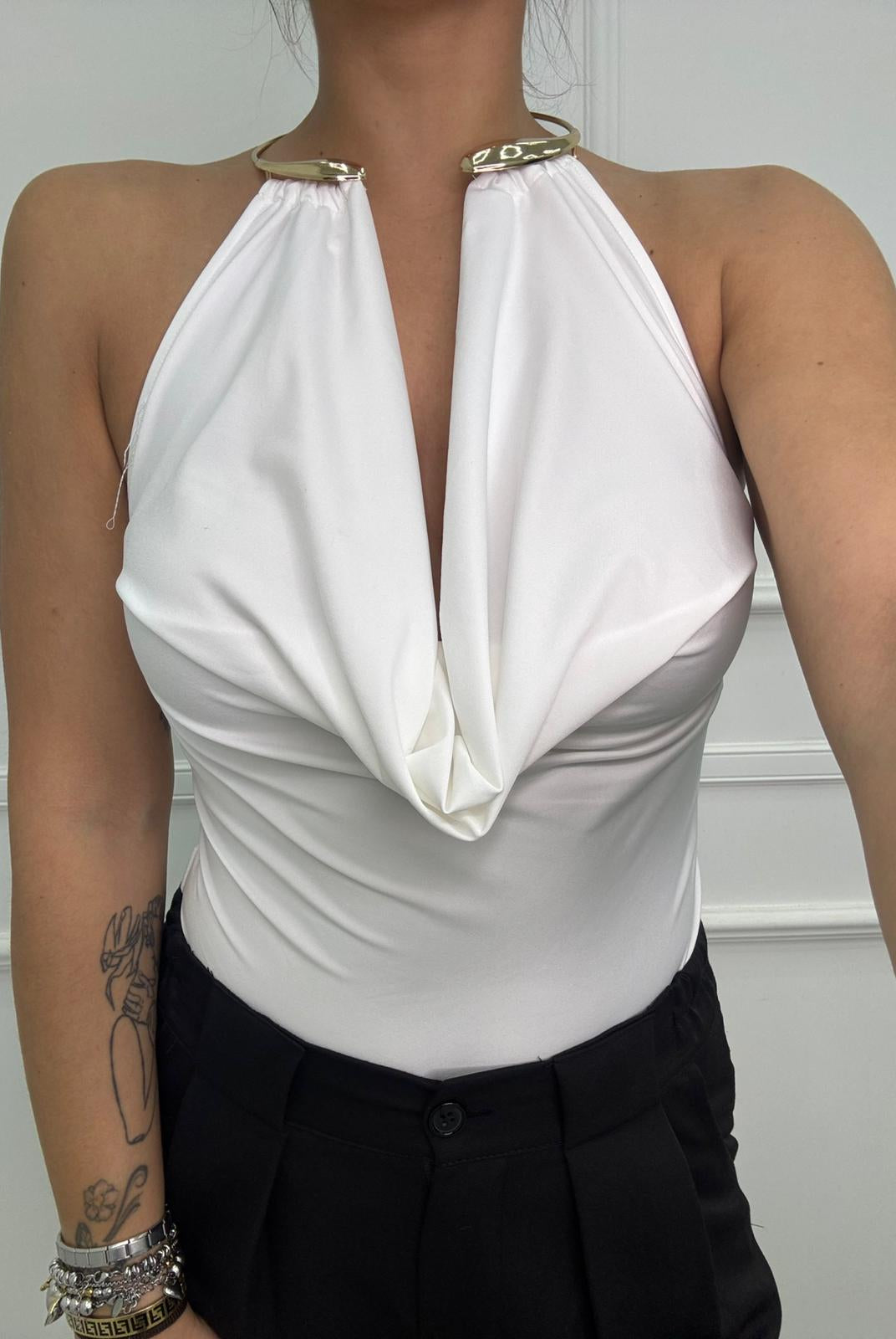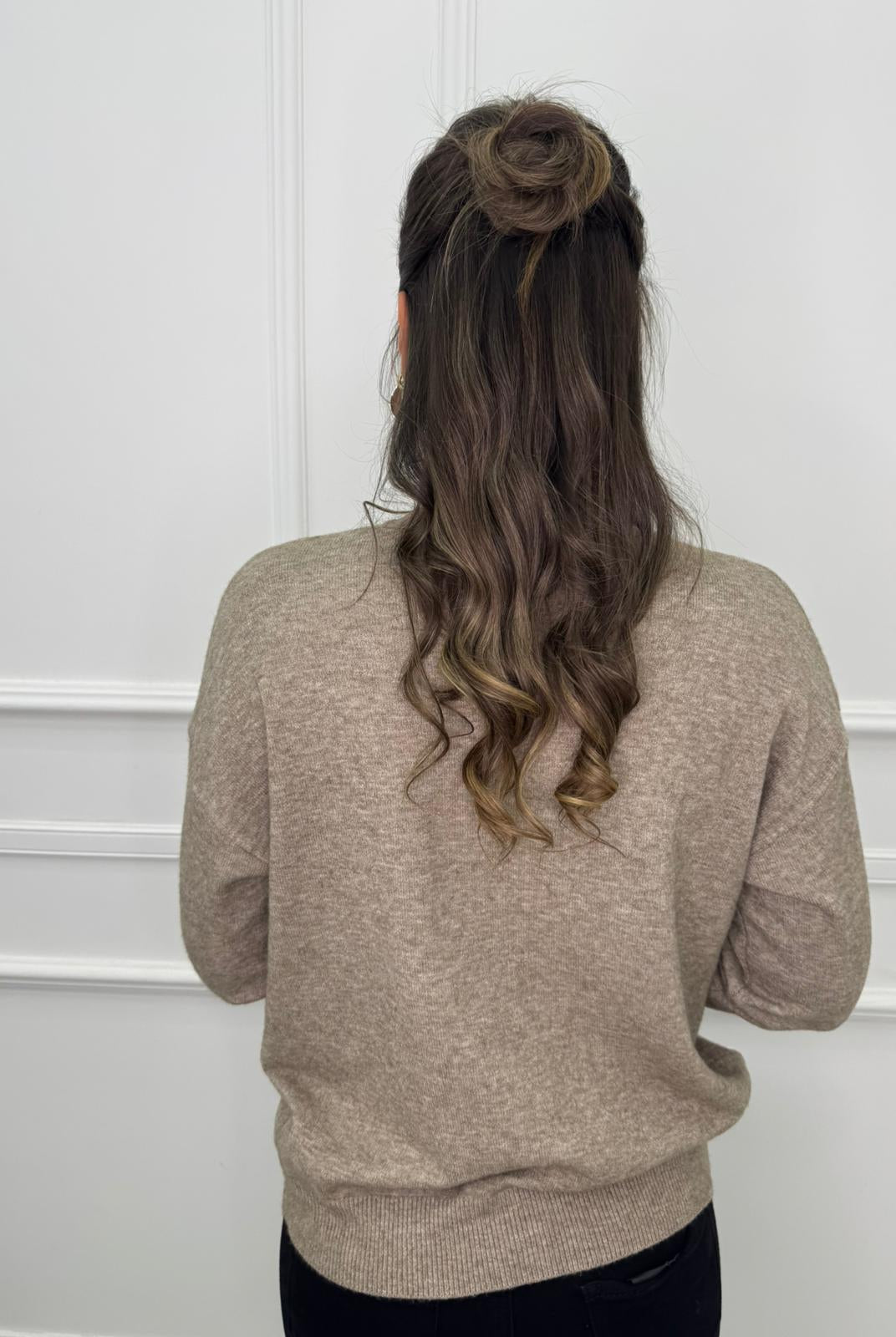 - La modella è una taglia 44, 4^ di seno e indossa la taglia "L"