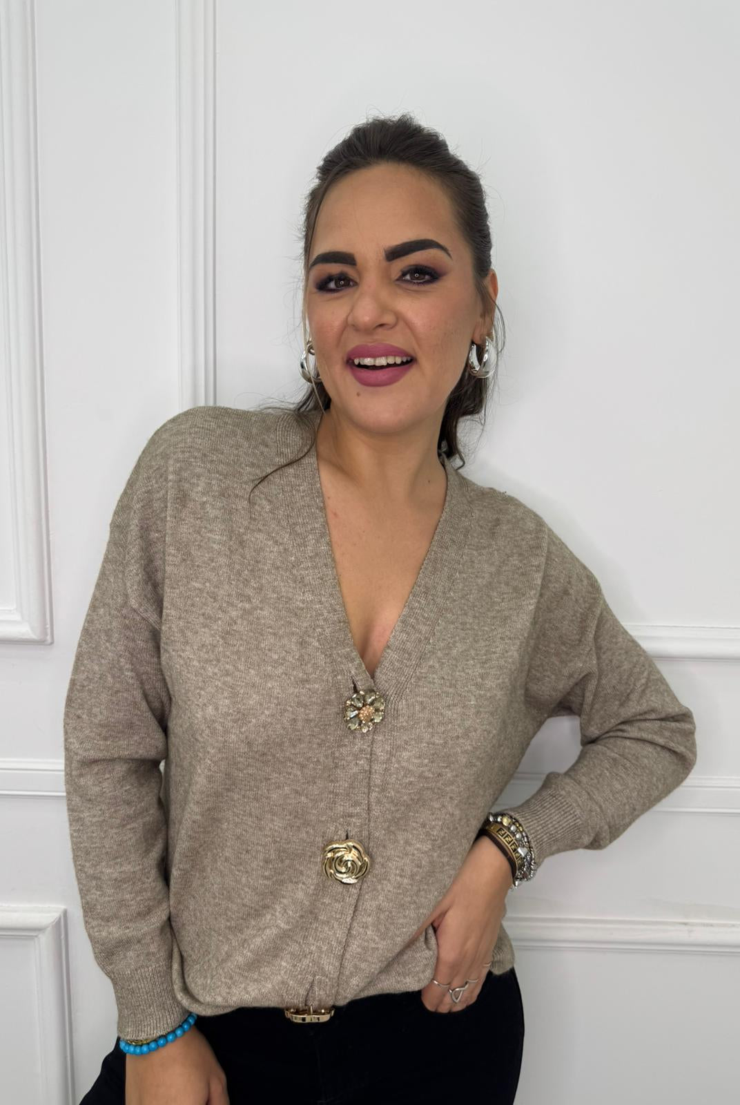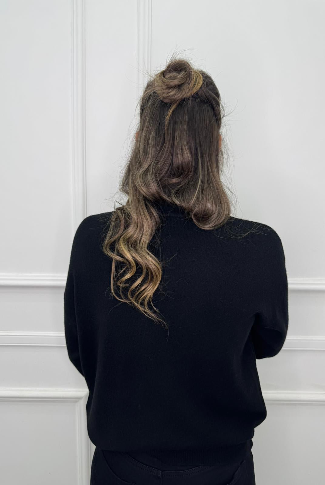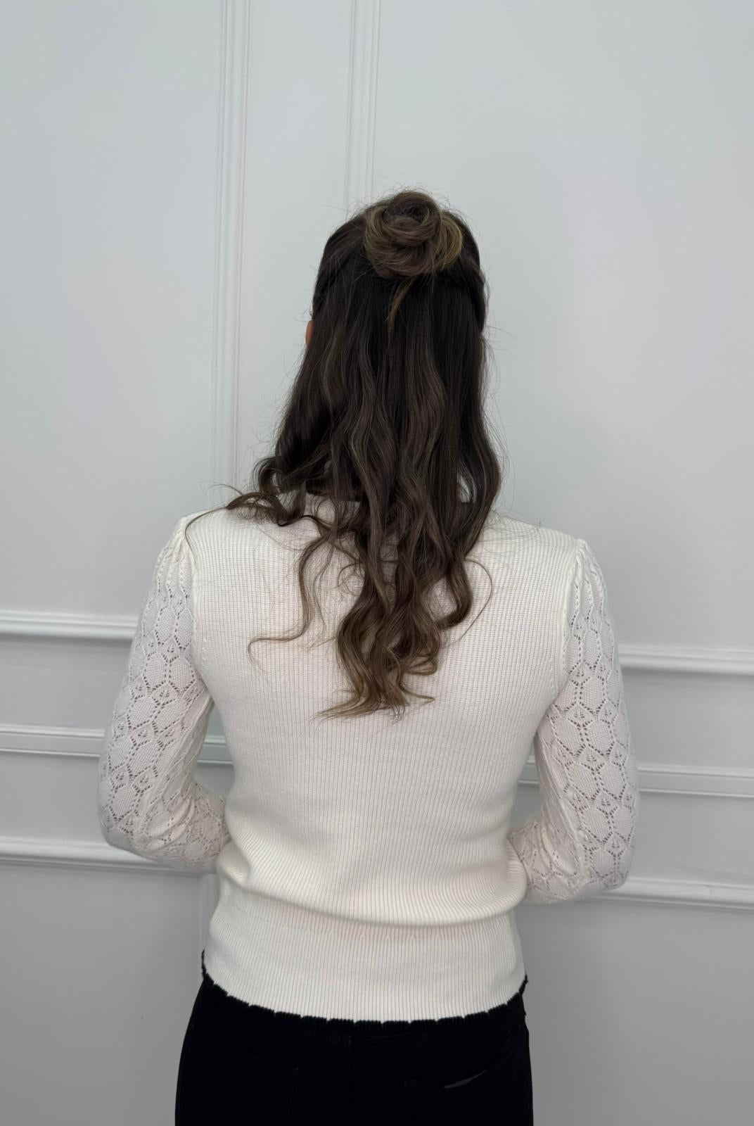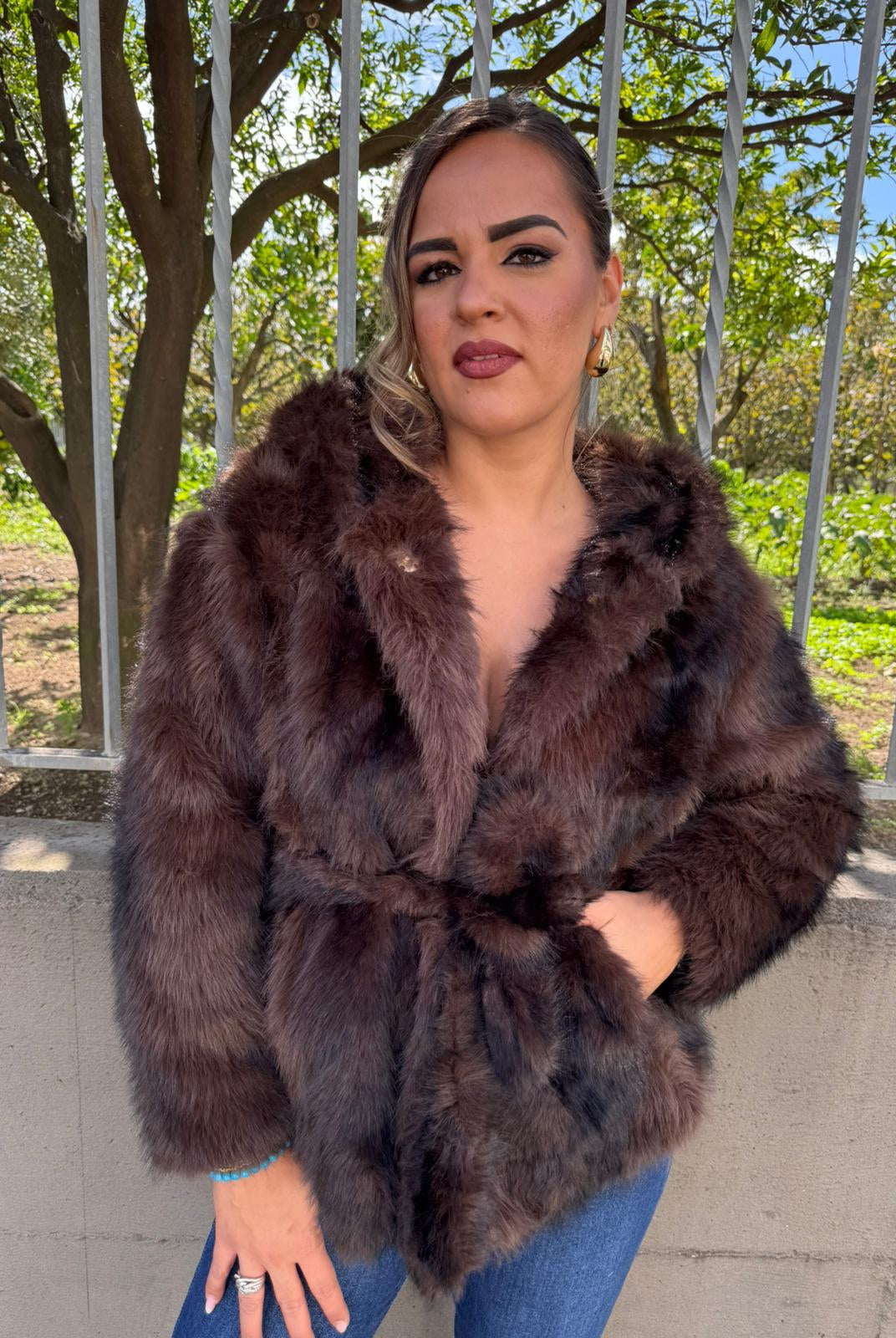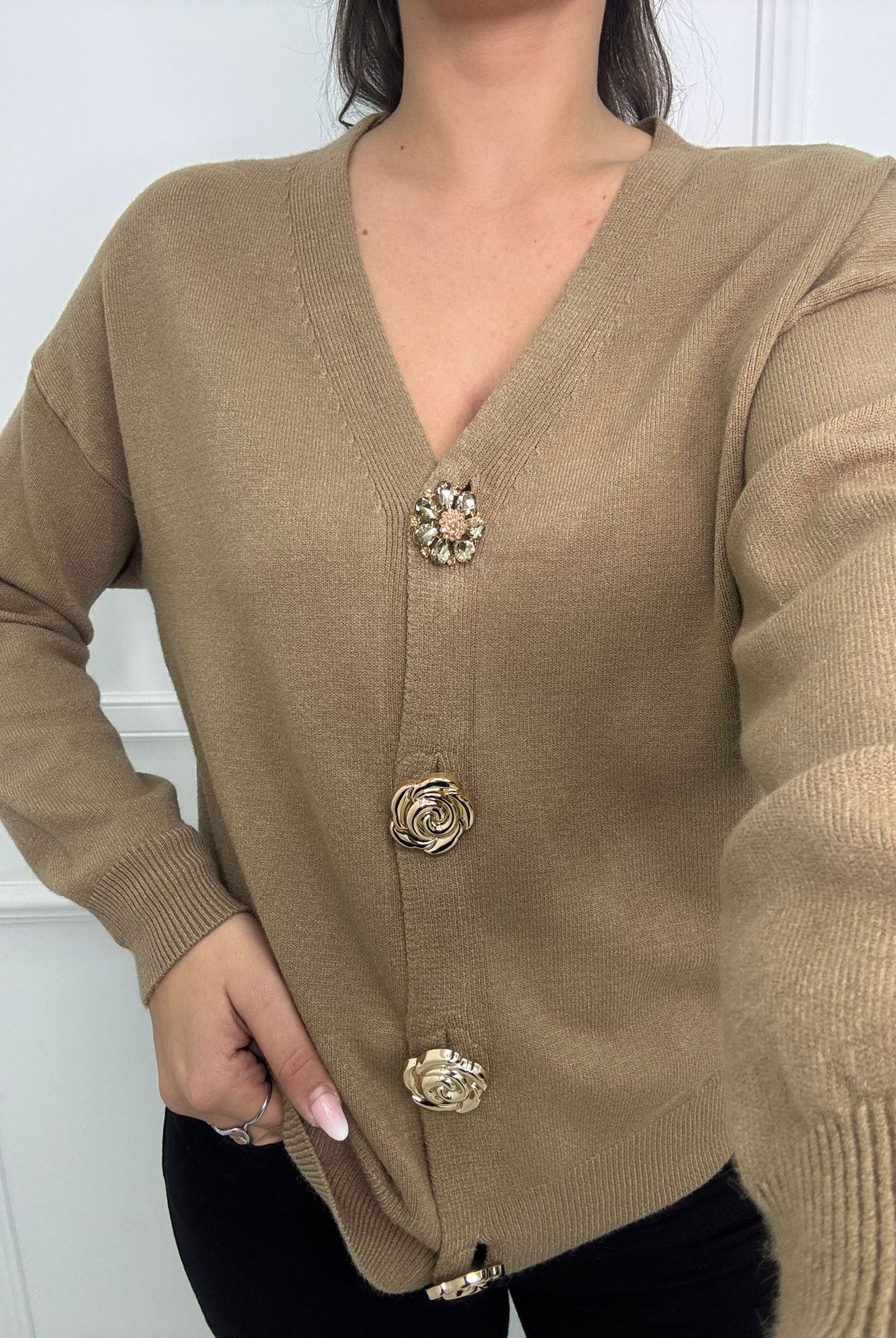 - La modella è una taglia 44, 4^ di seno e indossa la taglia "L"