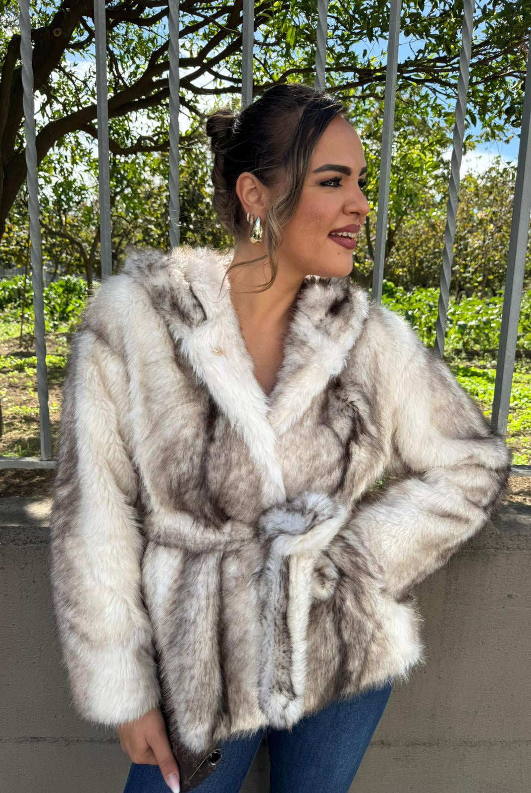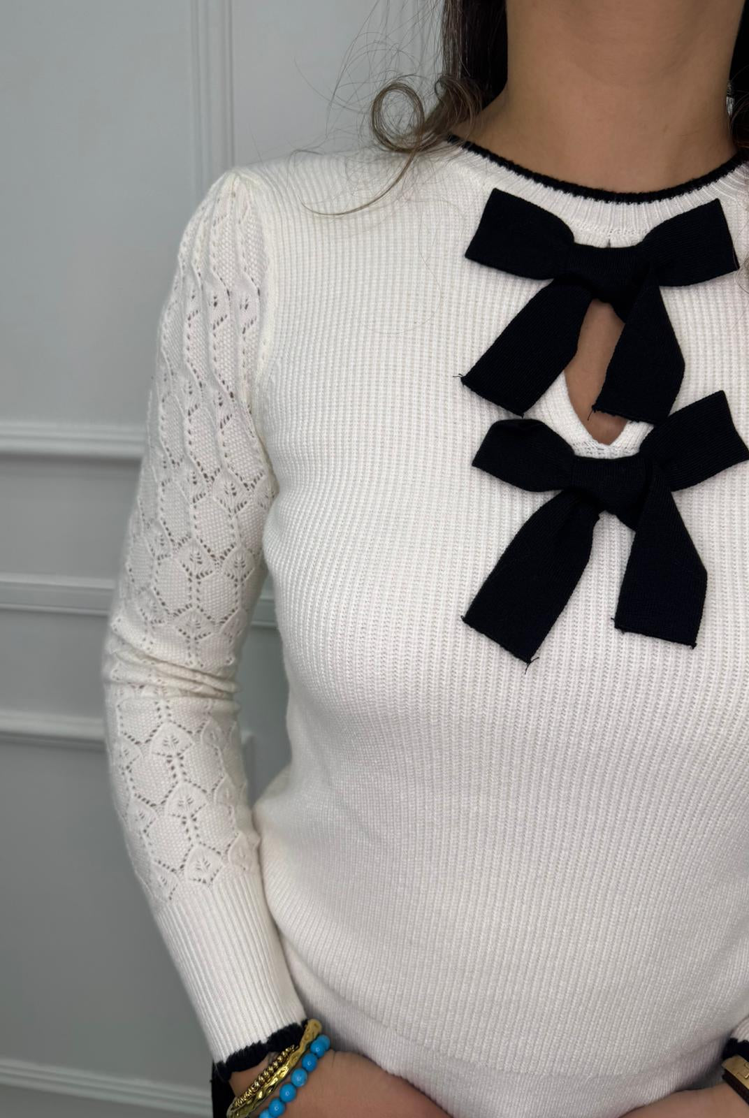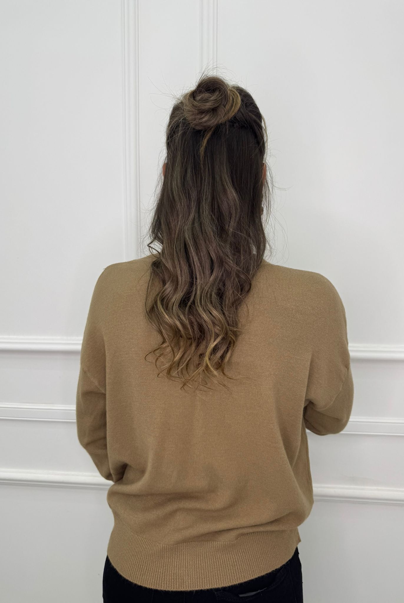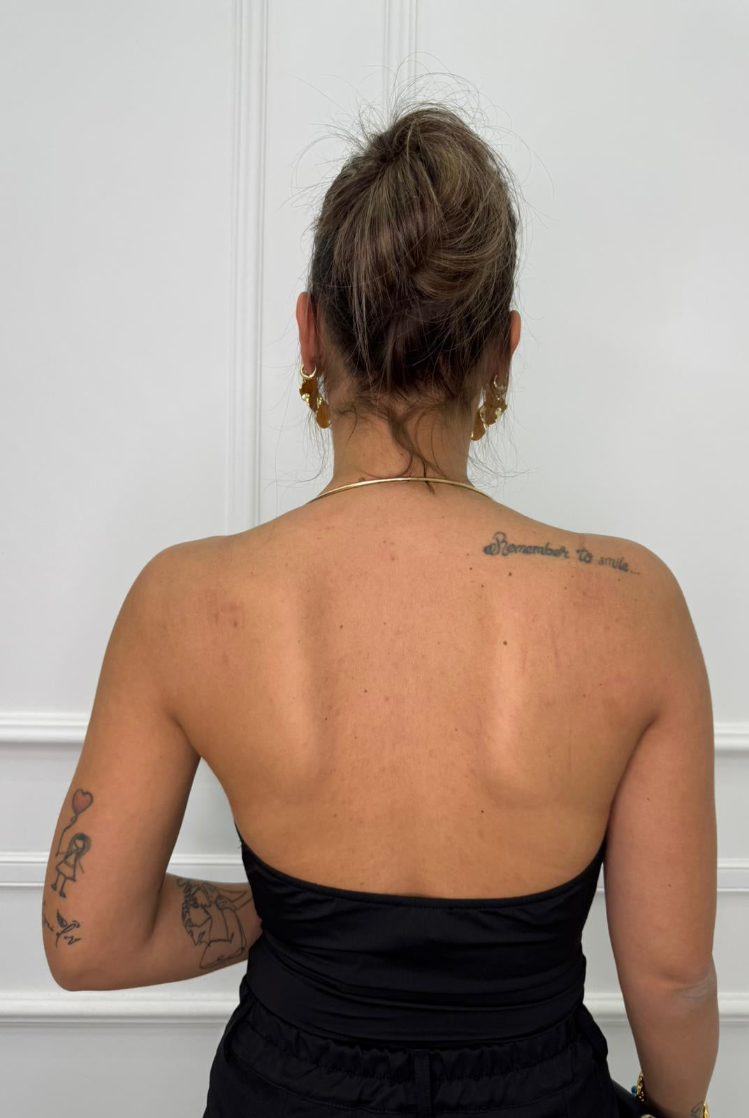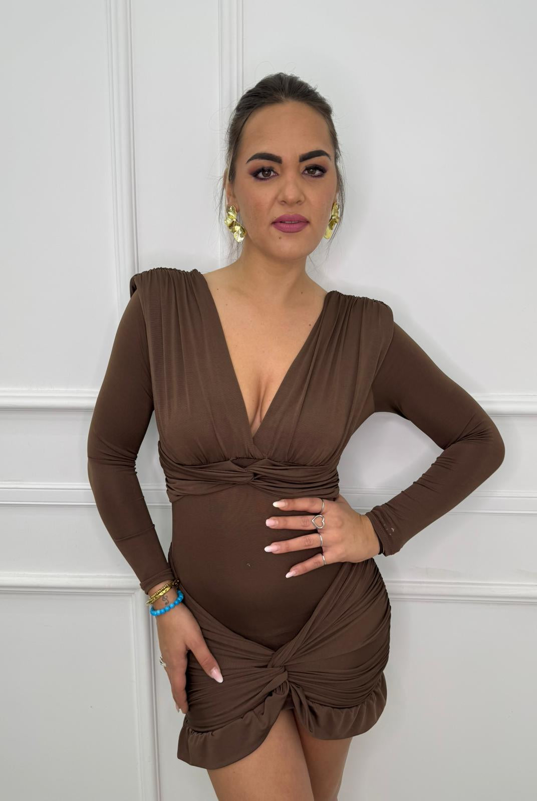 - La modella è una taglia 44, 4^ di seno e indossa la taglia "L"