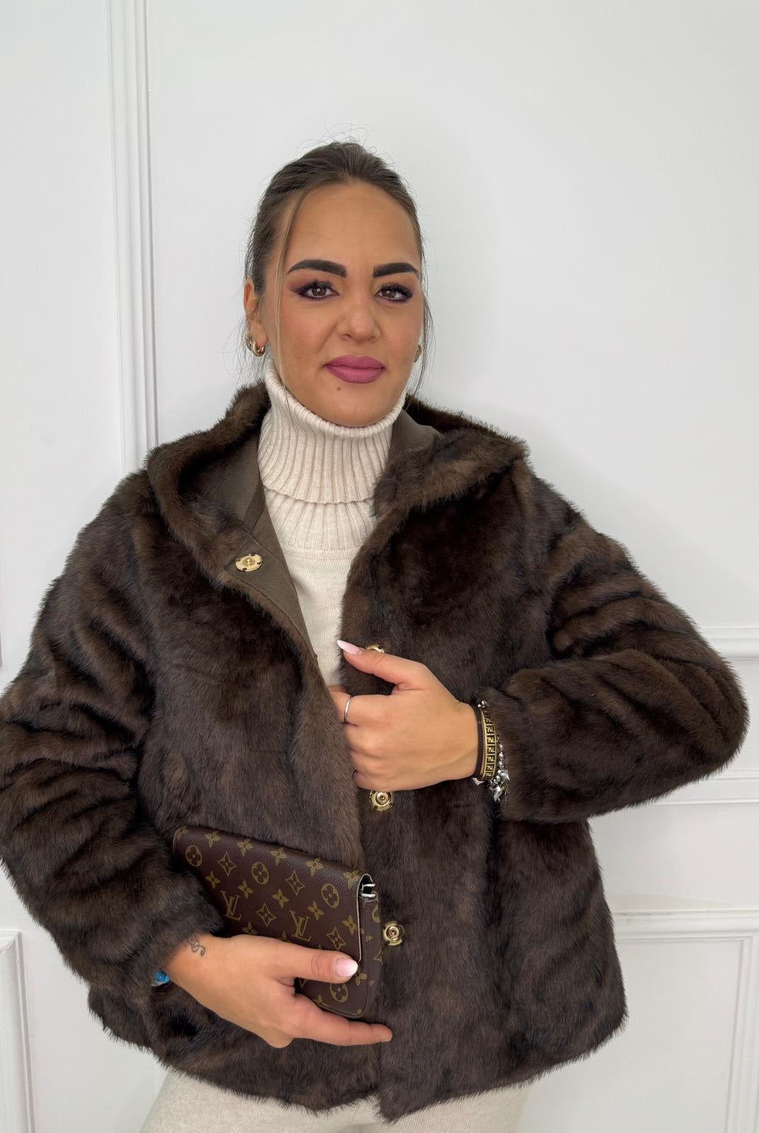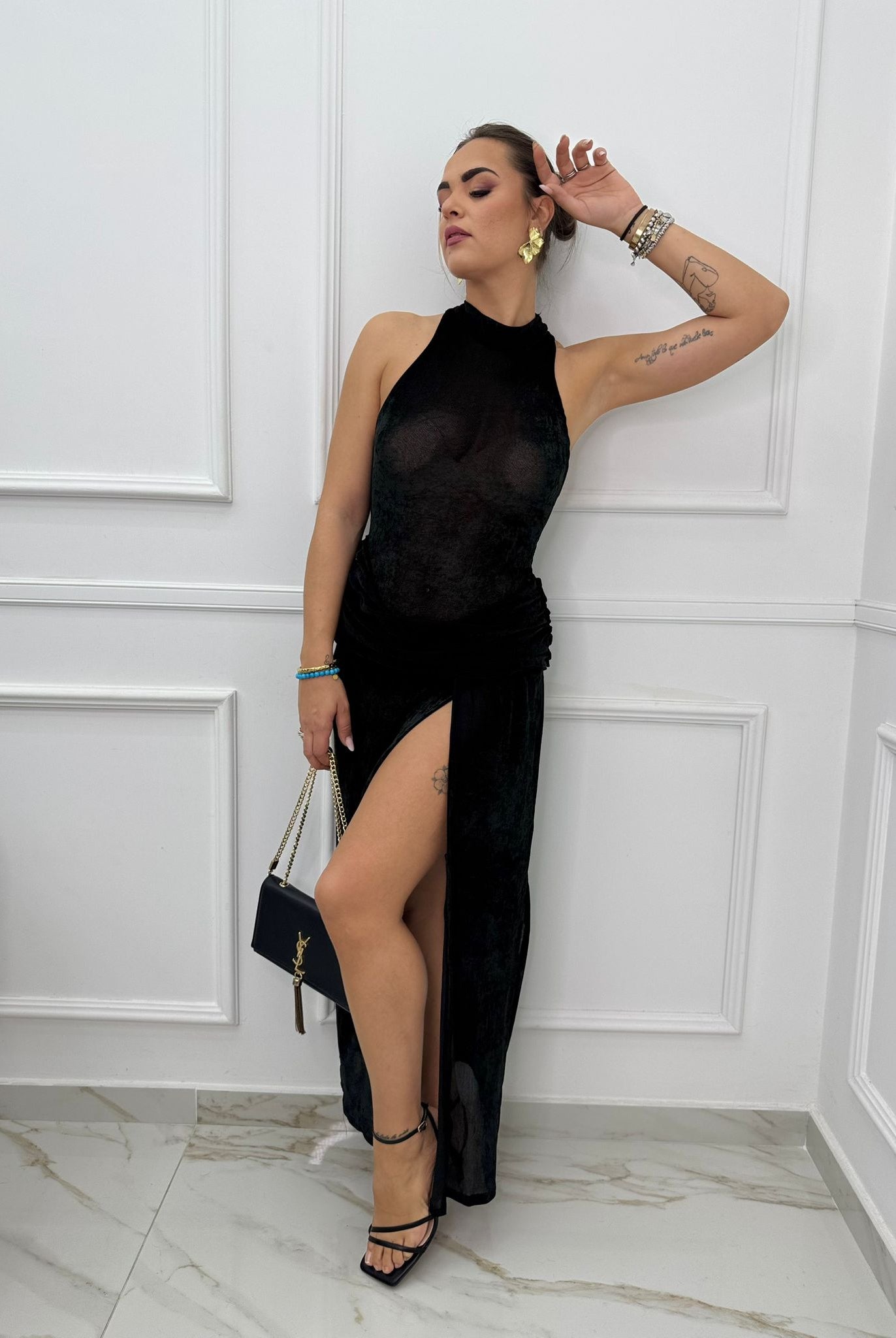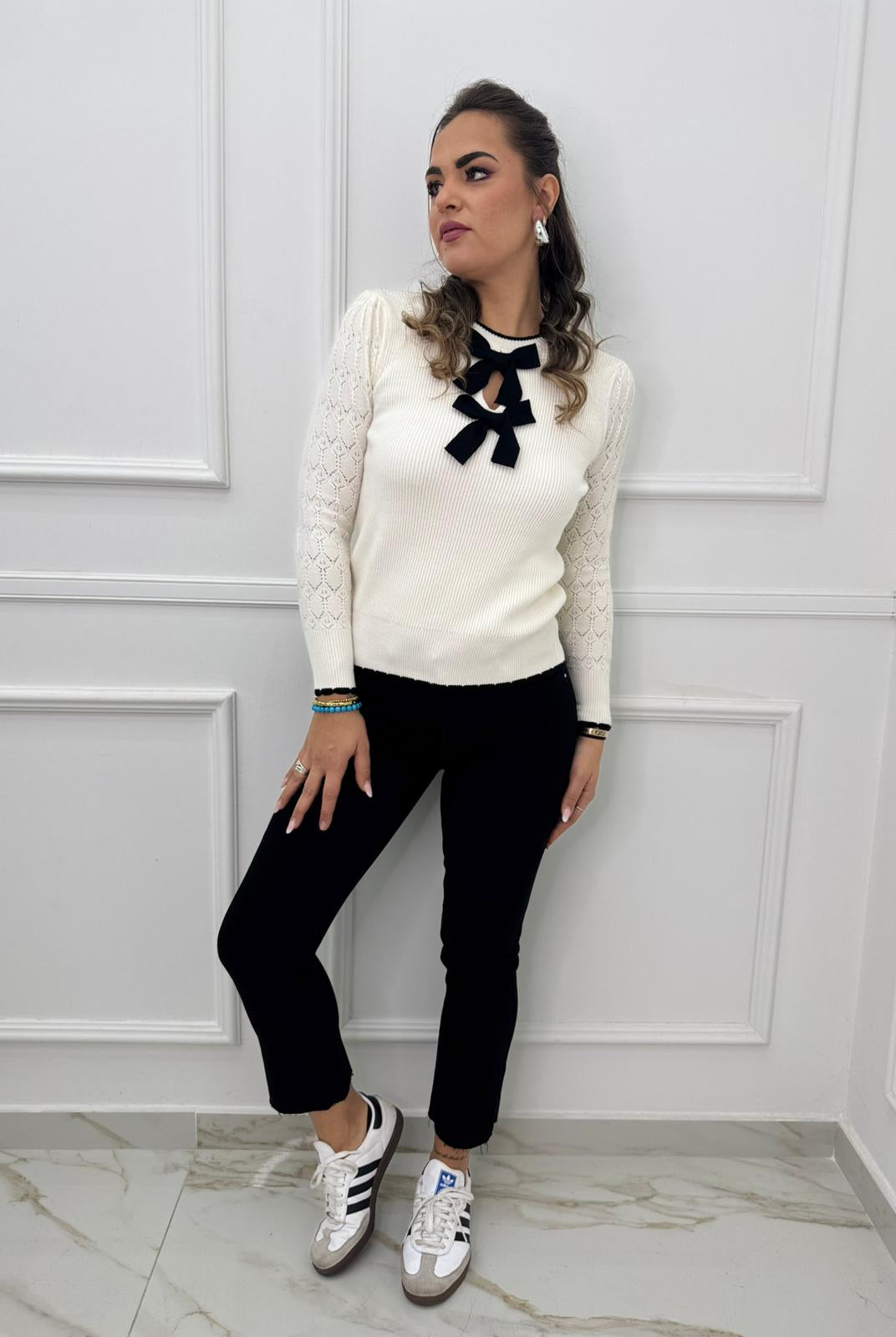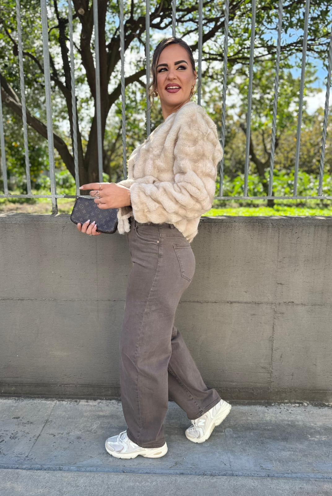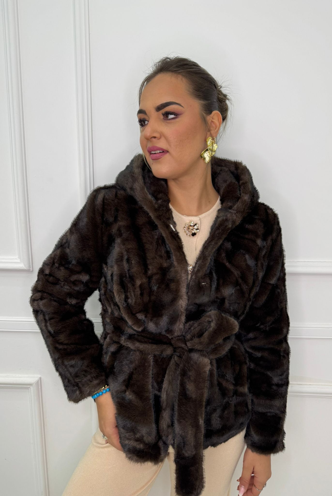 - La modella è una taglia 44, 4^ di seno e indossa la taglia "L"