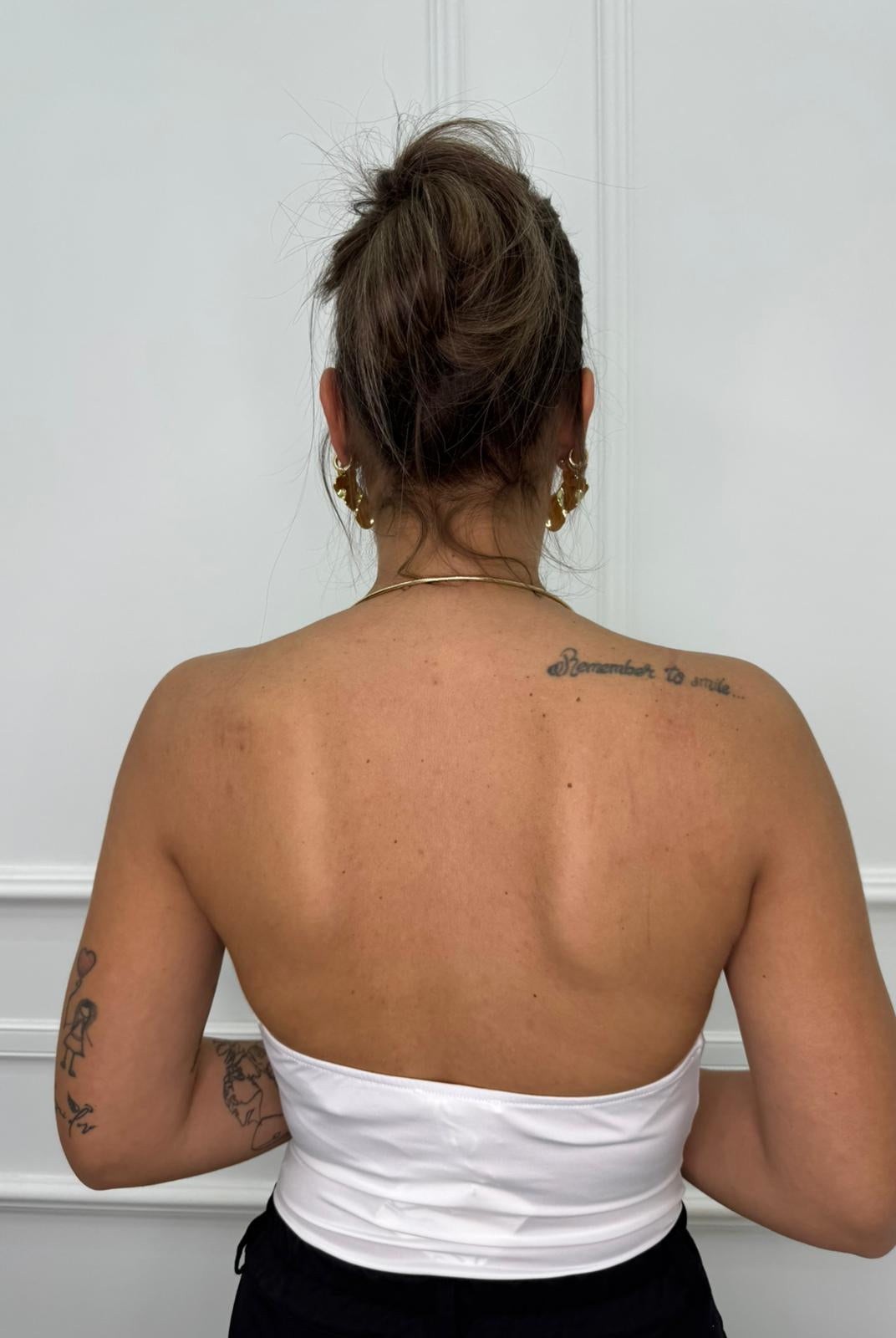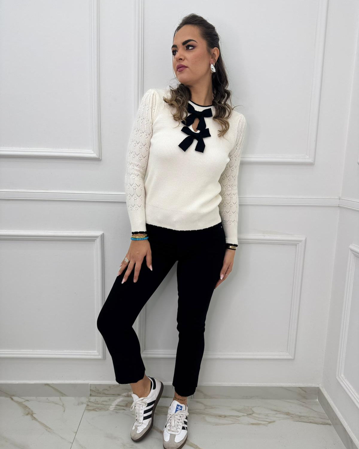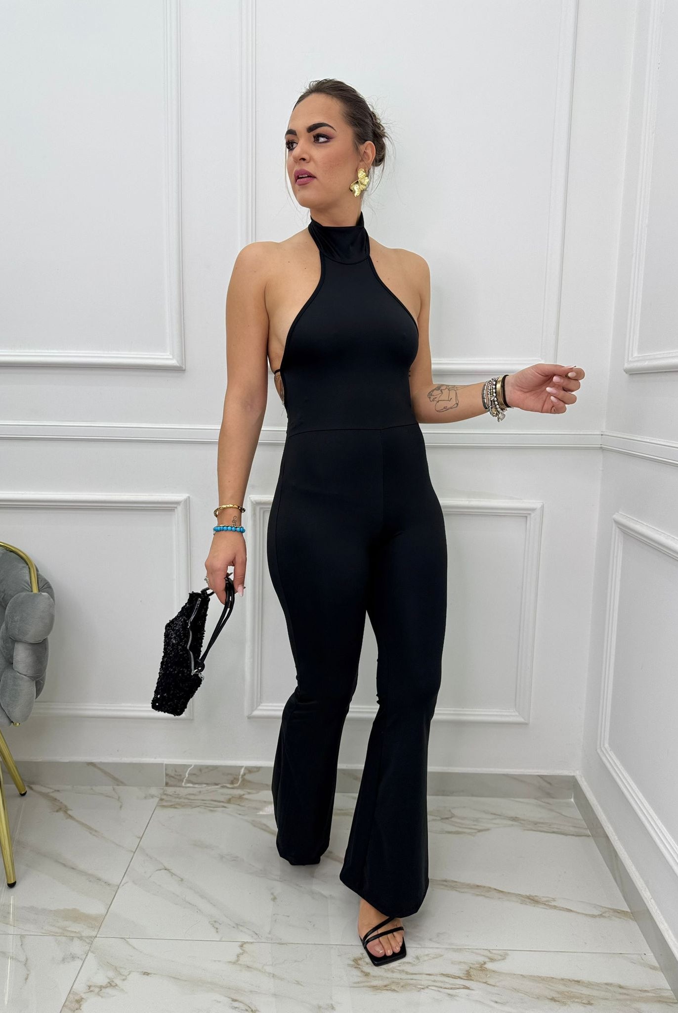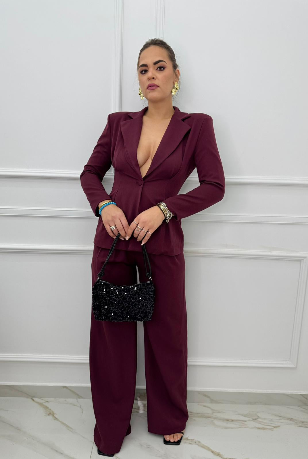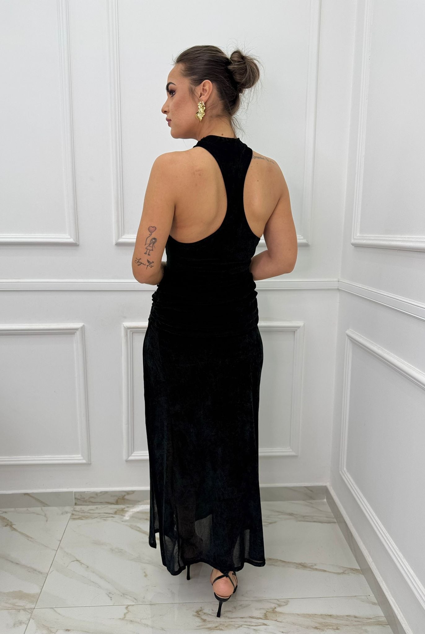 - La modella è una taglia 44, 4^ di seno e indossa la taglia "L"