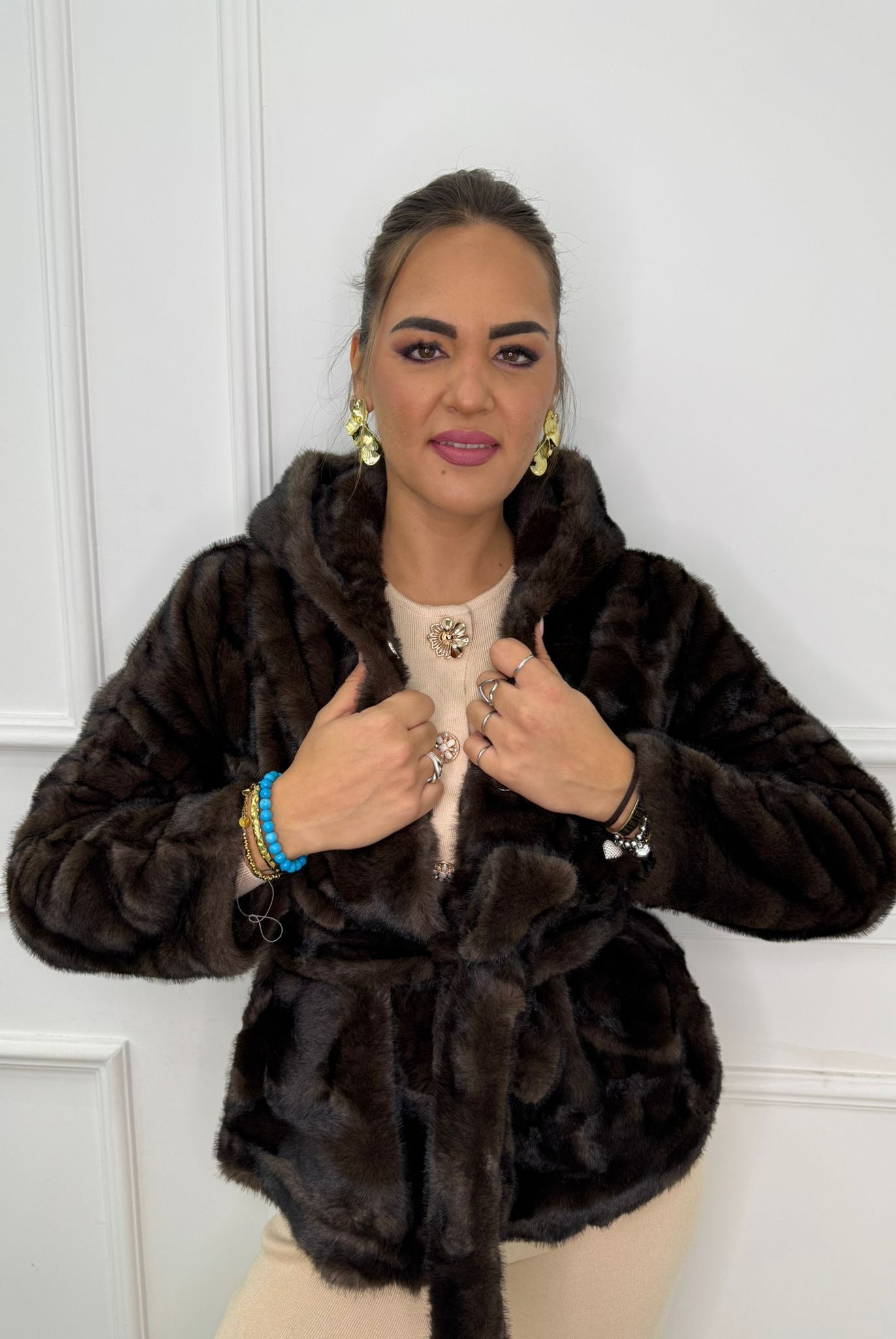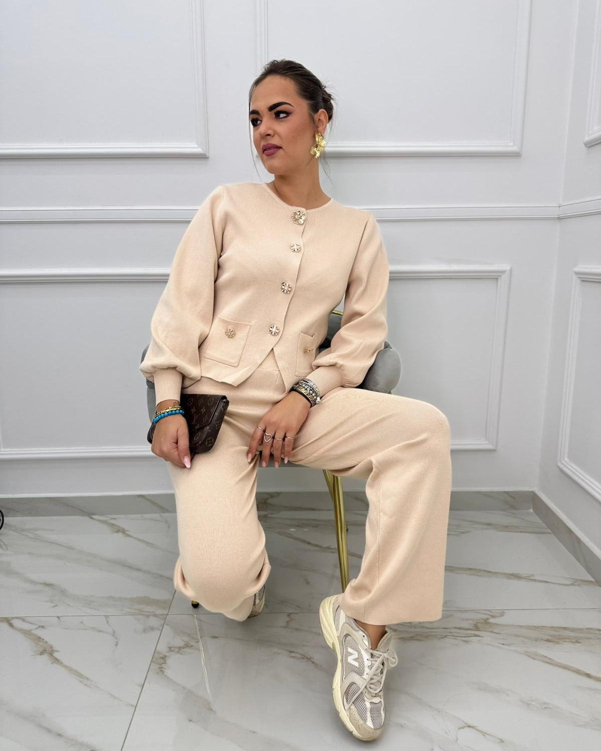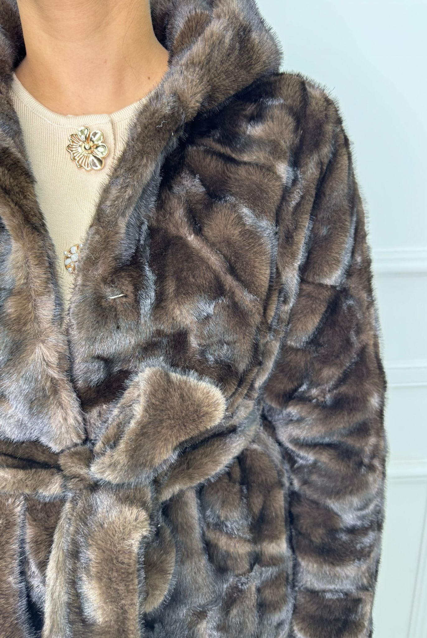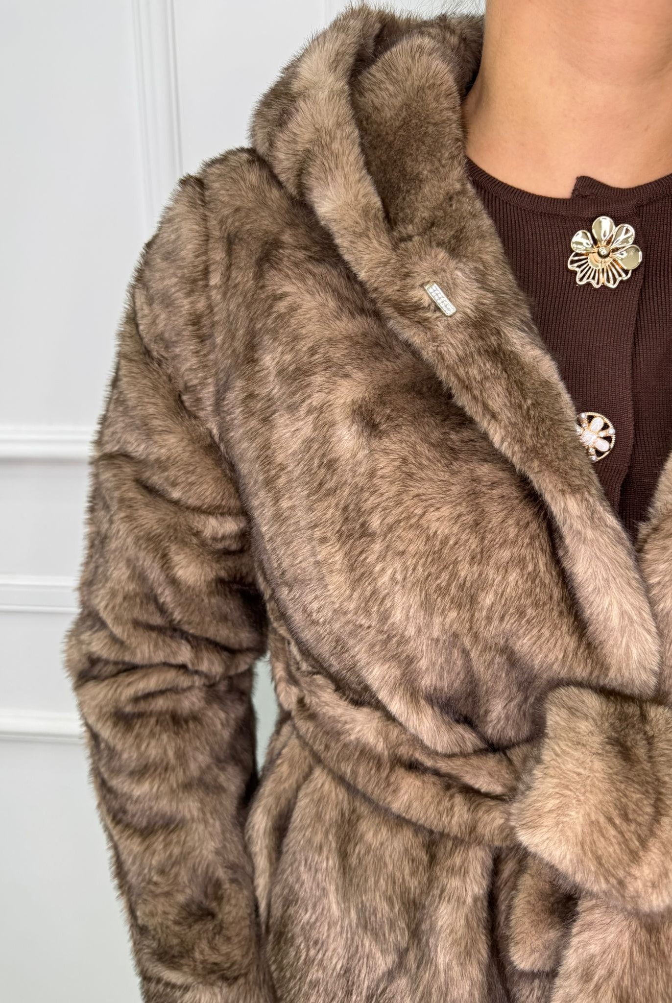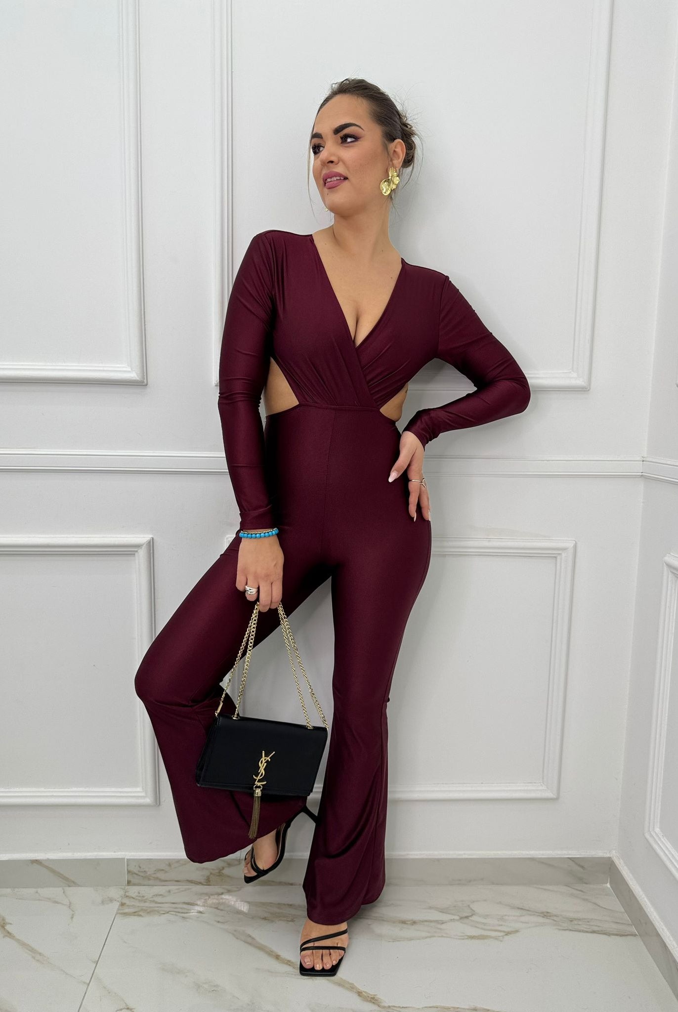 - La modella è una taglia 44, 4^ di seno e indossa la taglia "L"