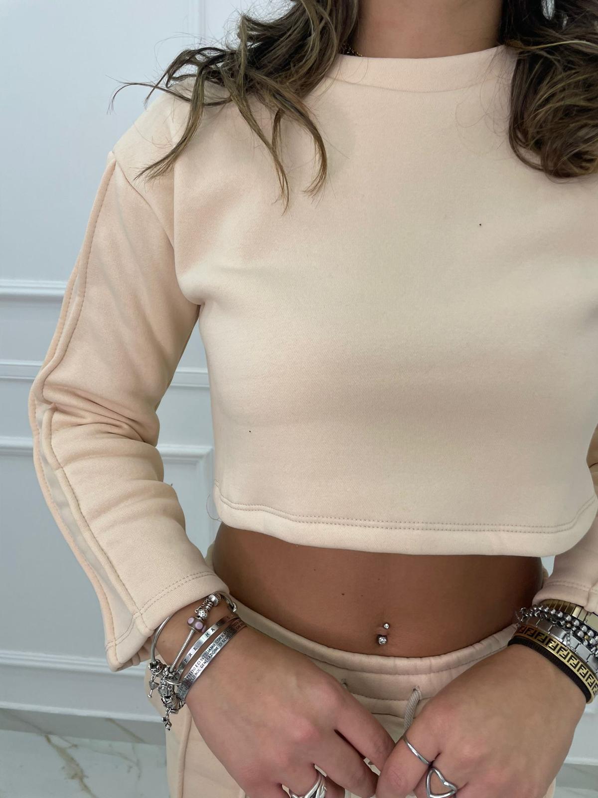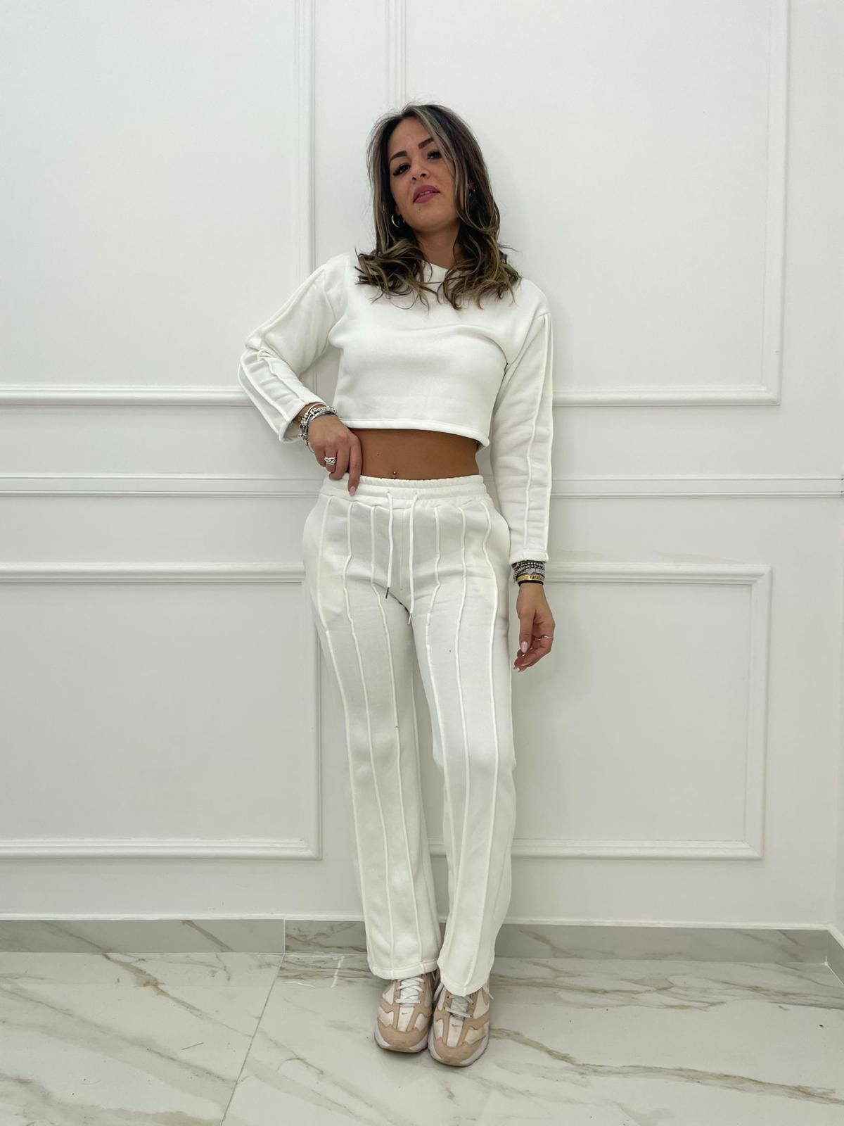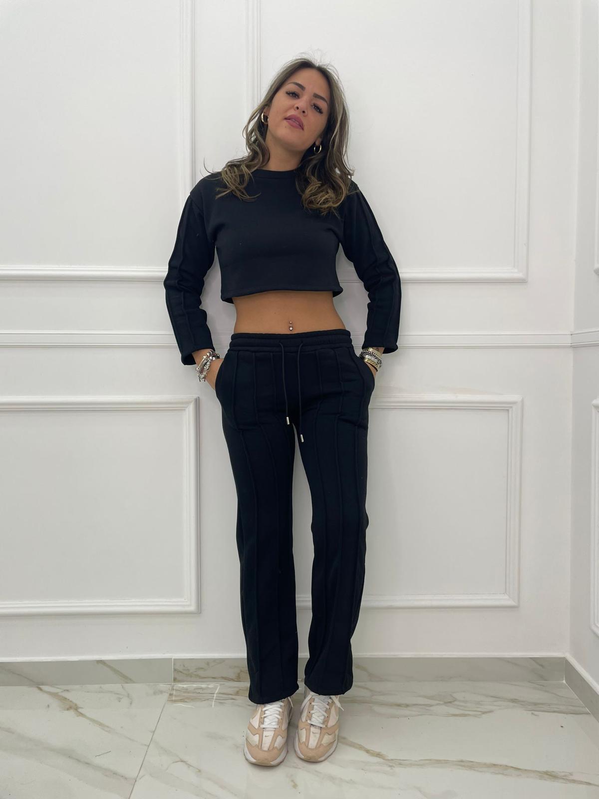 Tuta 2 pezzi con felpa crop e pantalone trama particolare
