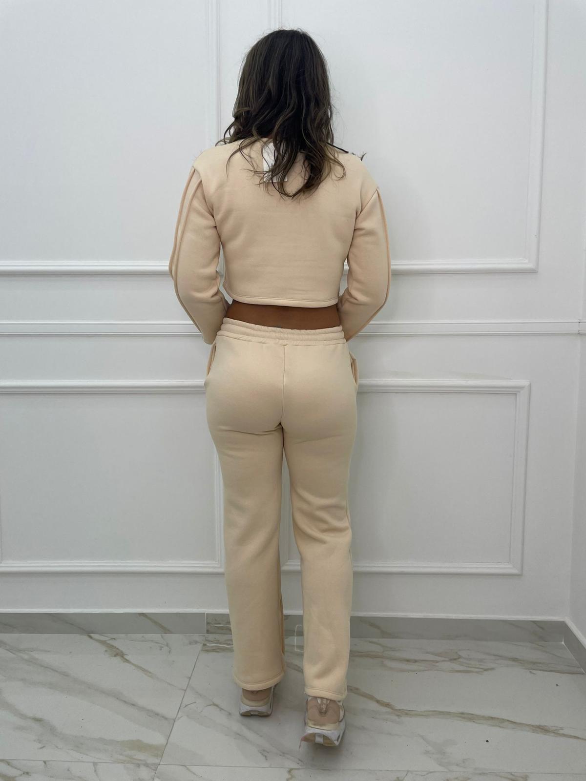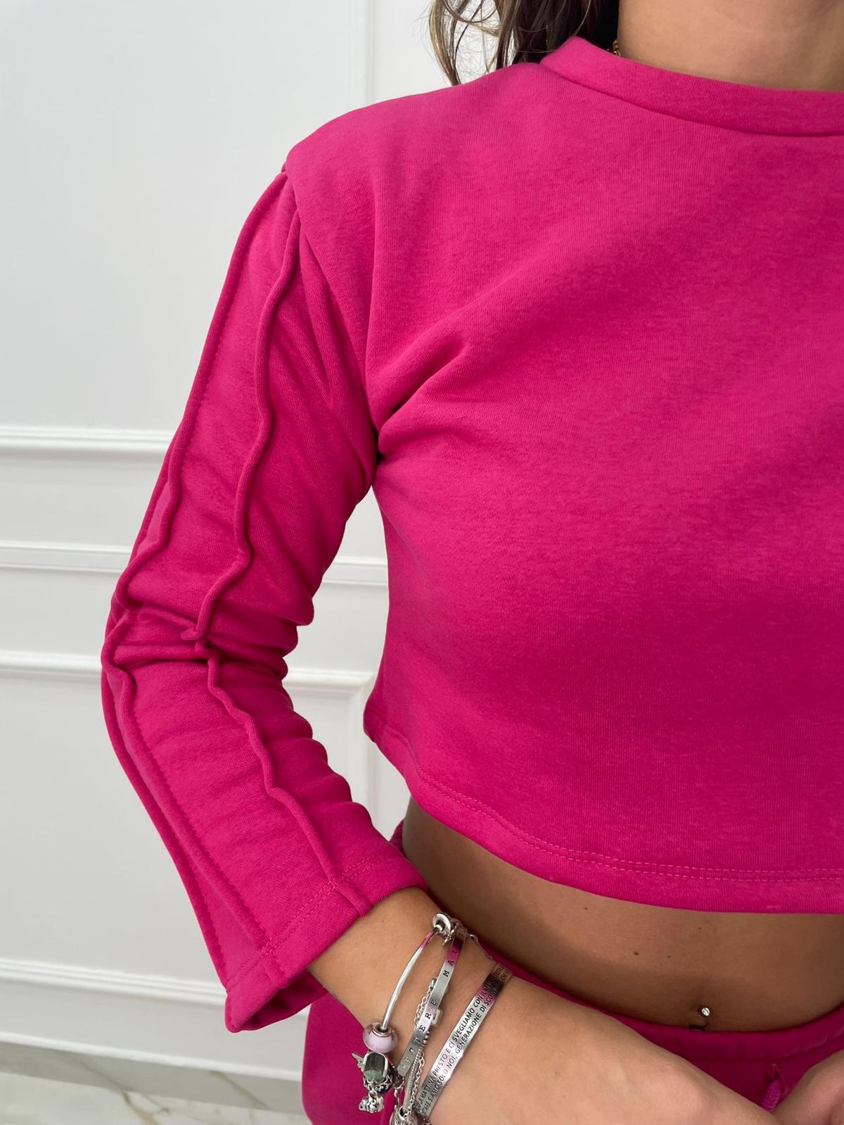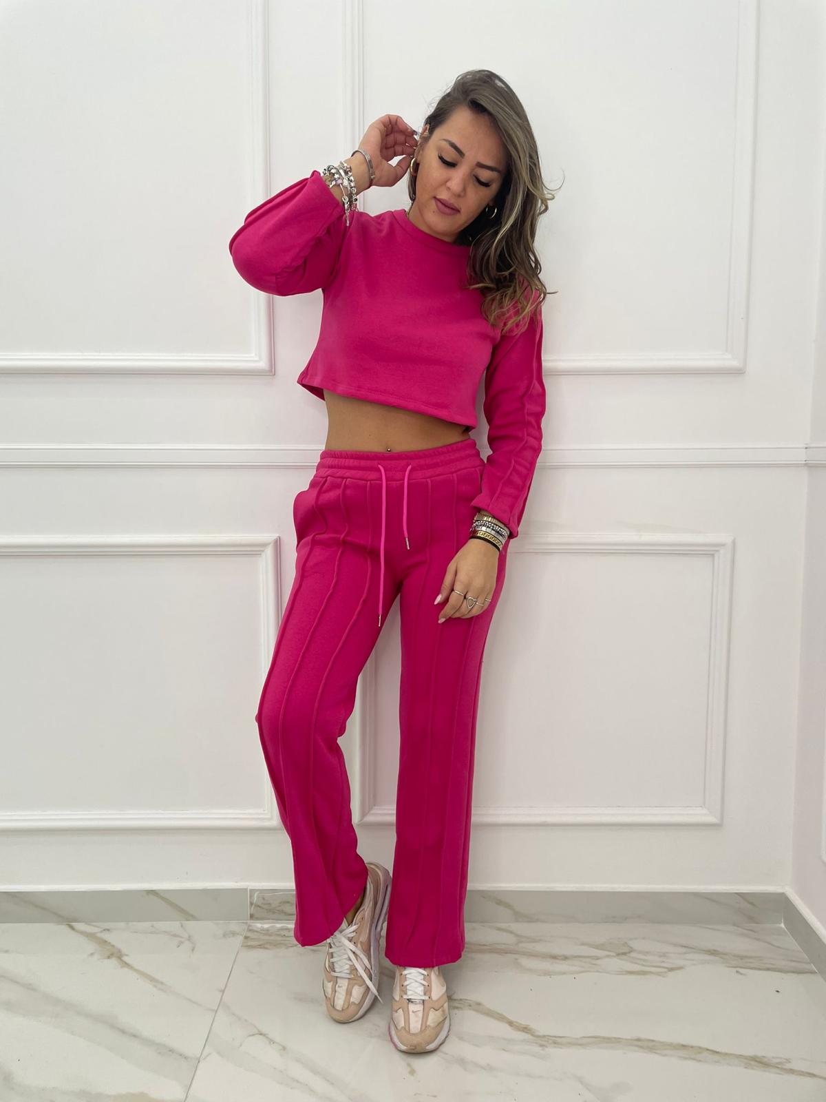 Tuta 2 pezzi con felpa crop e pantalone trama particolare