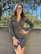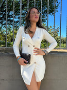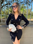 Vestitino in simil lana doppio petto con bottoni oro