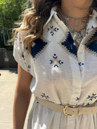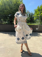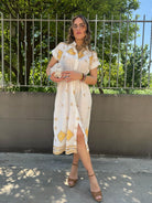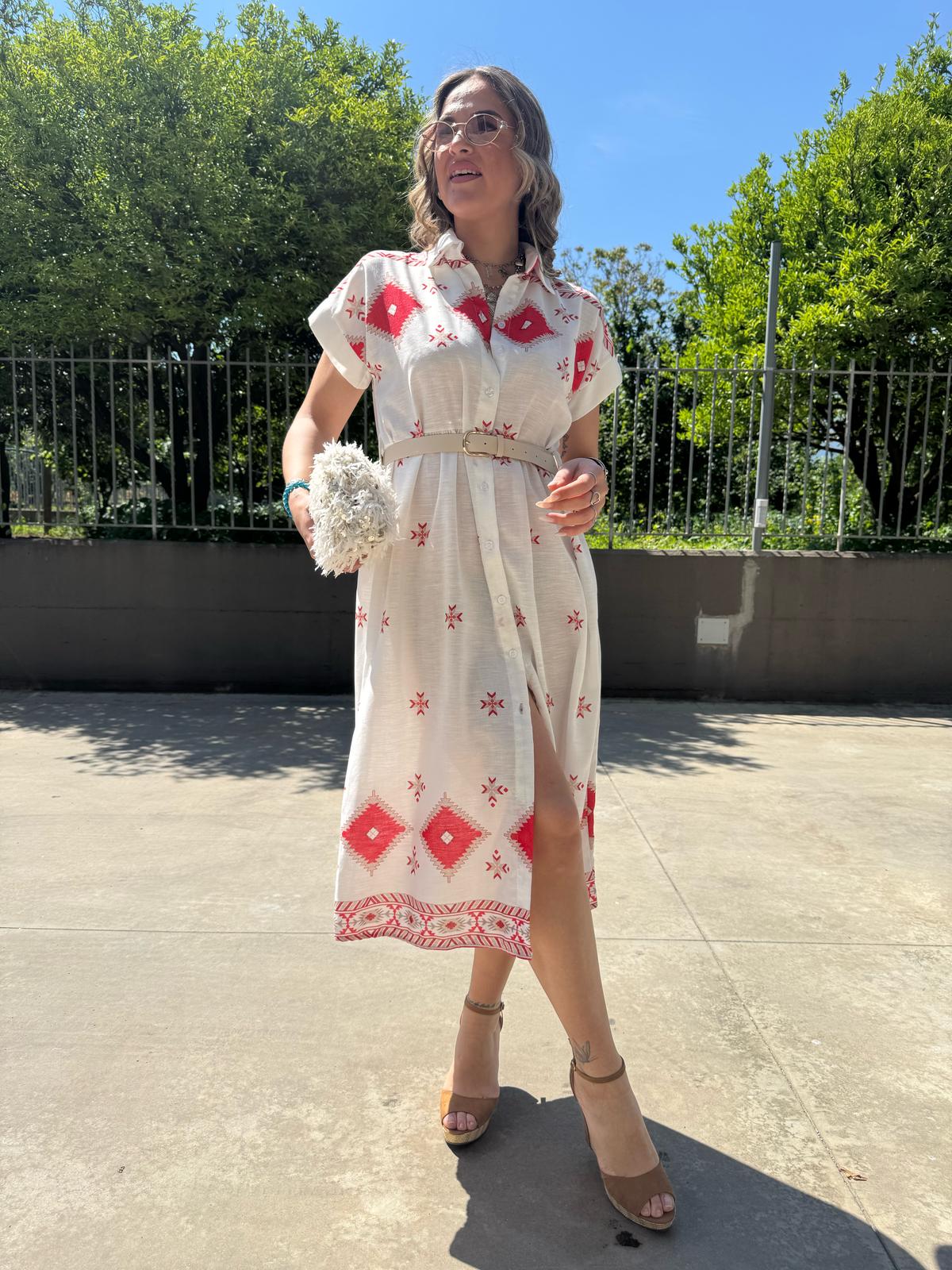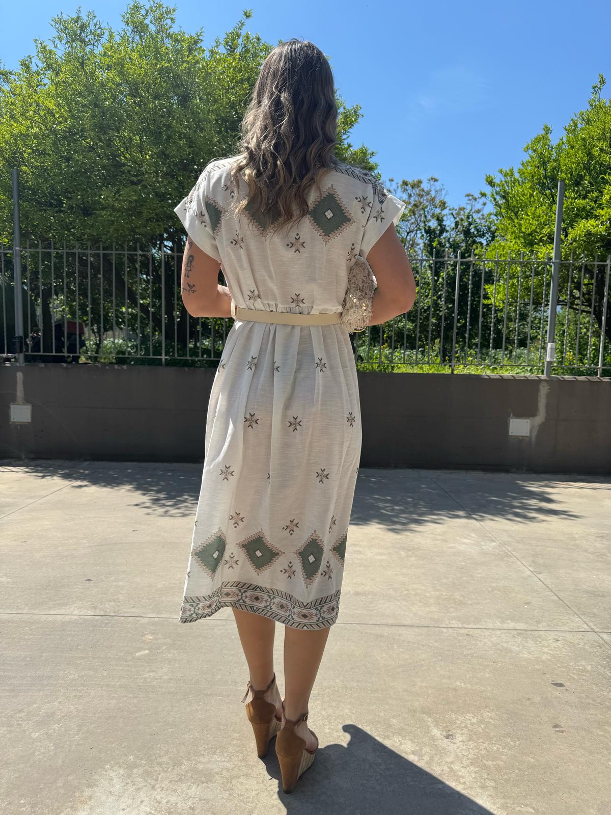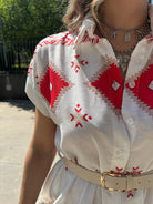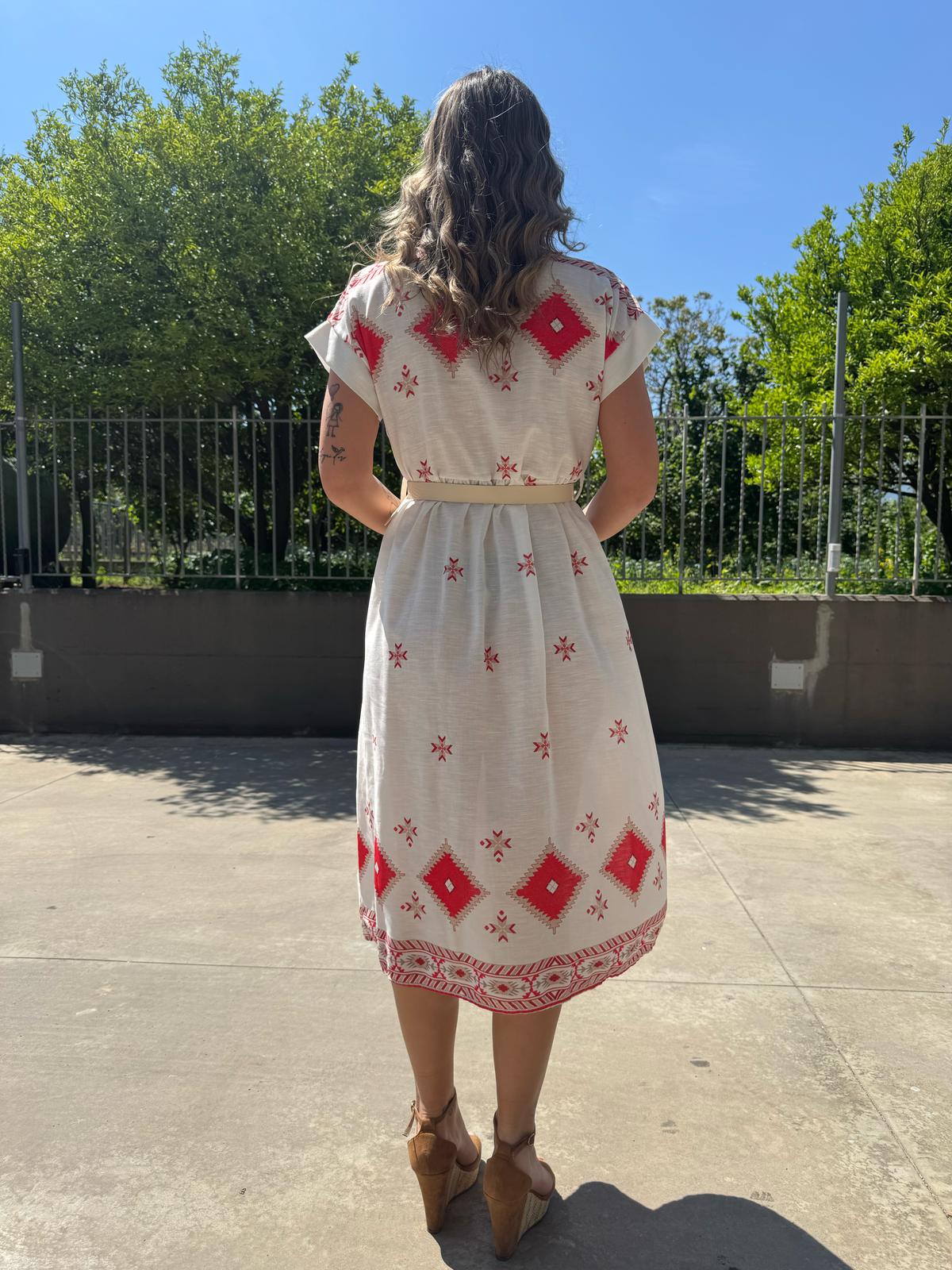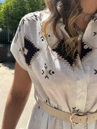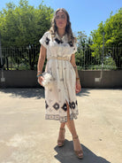 Vestito a camicia in simil lino fantasia geometrica