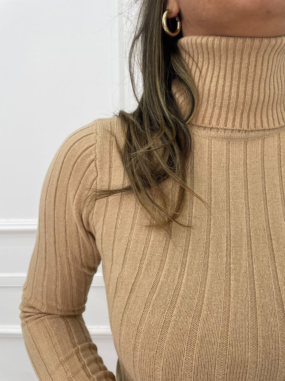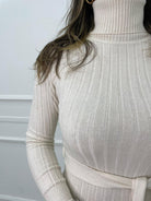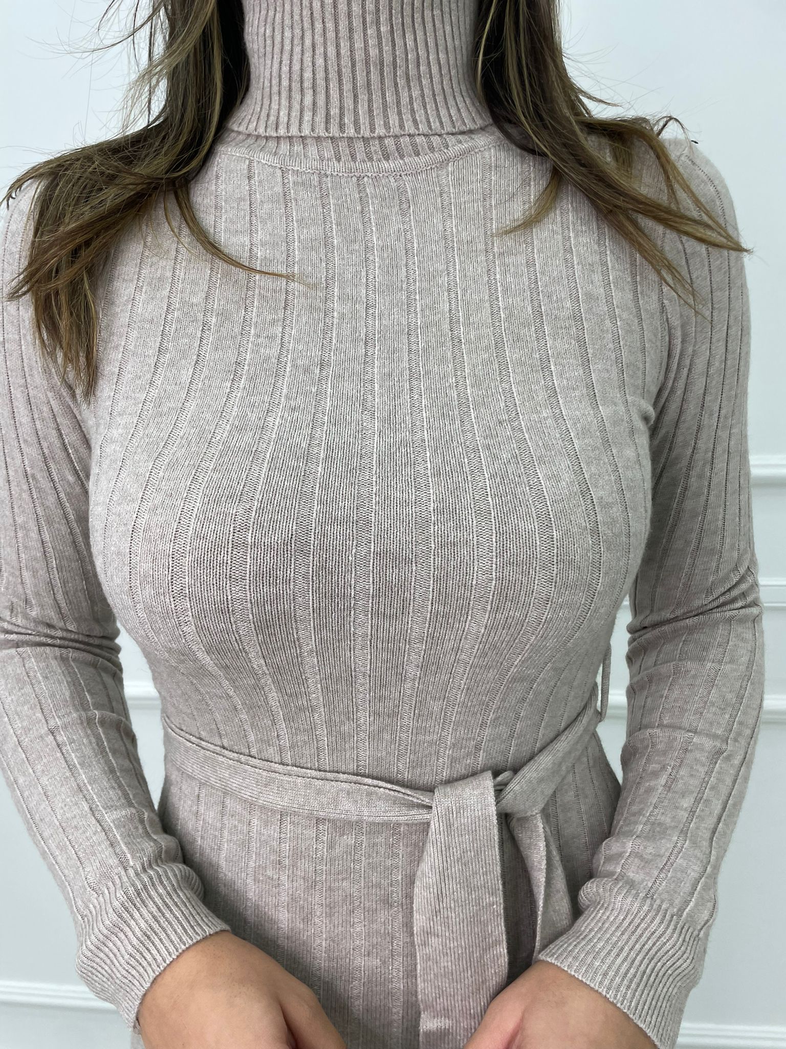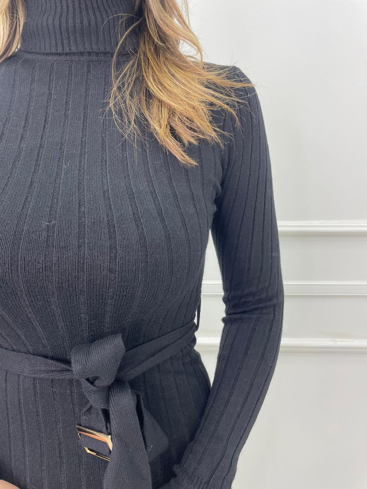 Vestito a coste collo alto con cintura
