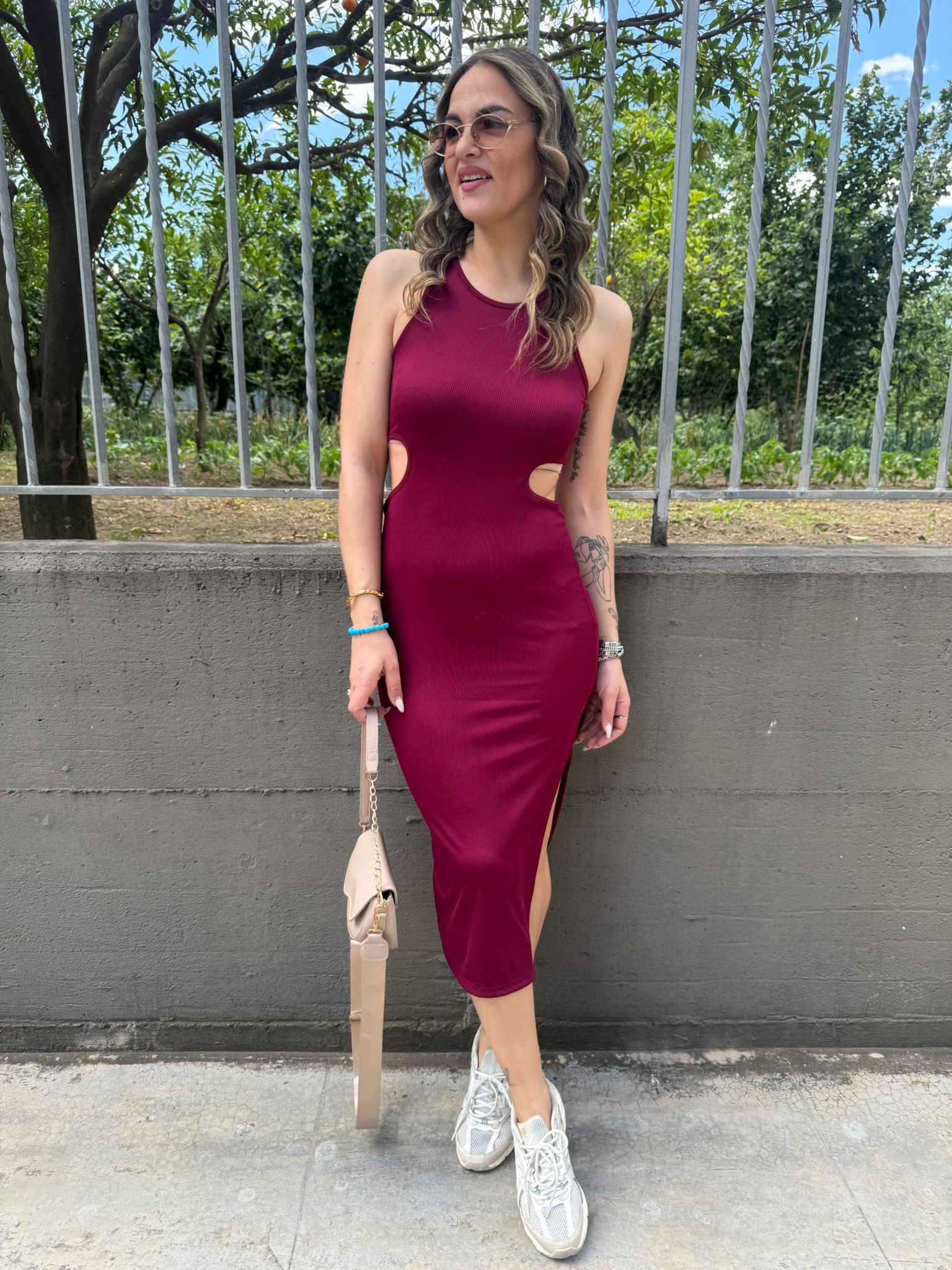 Vestito a costine con aperture laterali