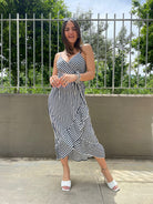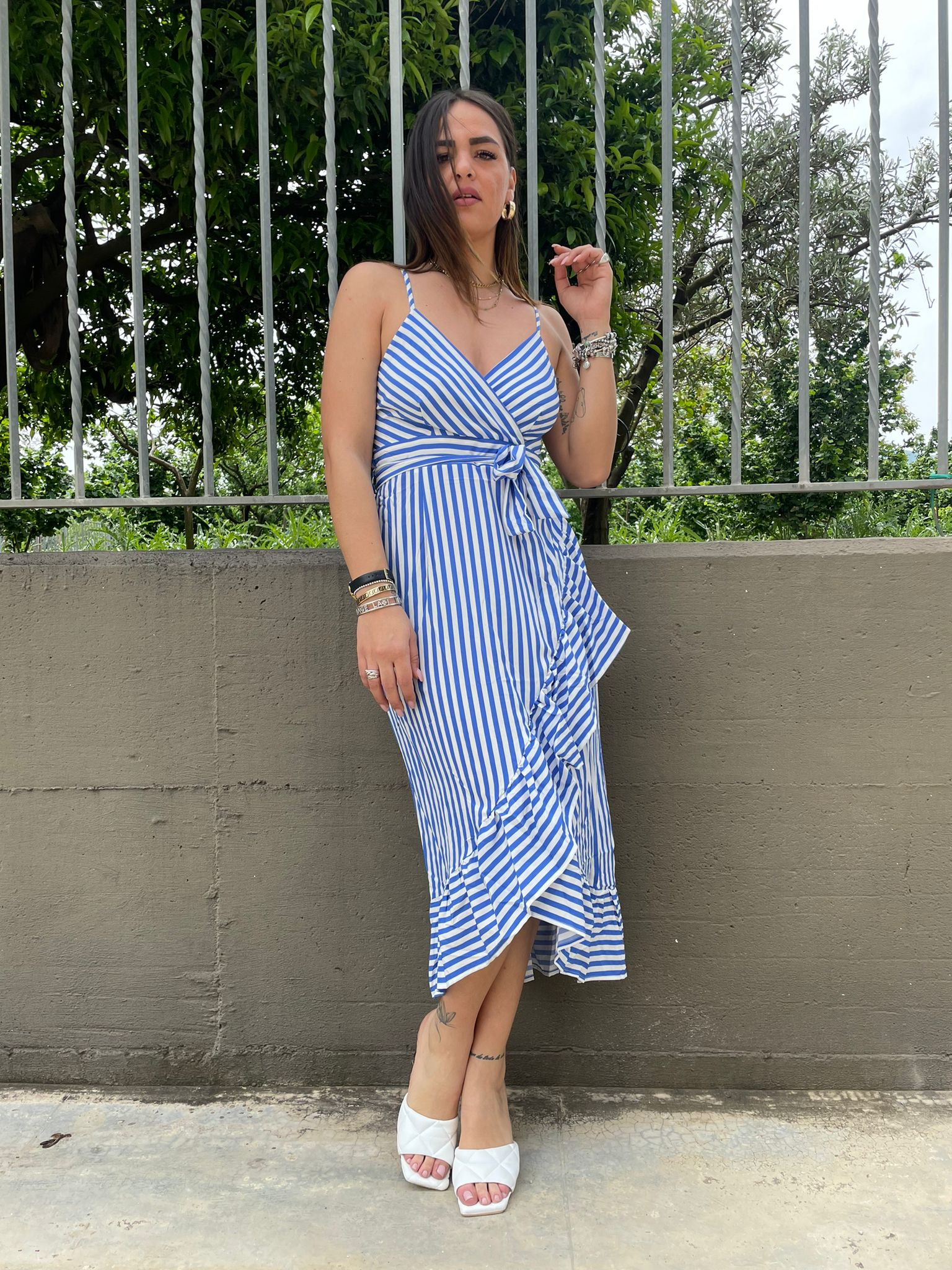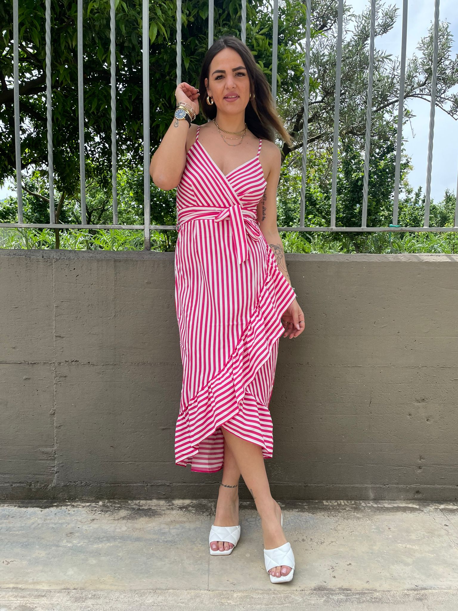 Vestito a righe asimmetrico con rouches