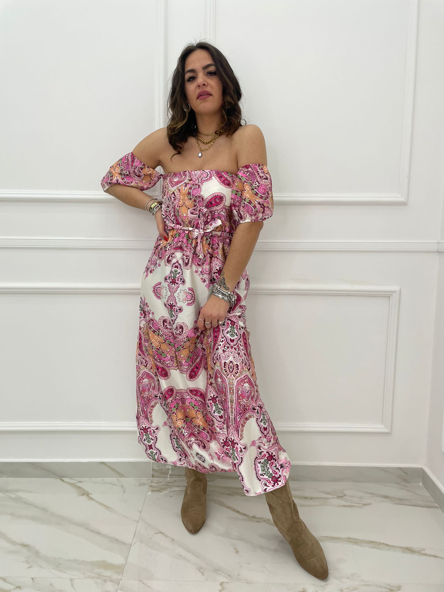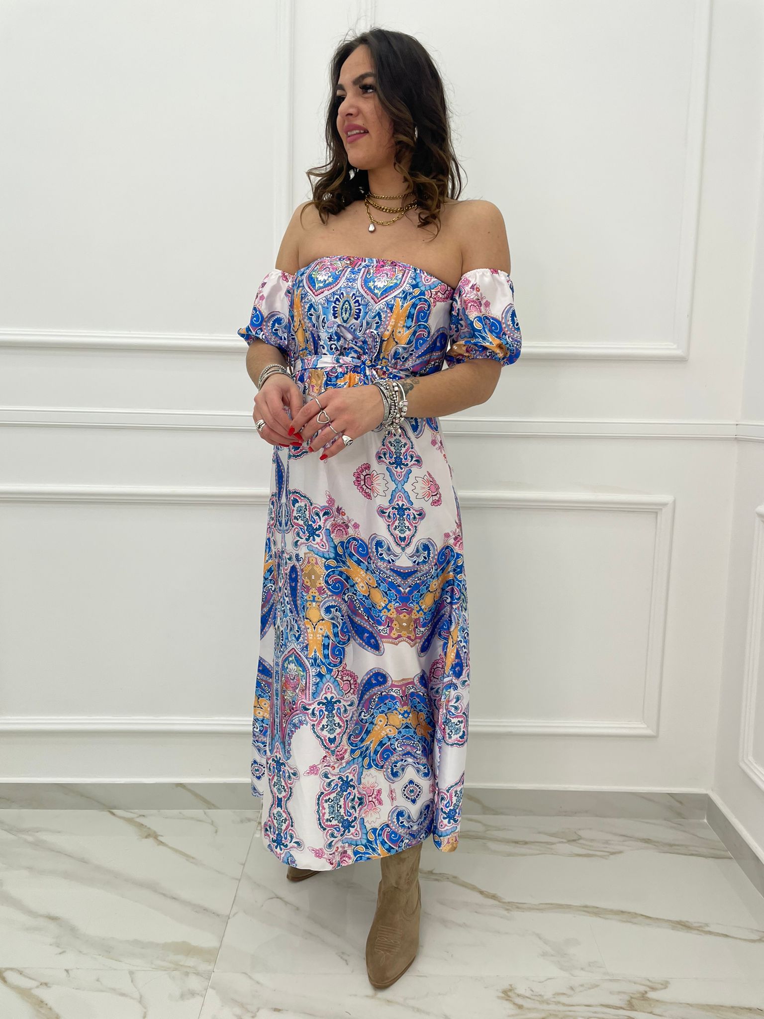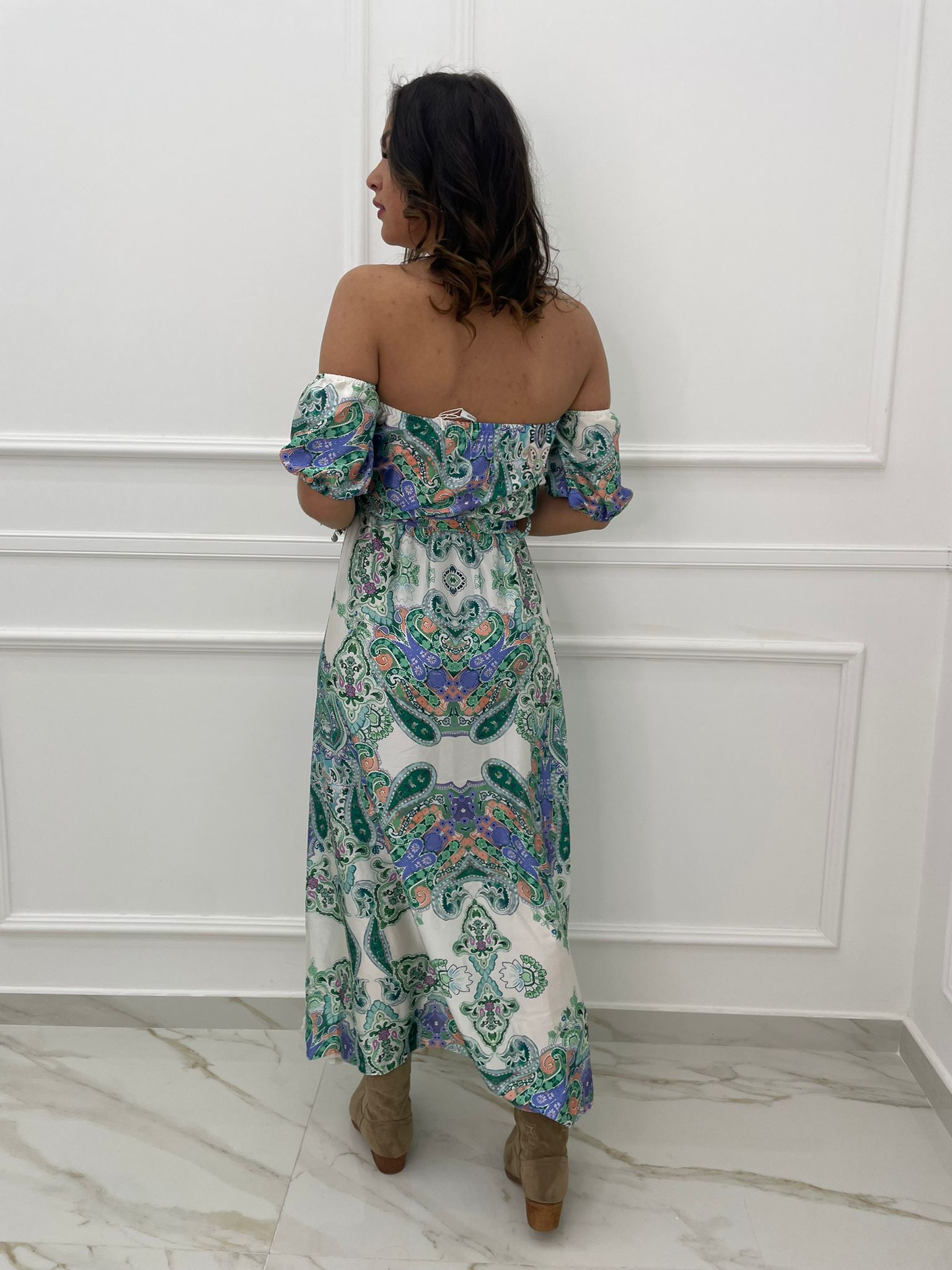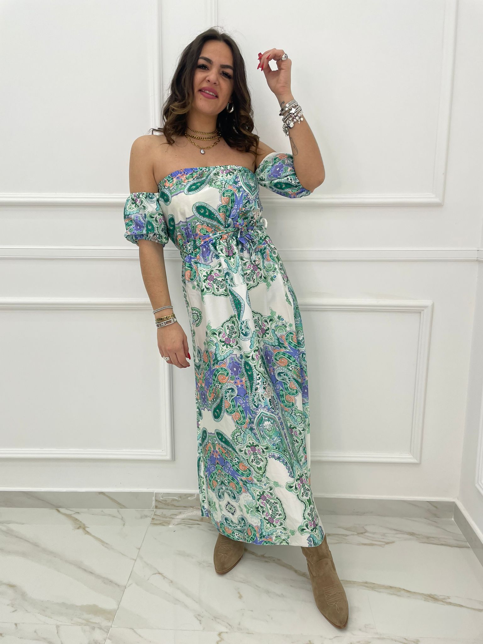 - Vestito lungo scollo a barca