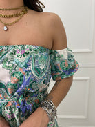 Vestito con scollo a barca e maniche a palloncino
