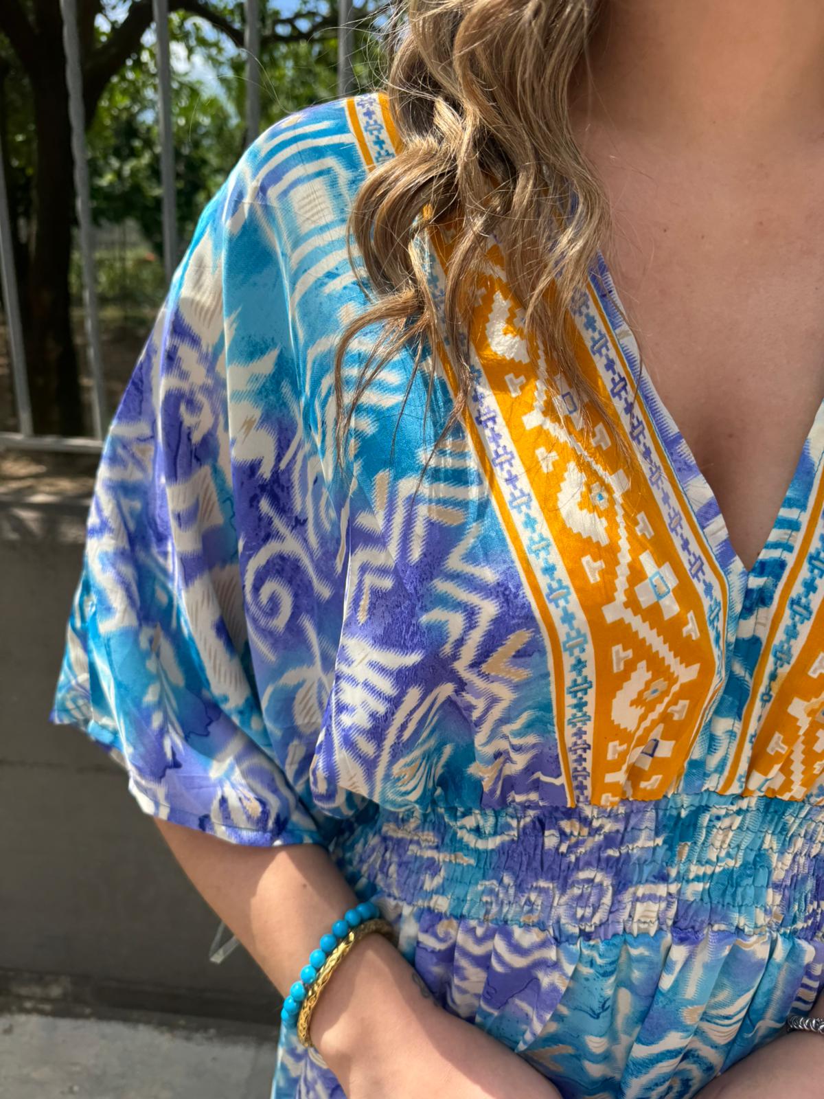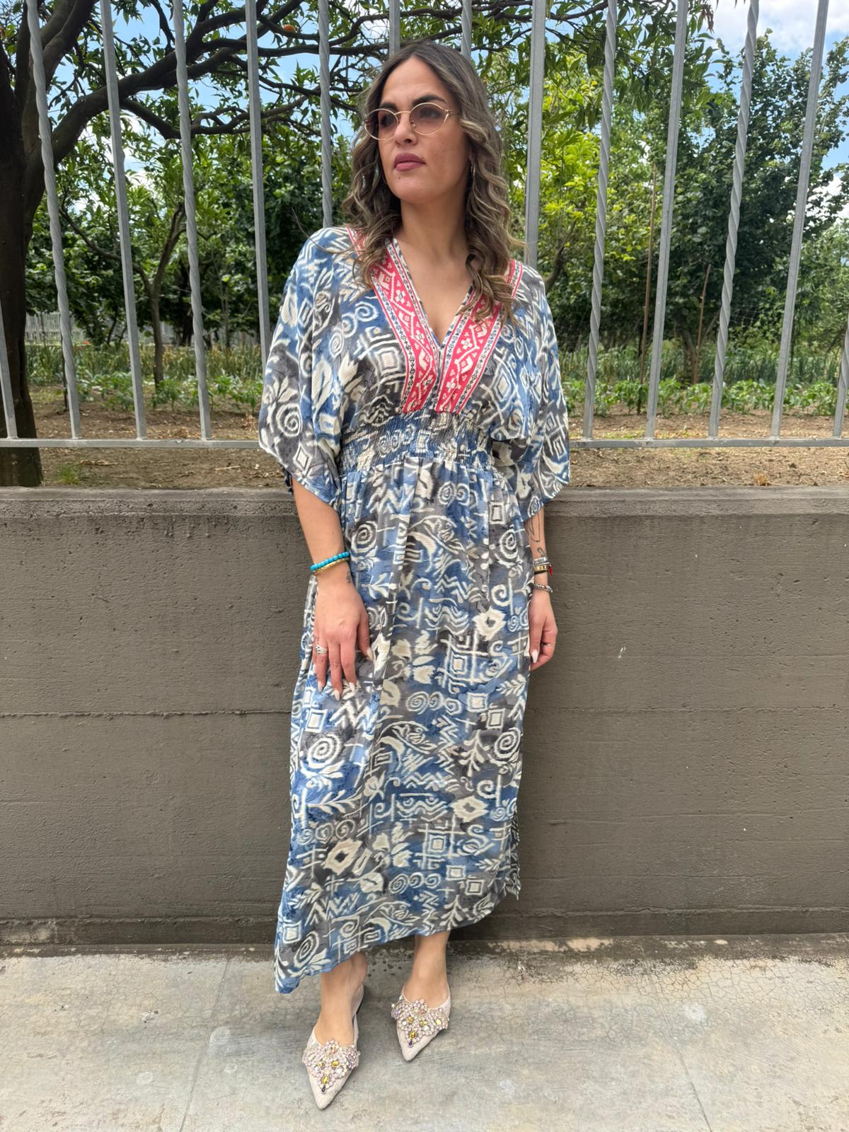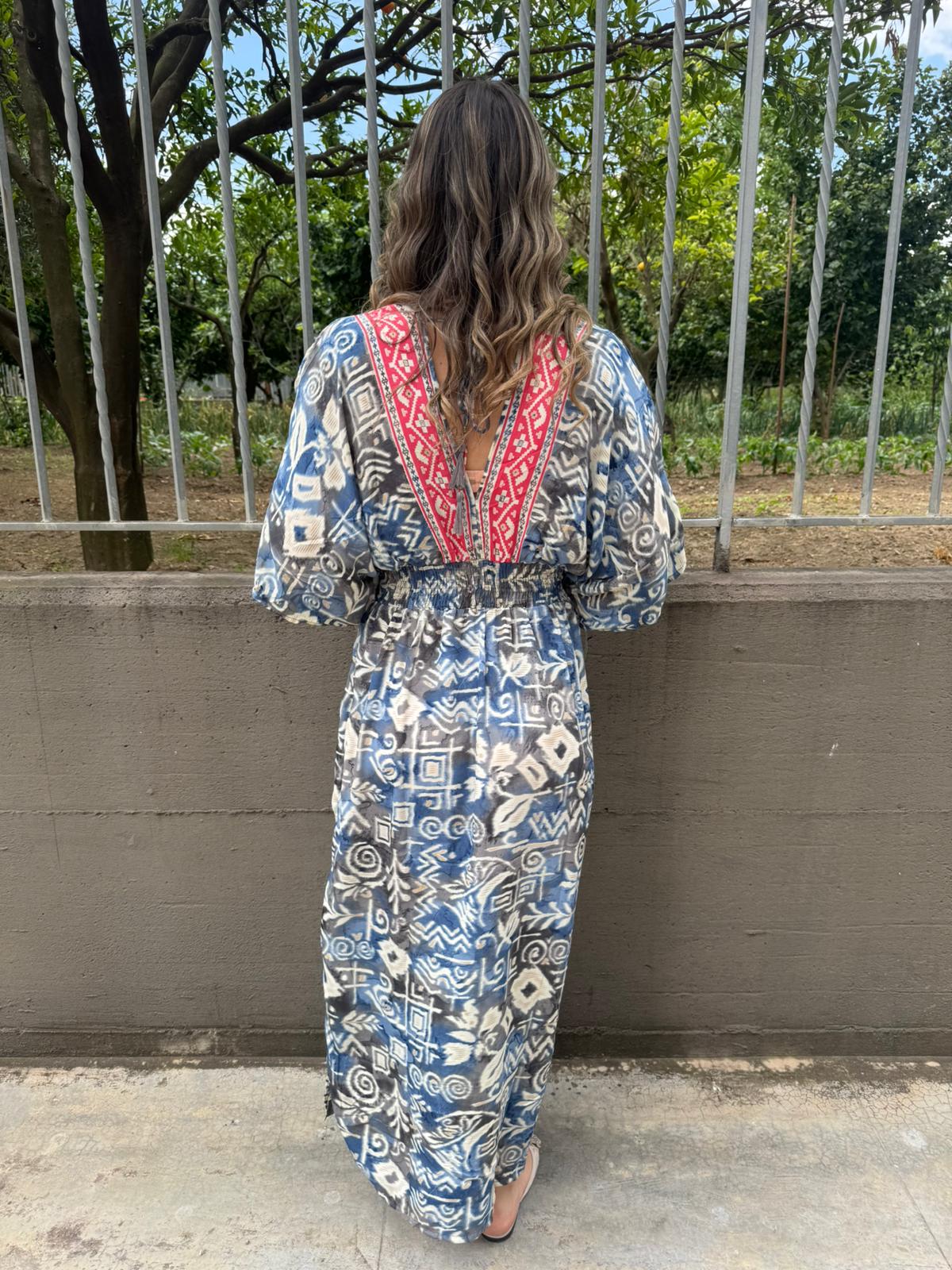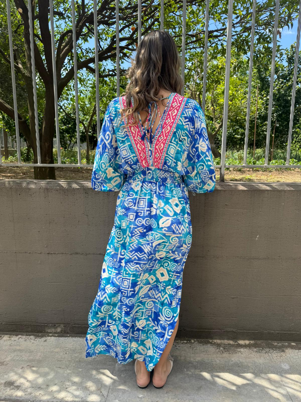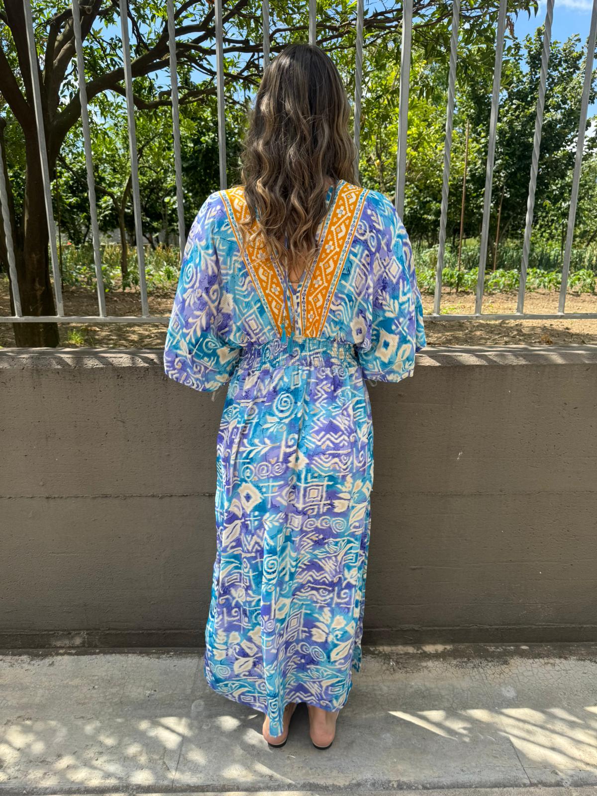 Vestito indiano con scollo a V ed elastico in vita