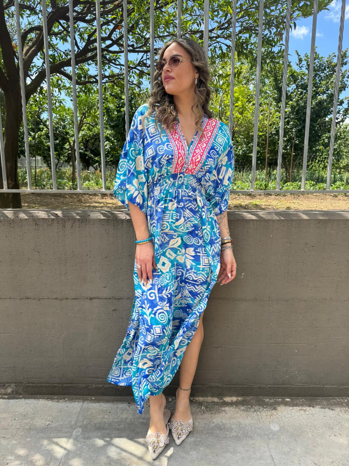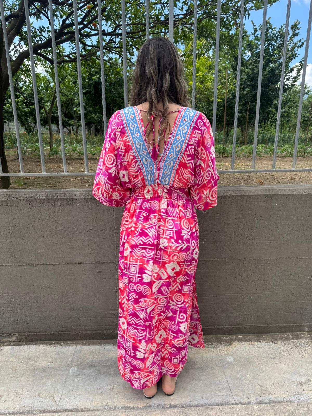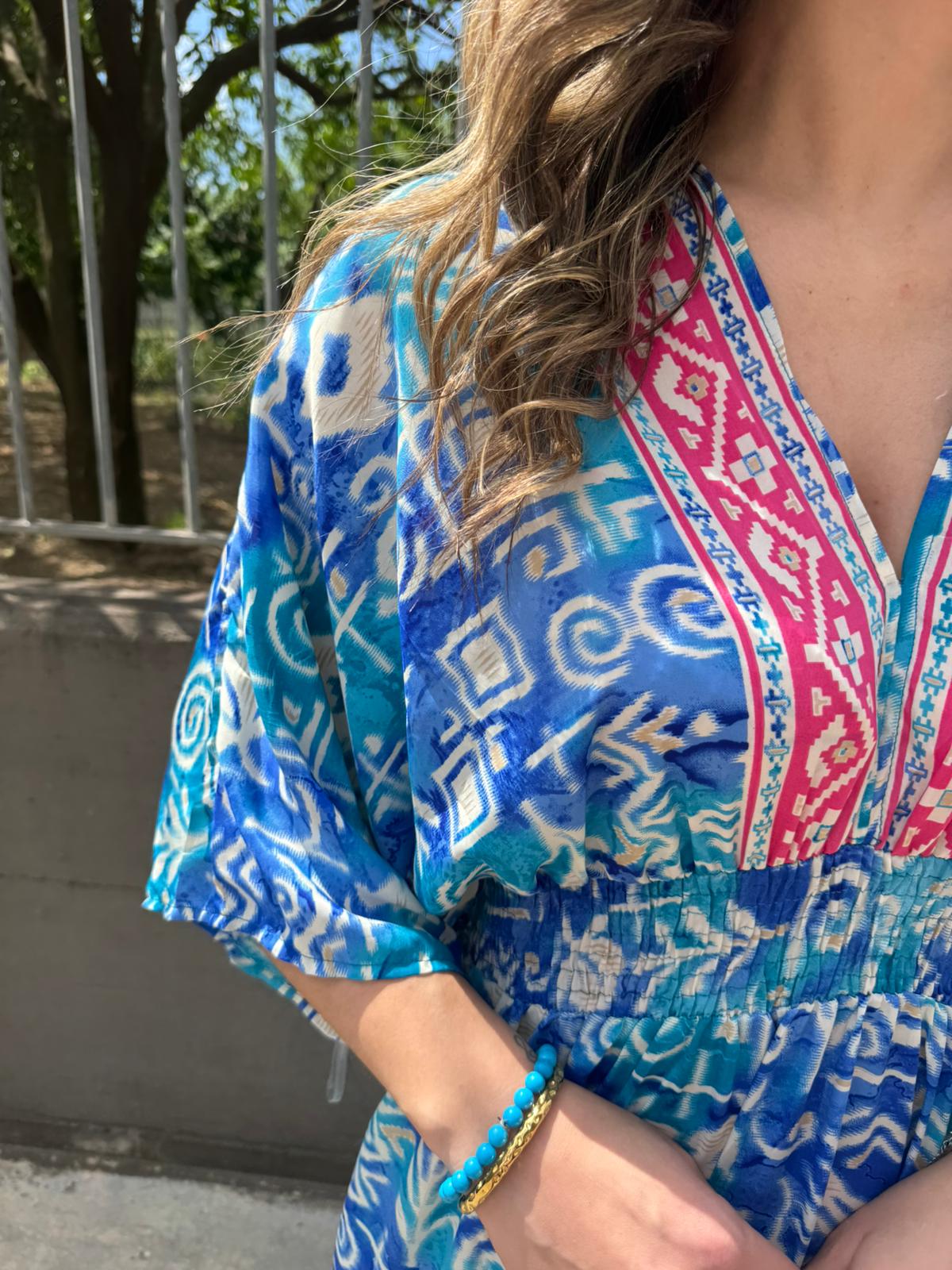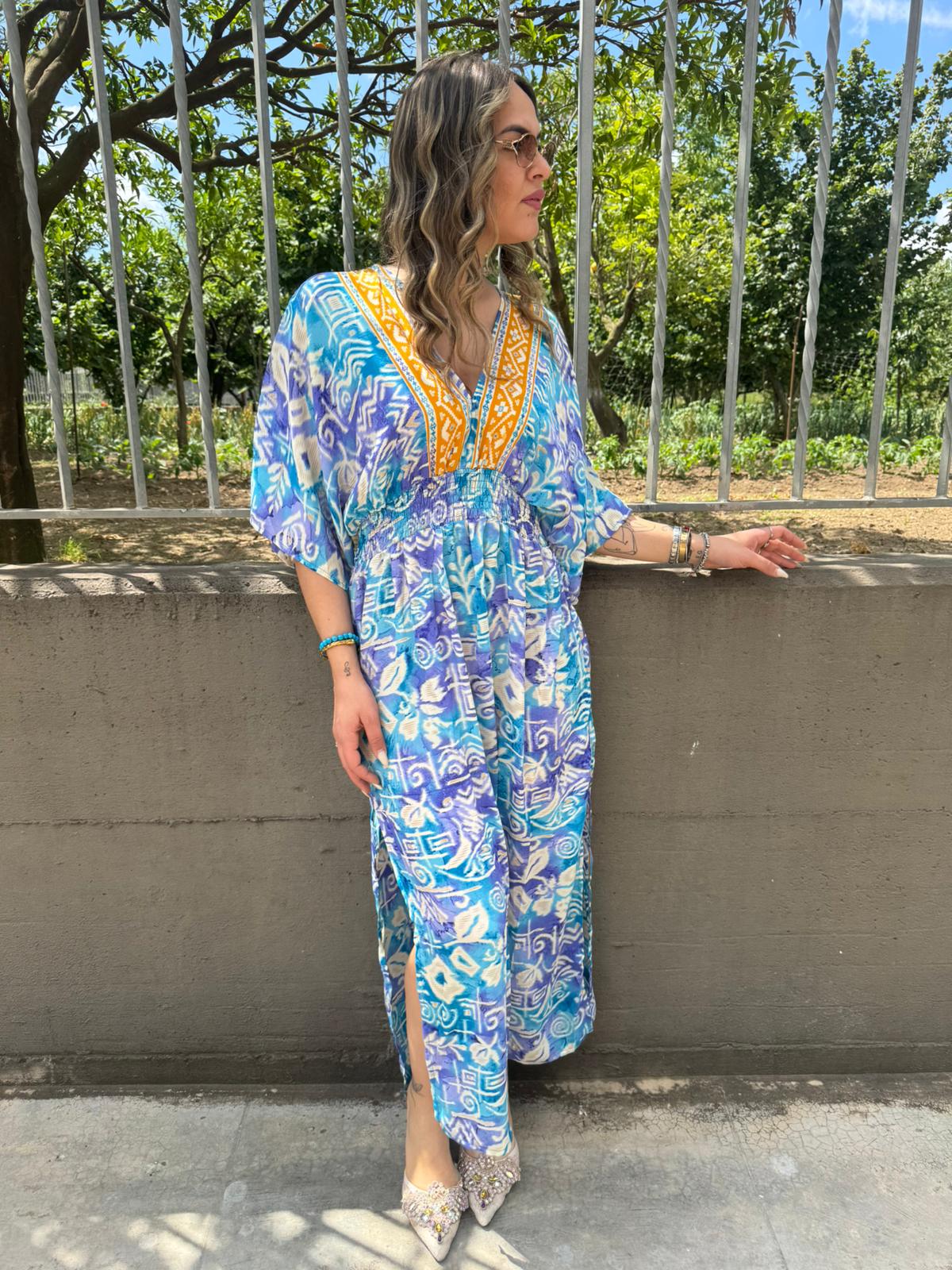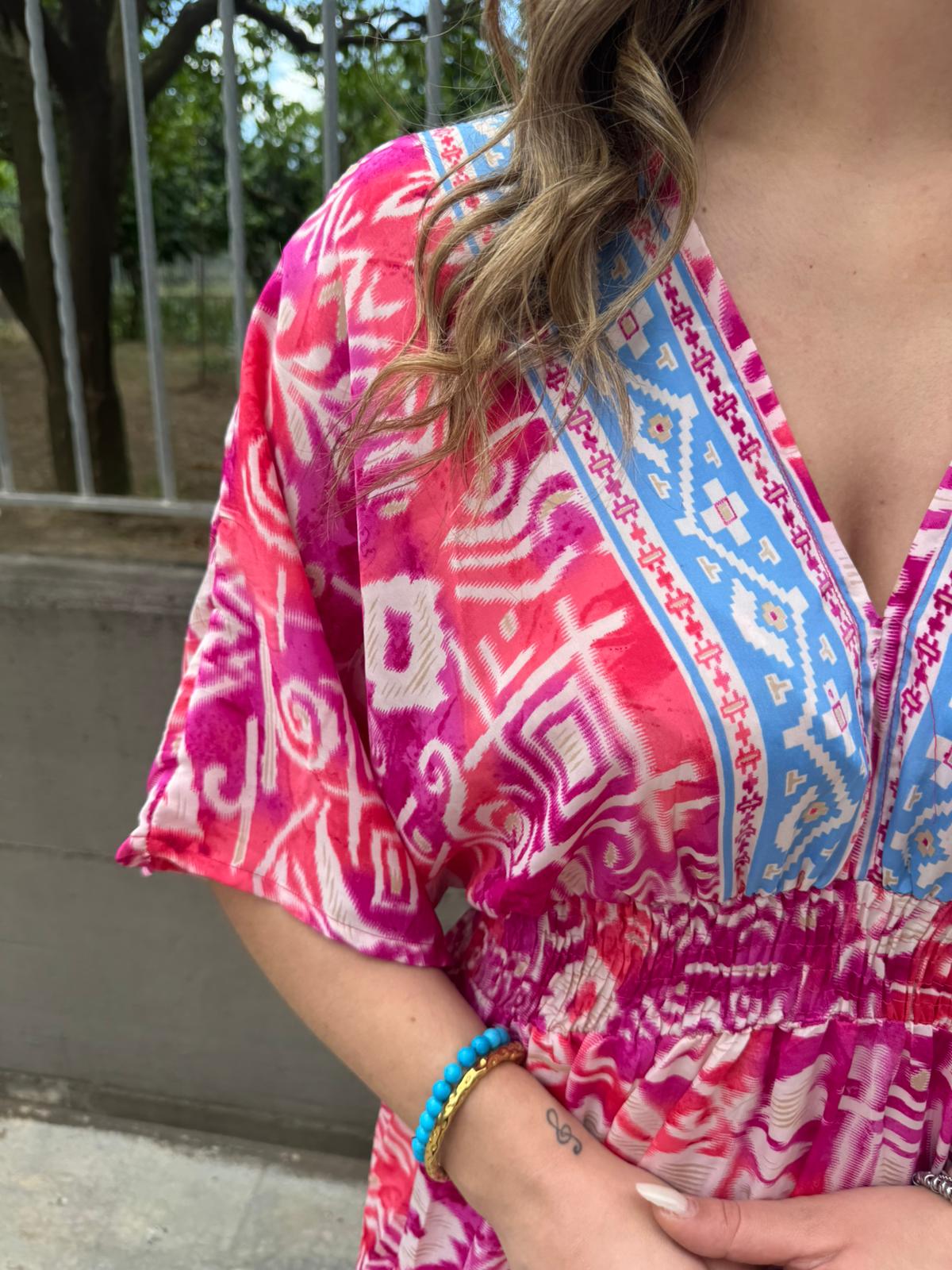 Vestito indiano con scollo a V ed elastico in vita