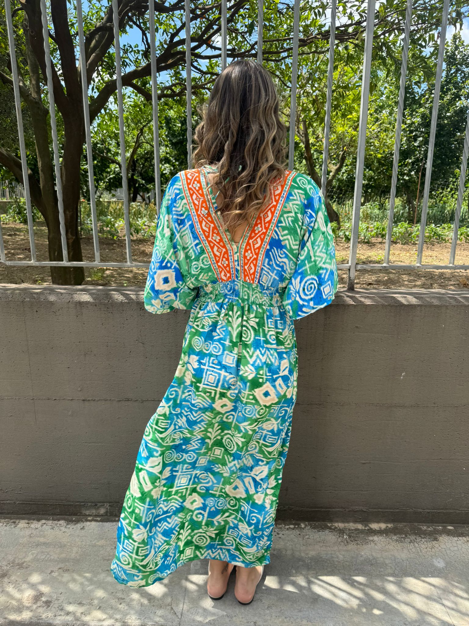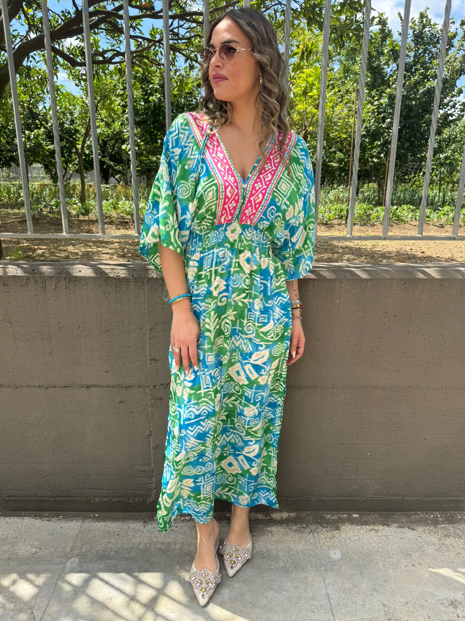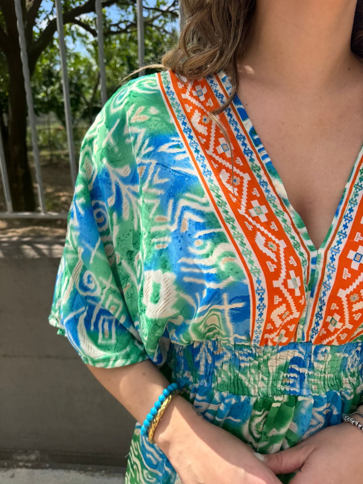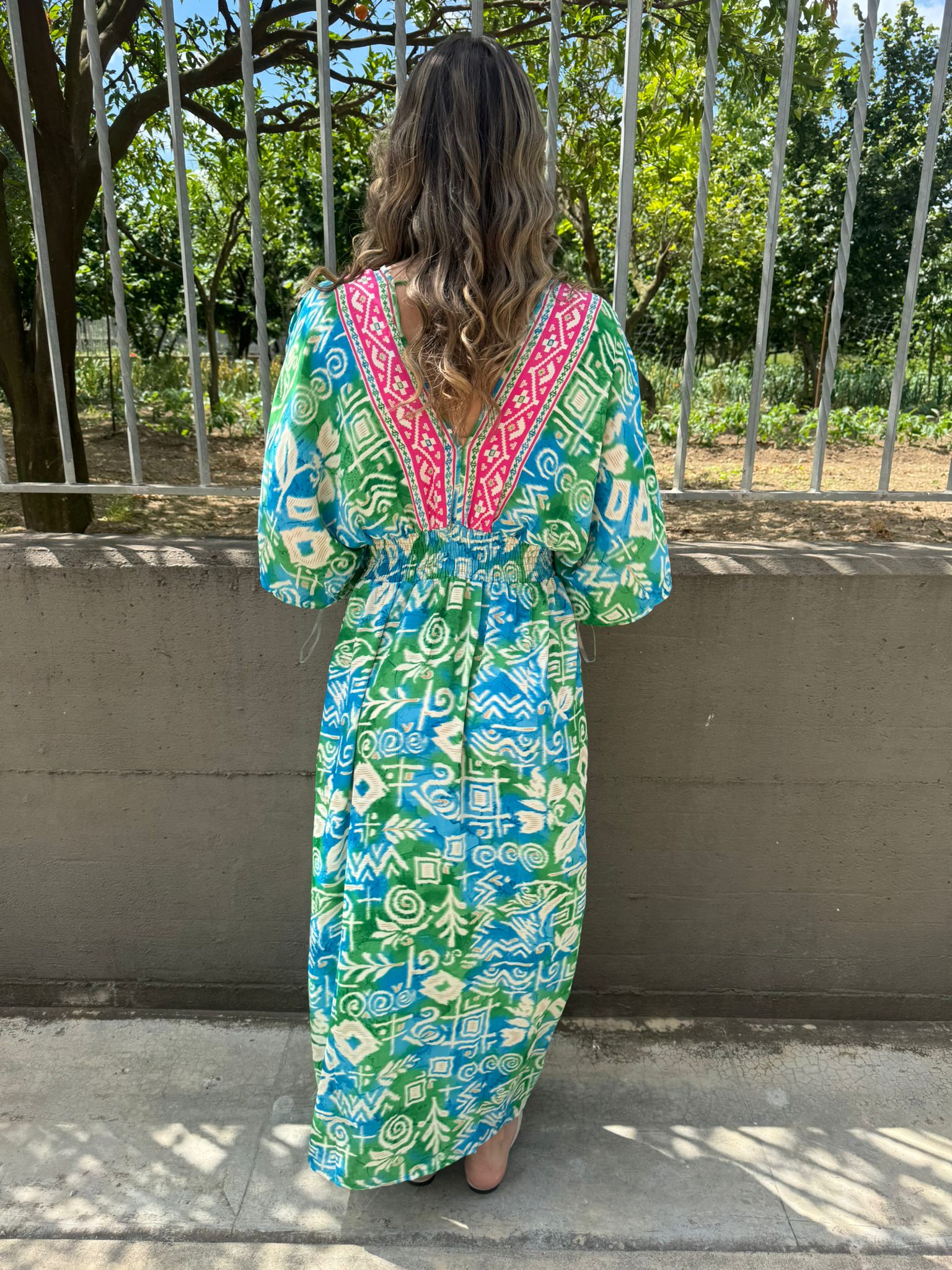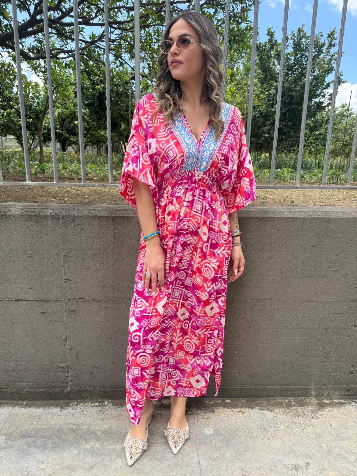 Vestito indiano con scollo a V ed elastico in vita