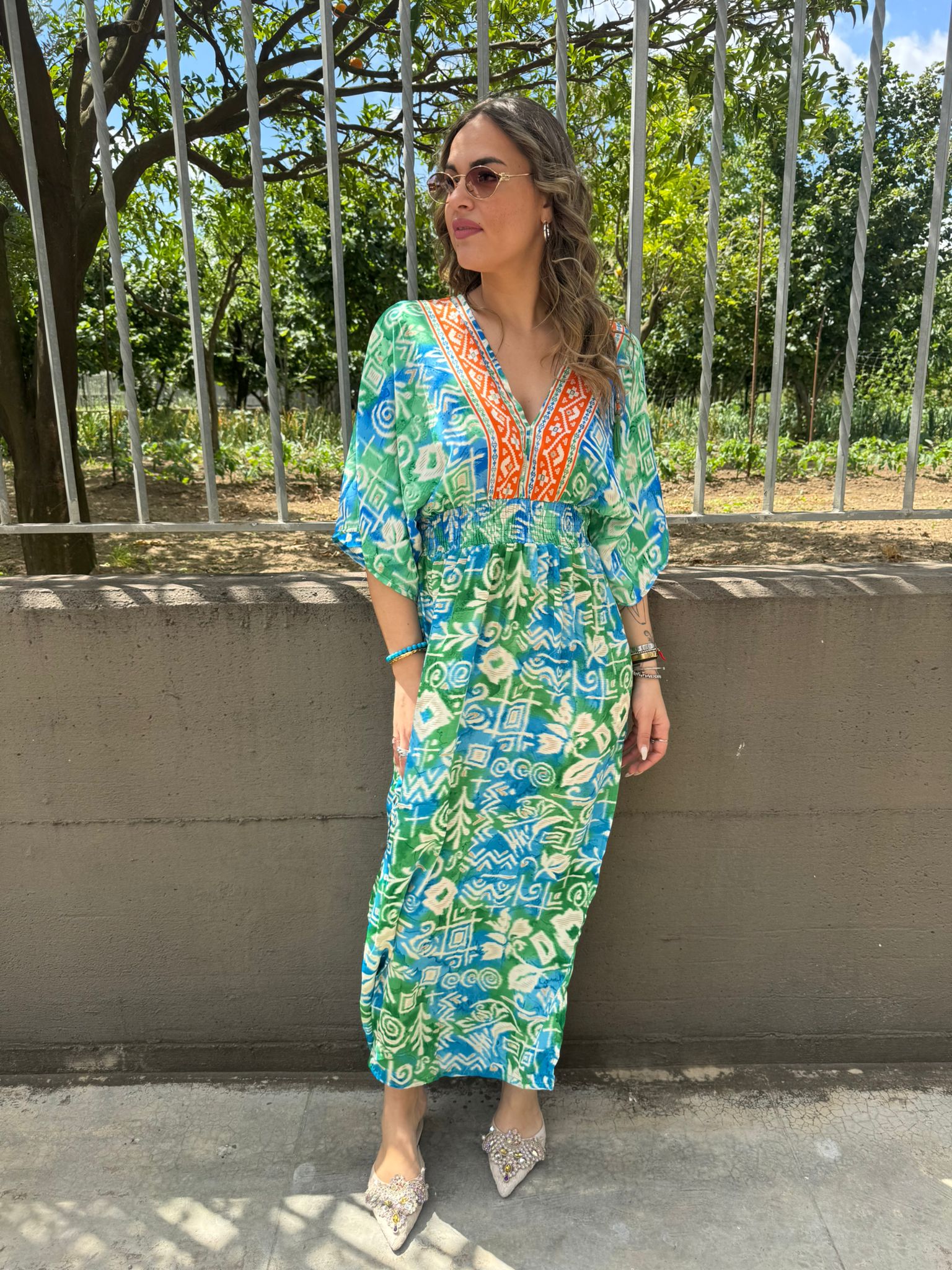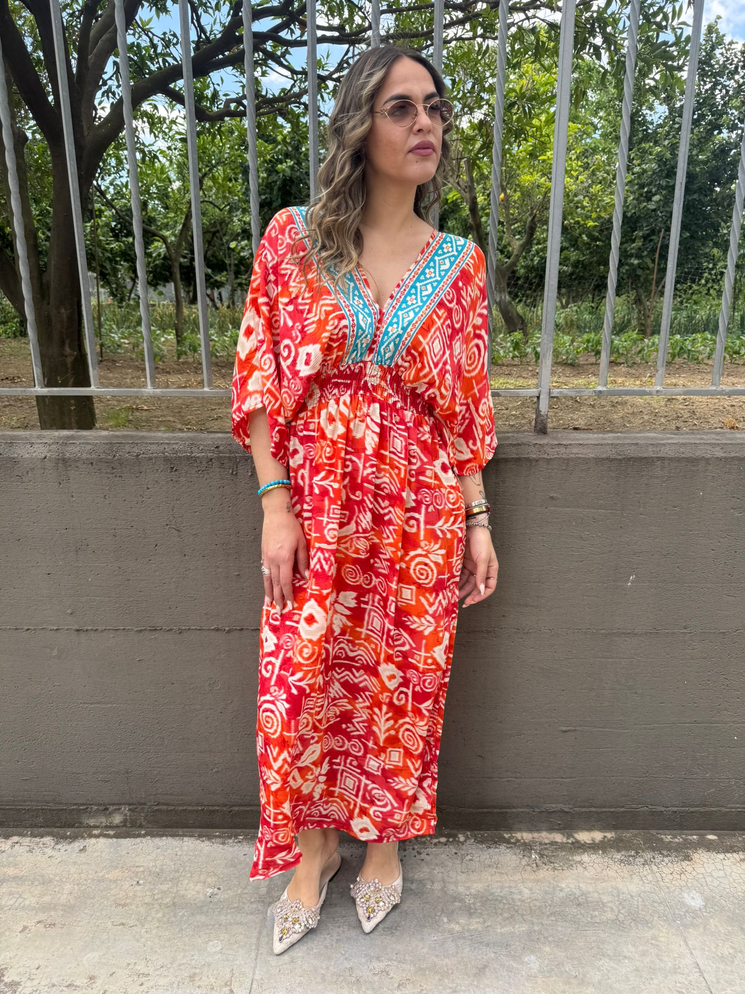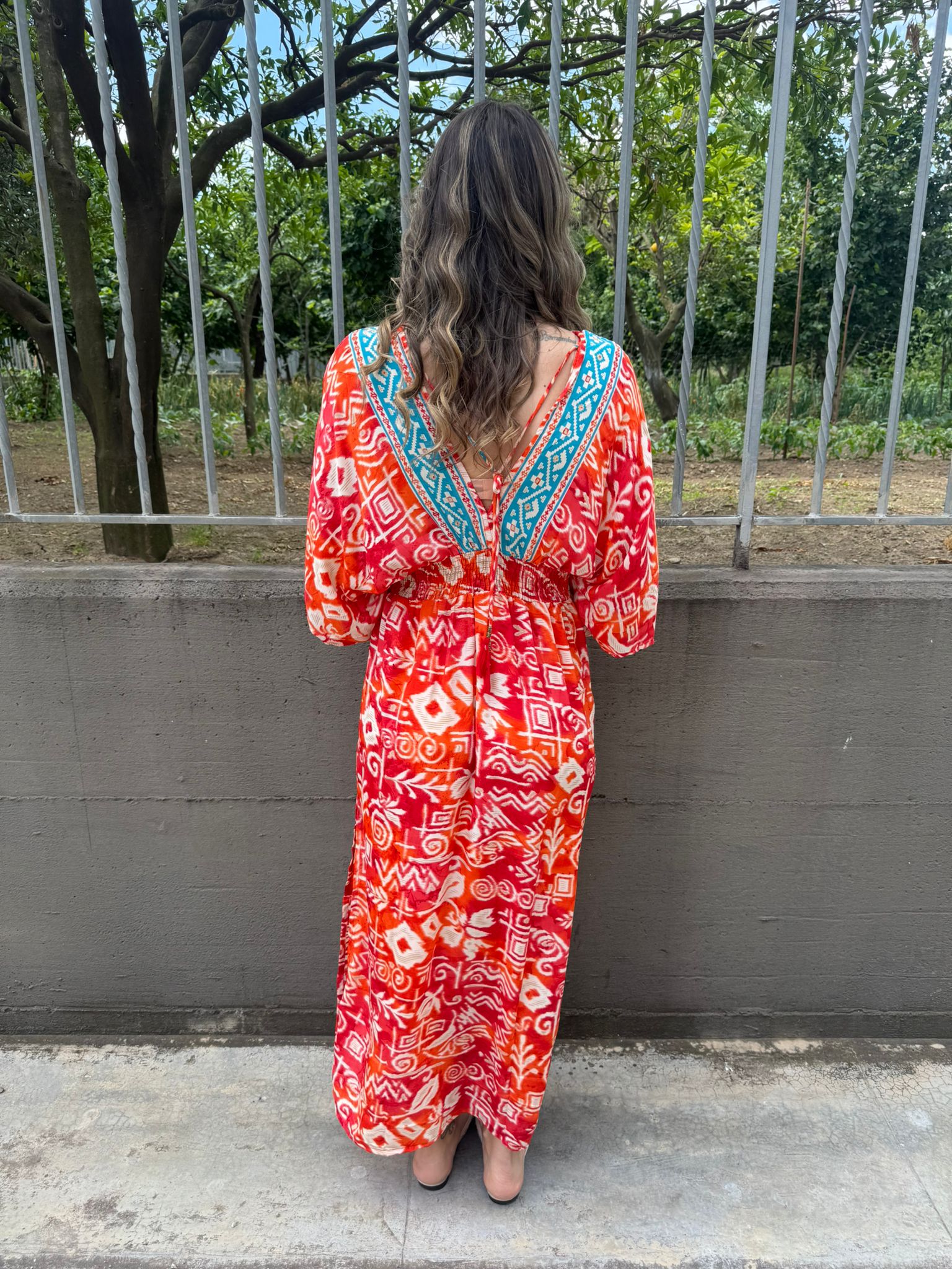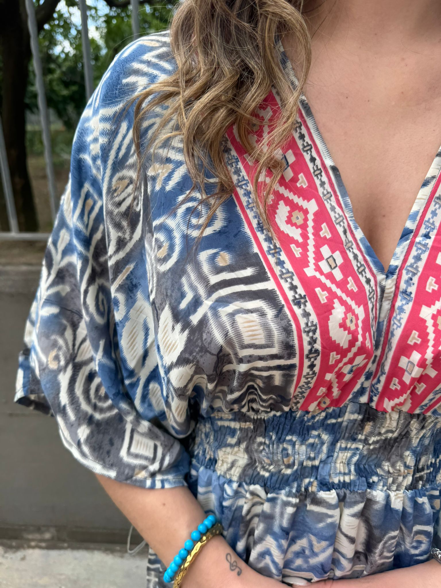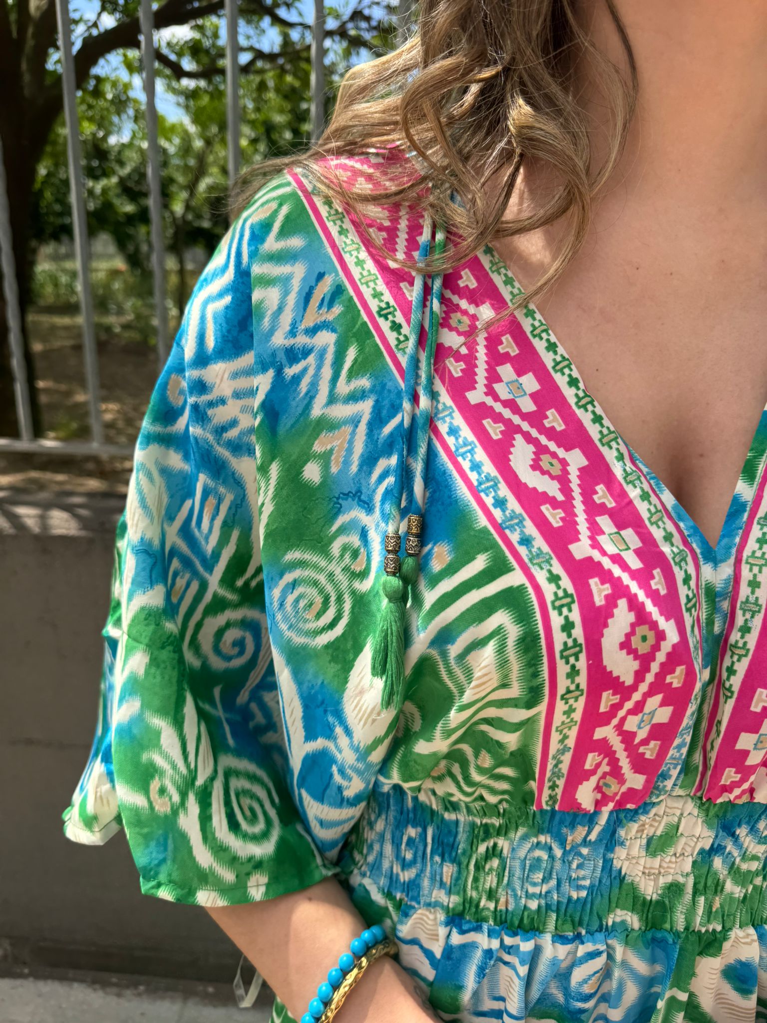 Vestito indiano con scollo a V ed elastico in vita
