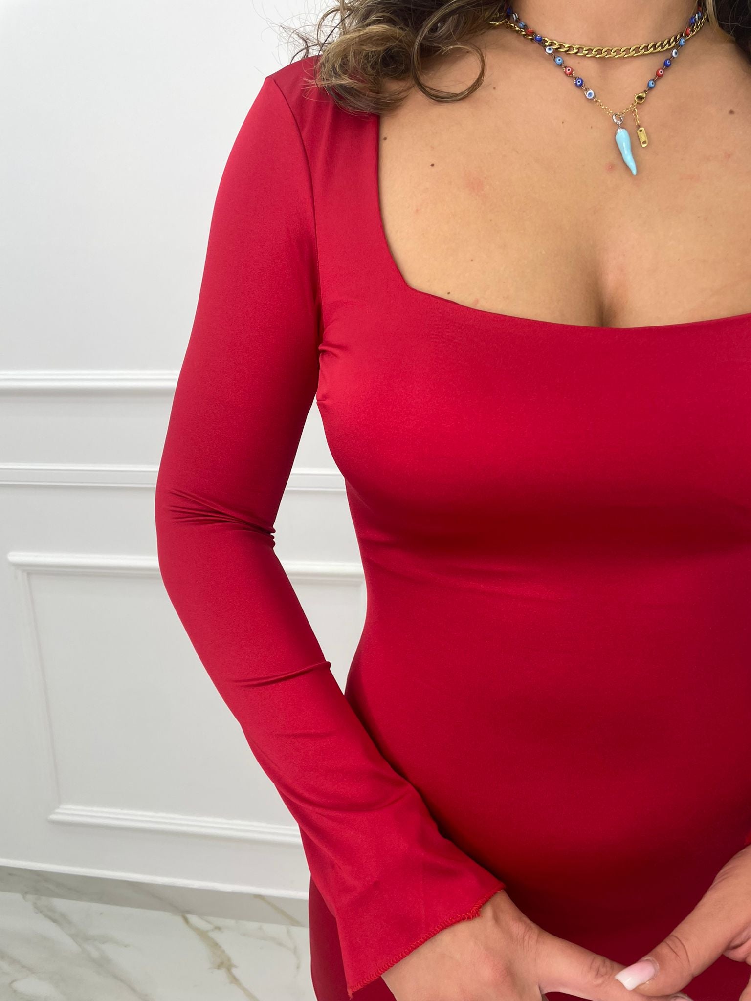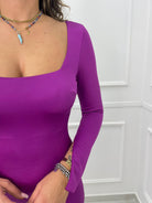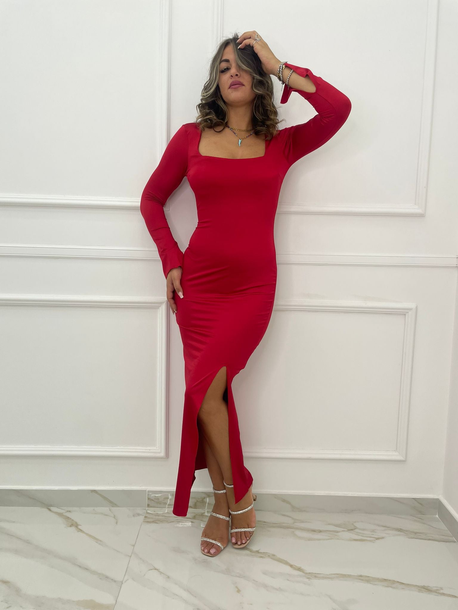 Vestito lungo con scollo quadrato e spacco