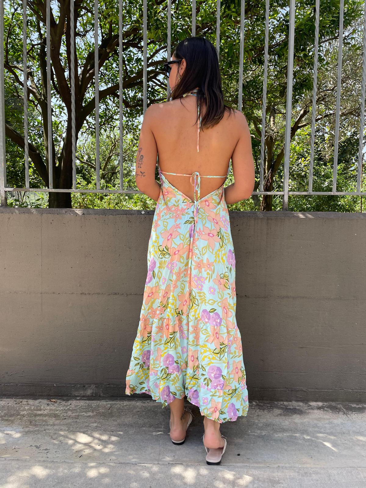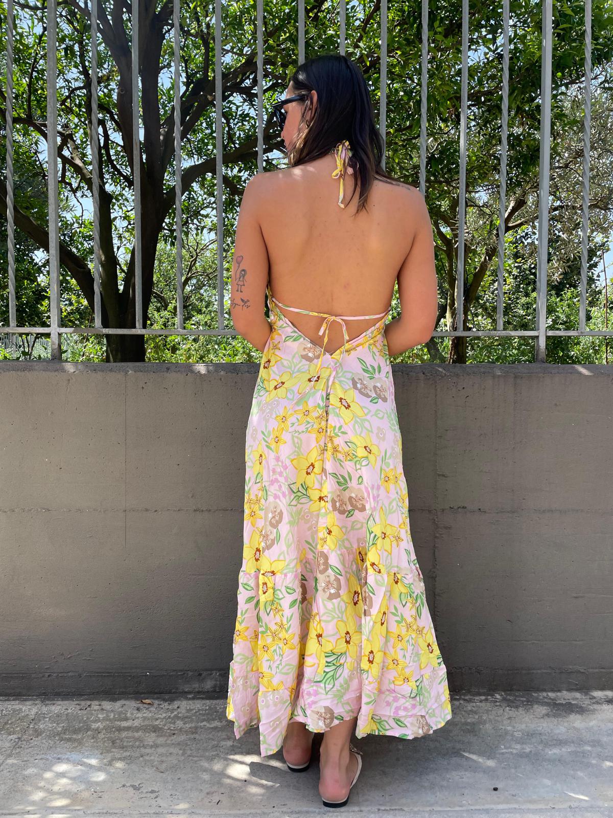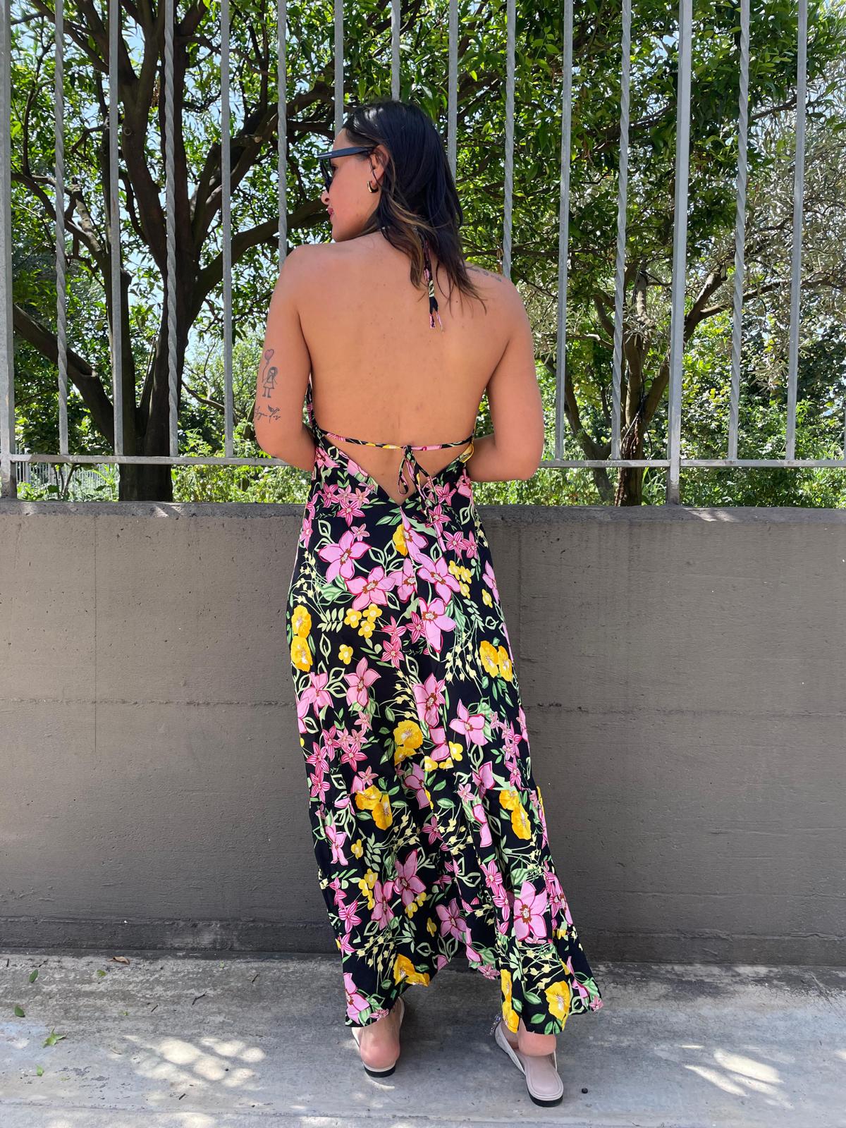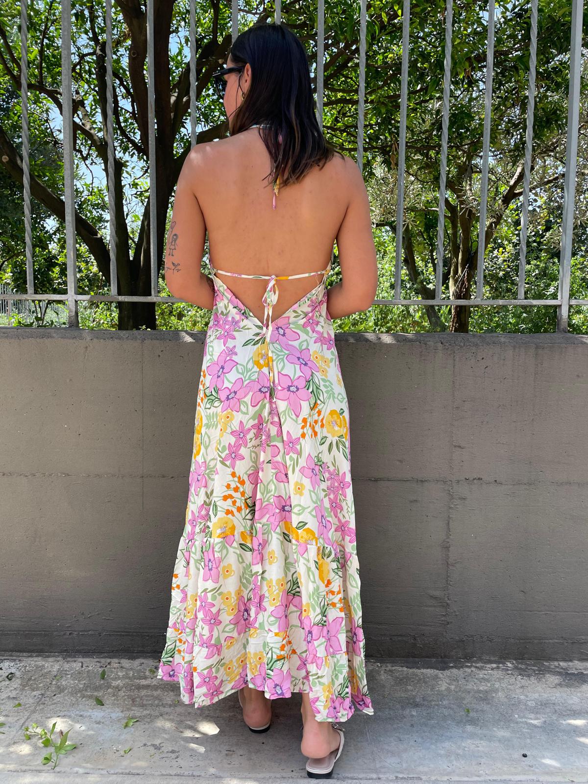 Vestito lungo floreale con scollo a V alla schiena