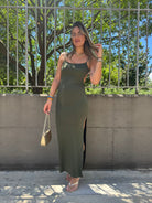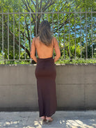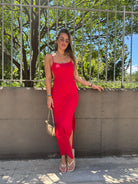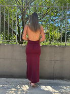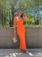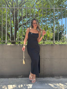 Vestito lungo in lycra con scollo quadrato e schiena scoperta