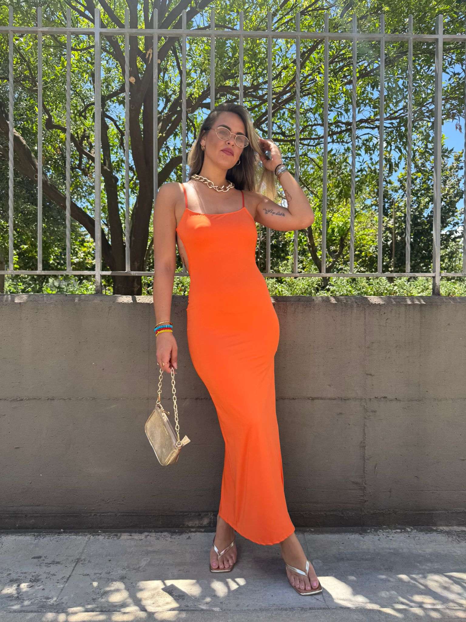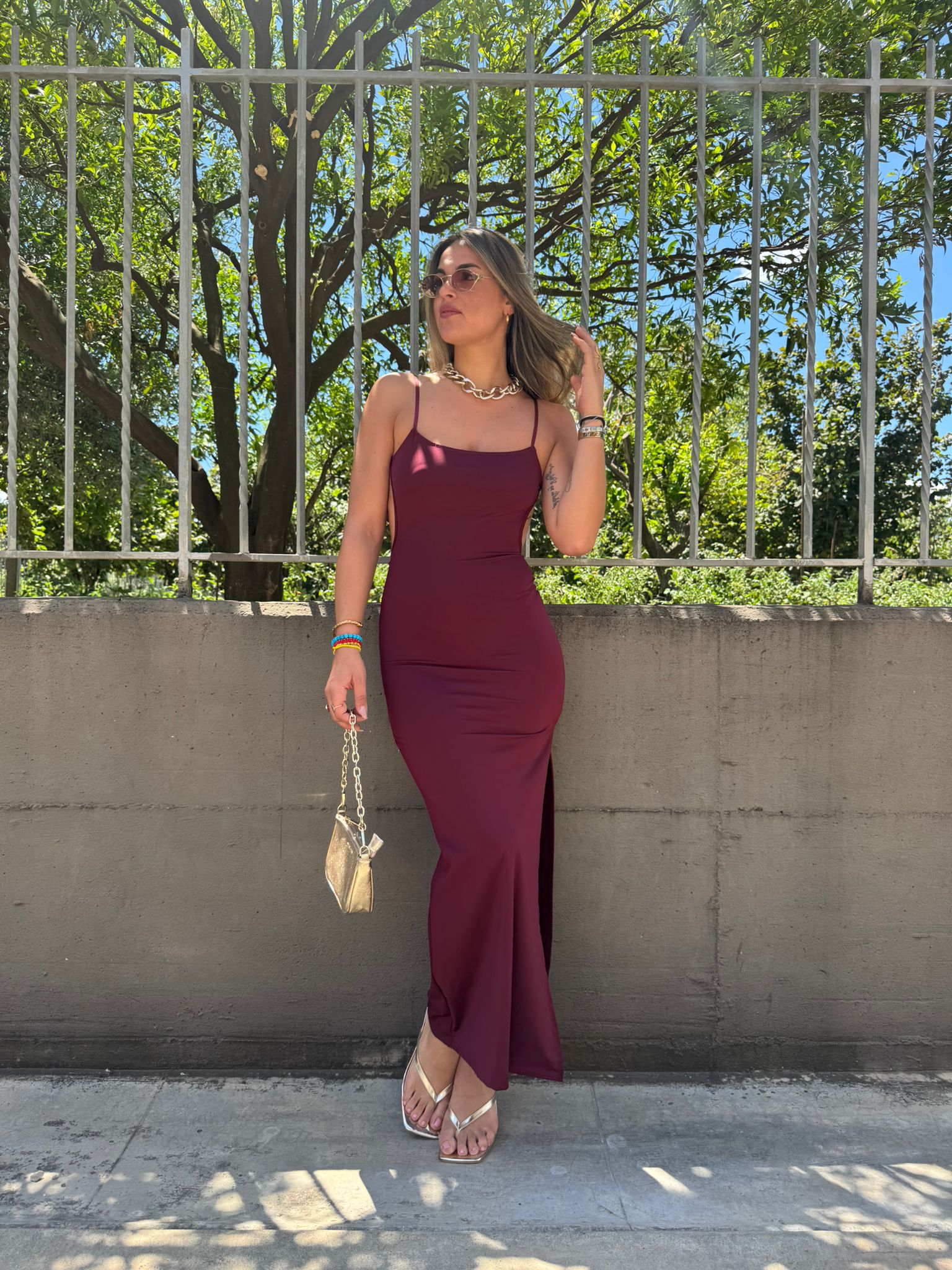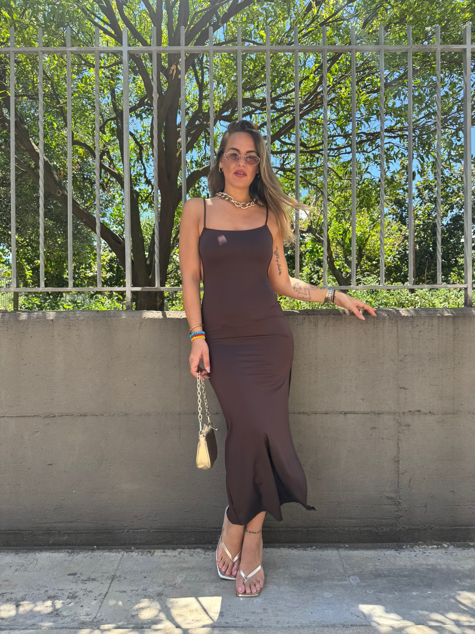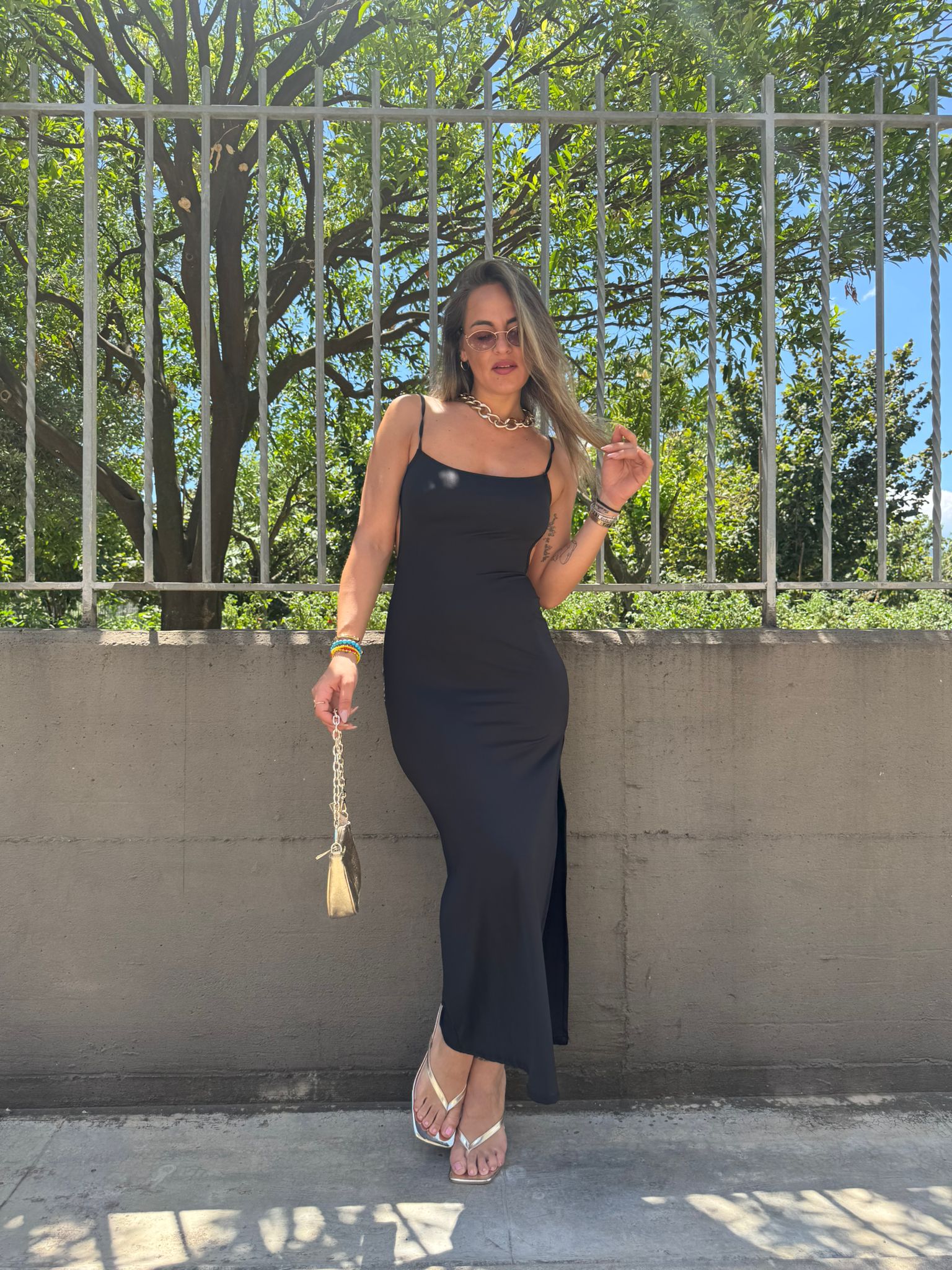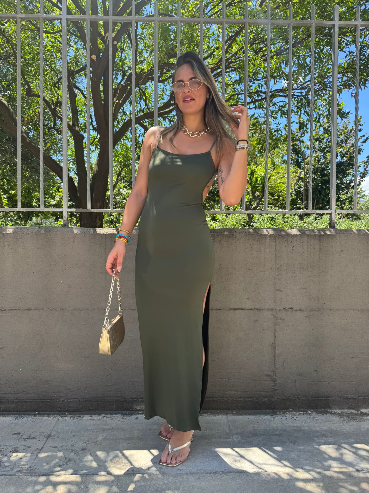 - Vestito lungo tinta unita