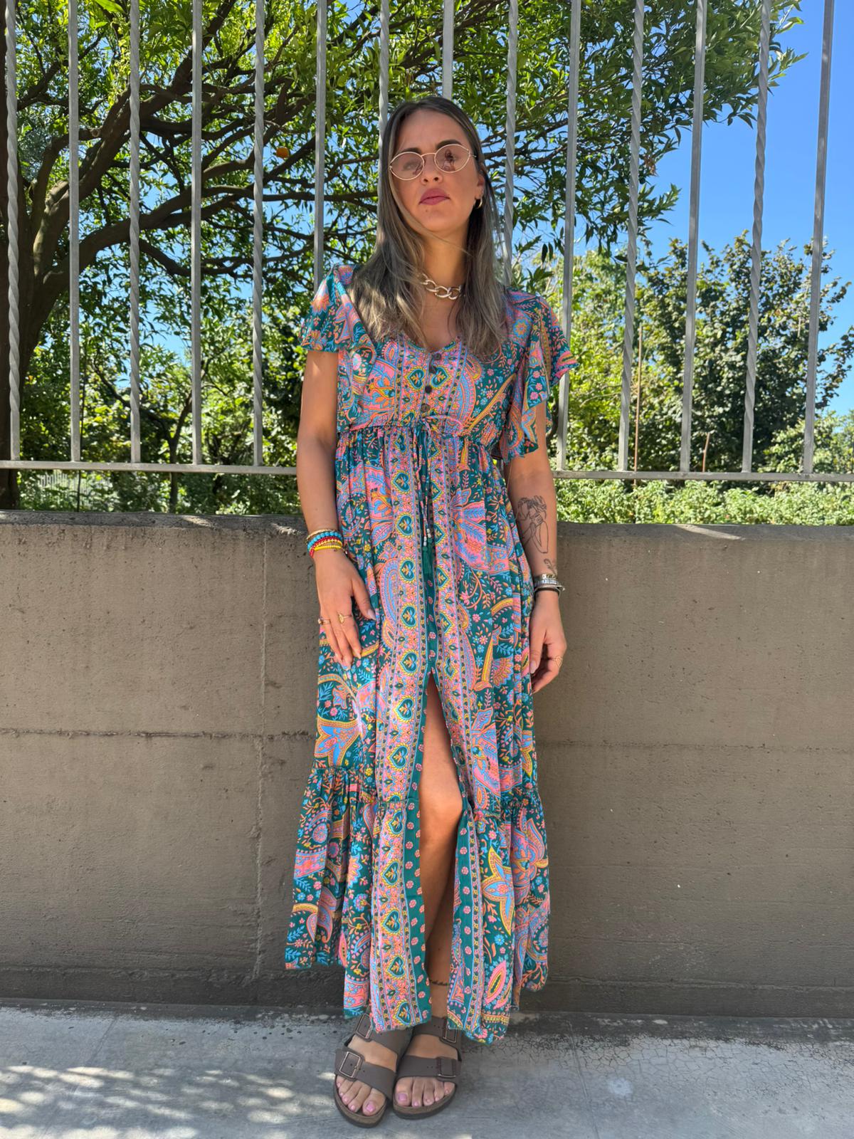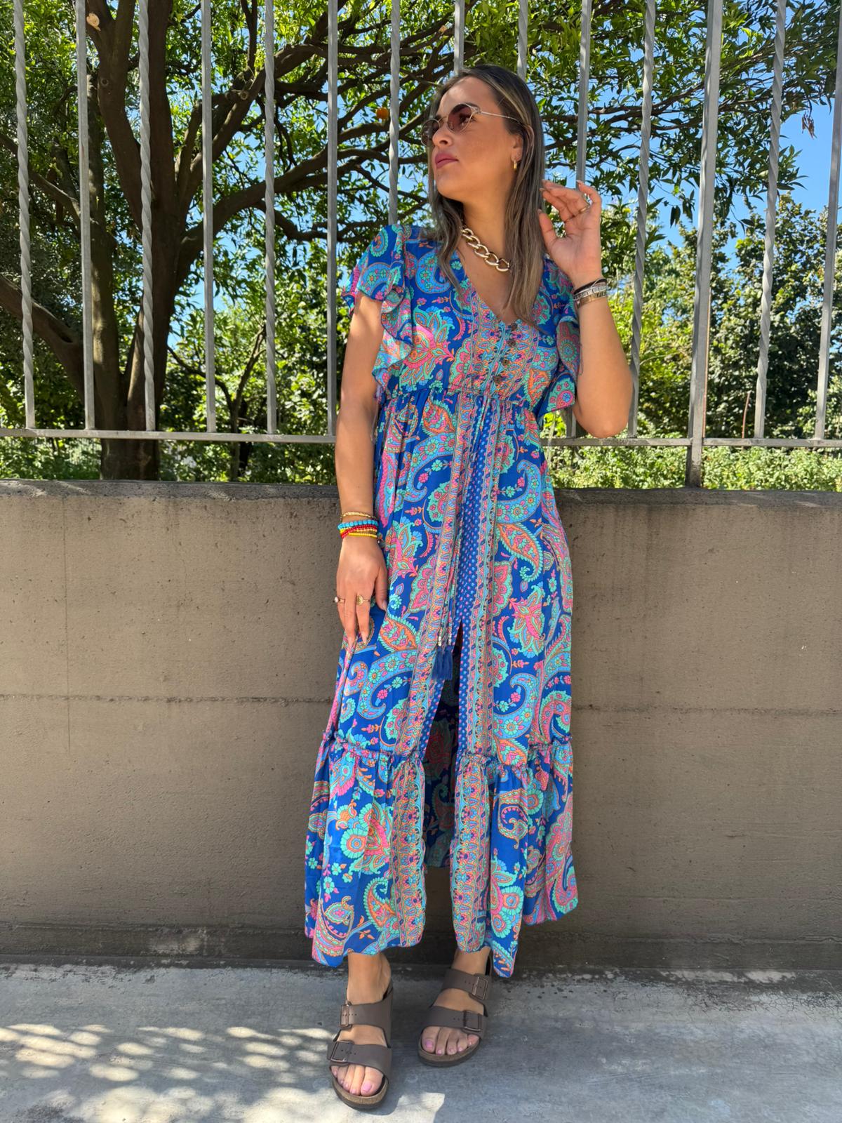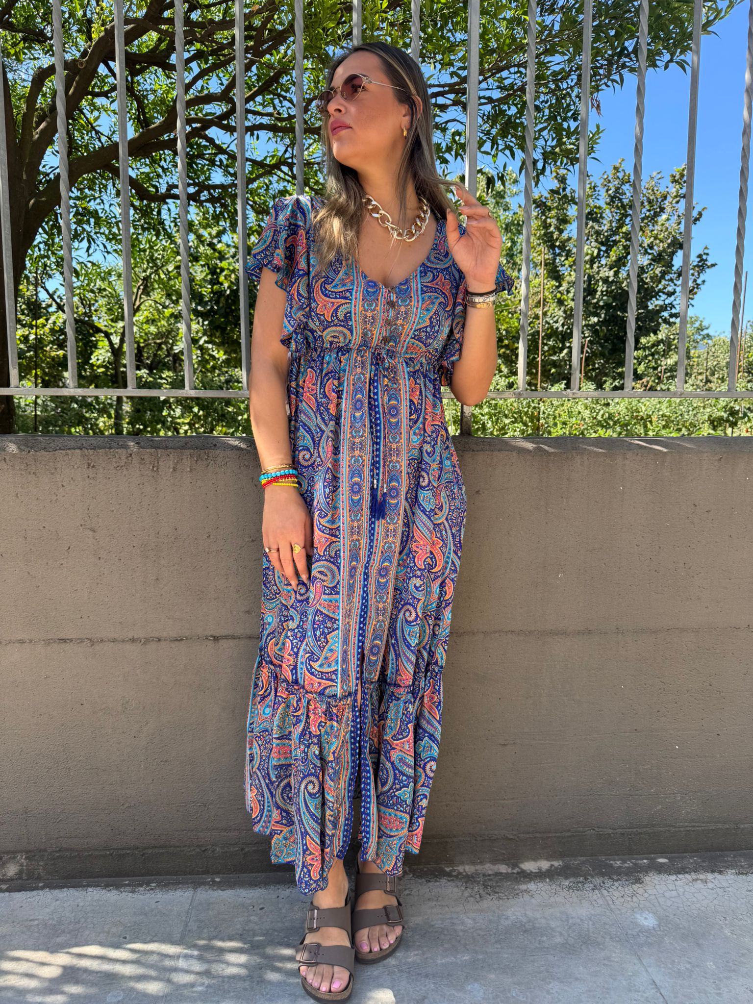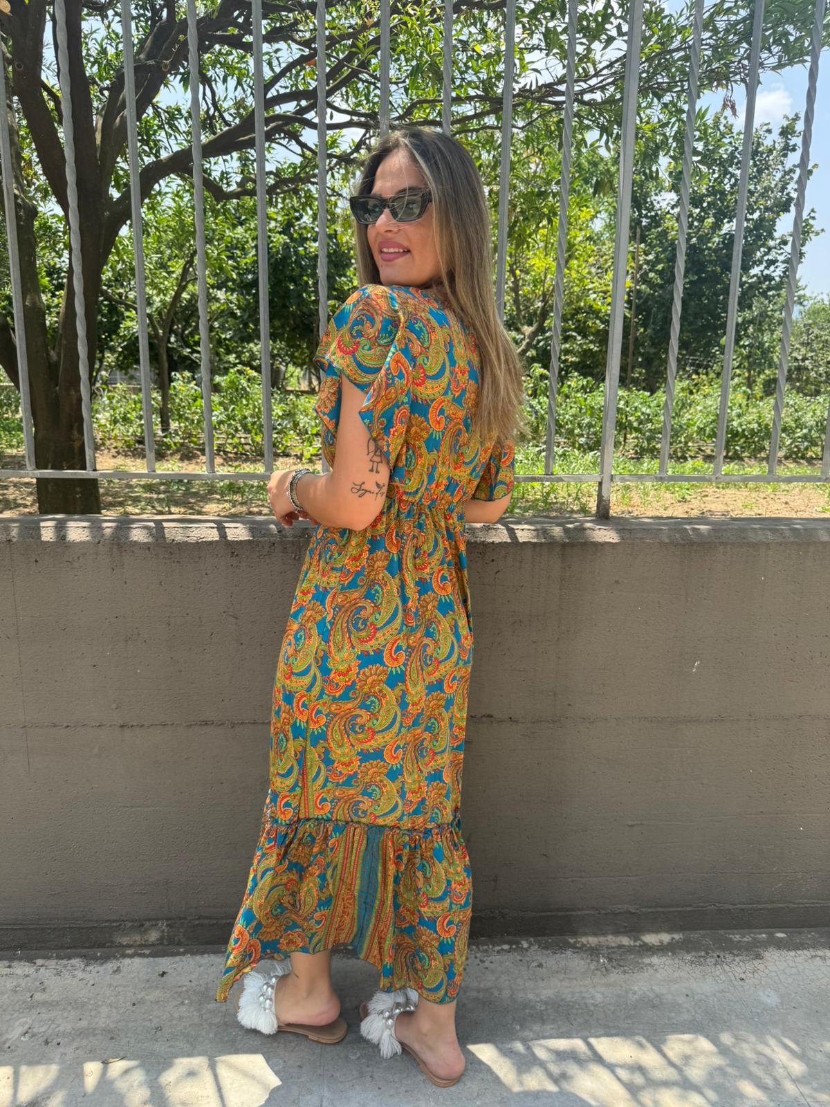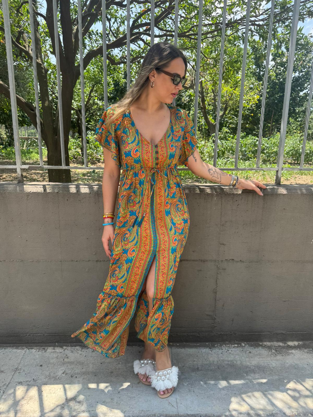 Vestito lungo indiano con bottoni e laccetto regolabile