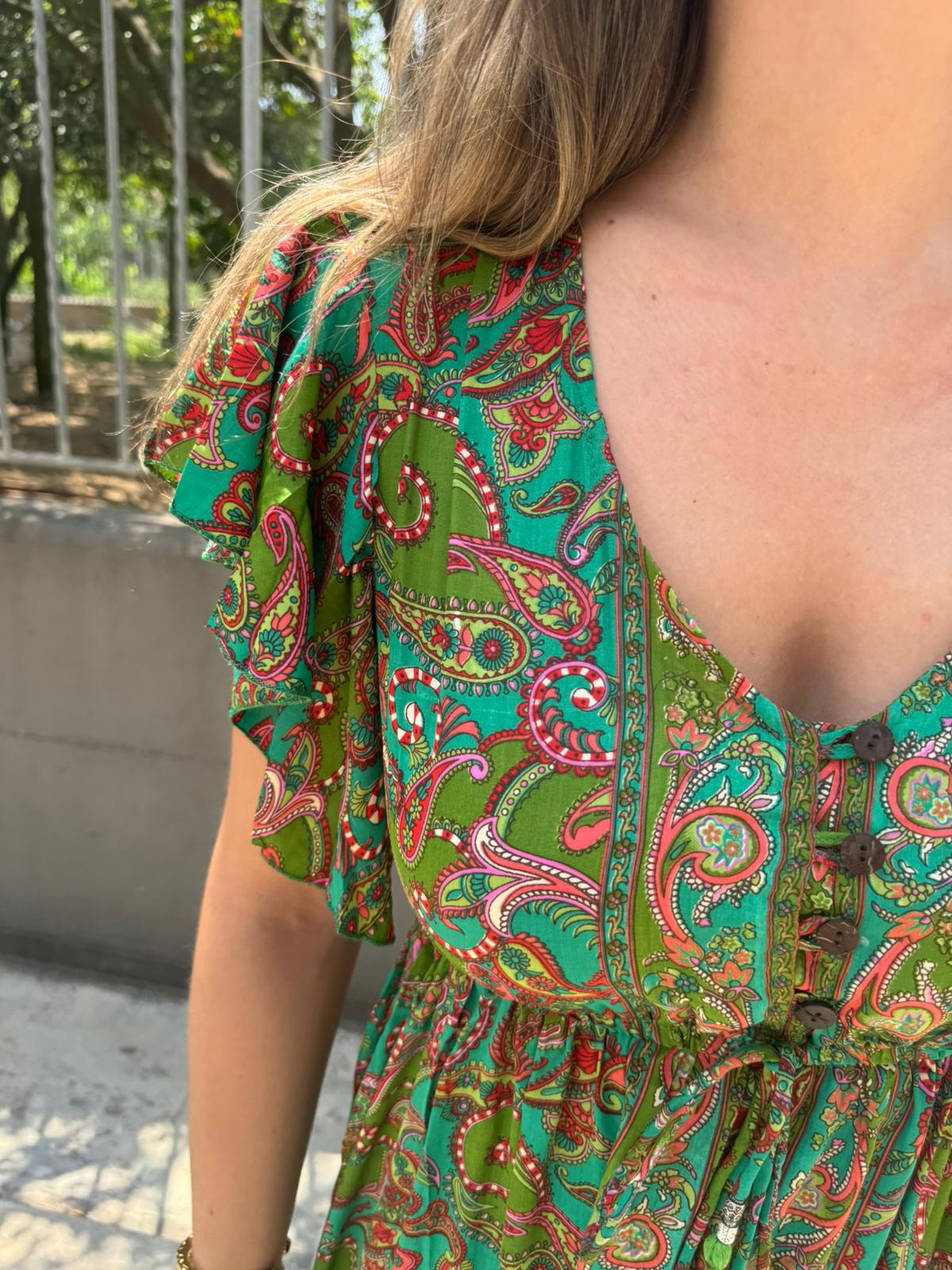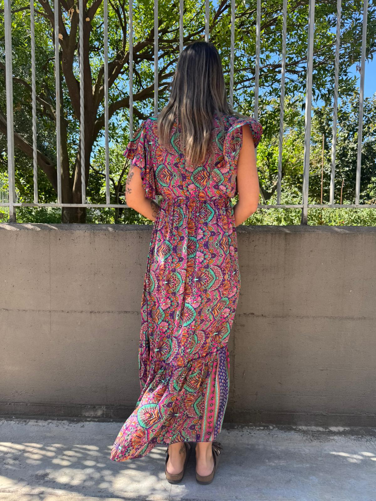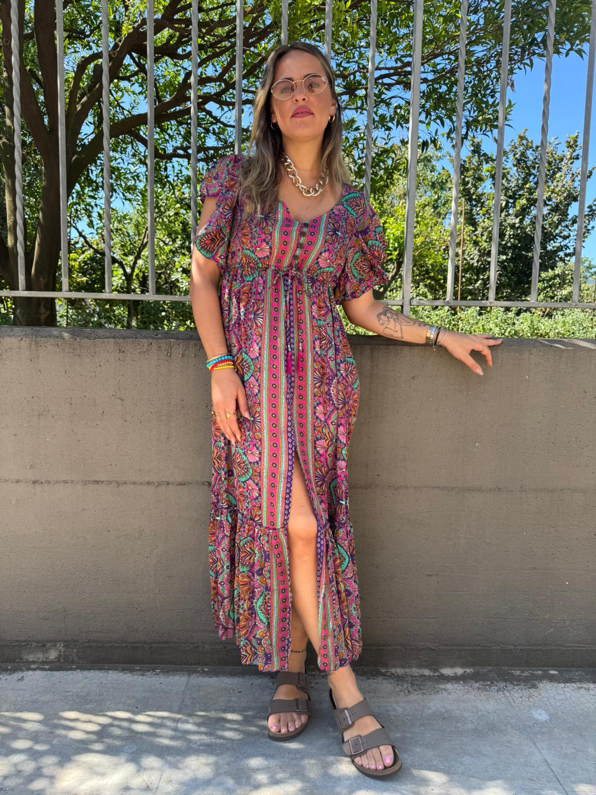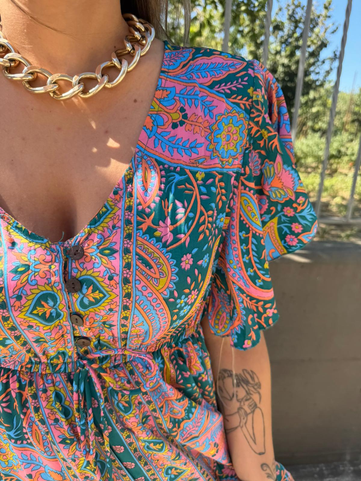 Vestito lungo indiano con bottoni e laccetto regolabile