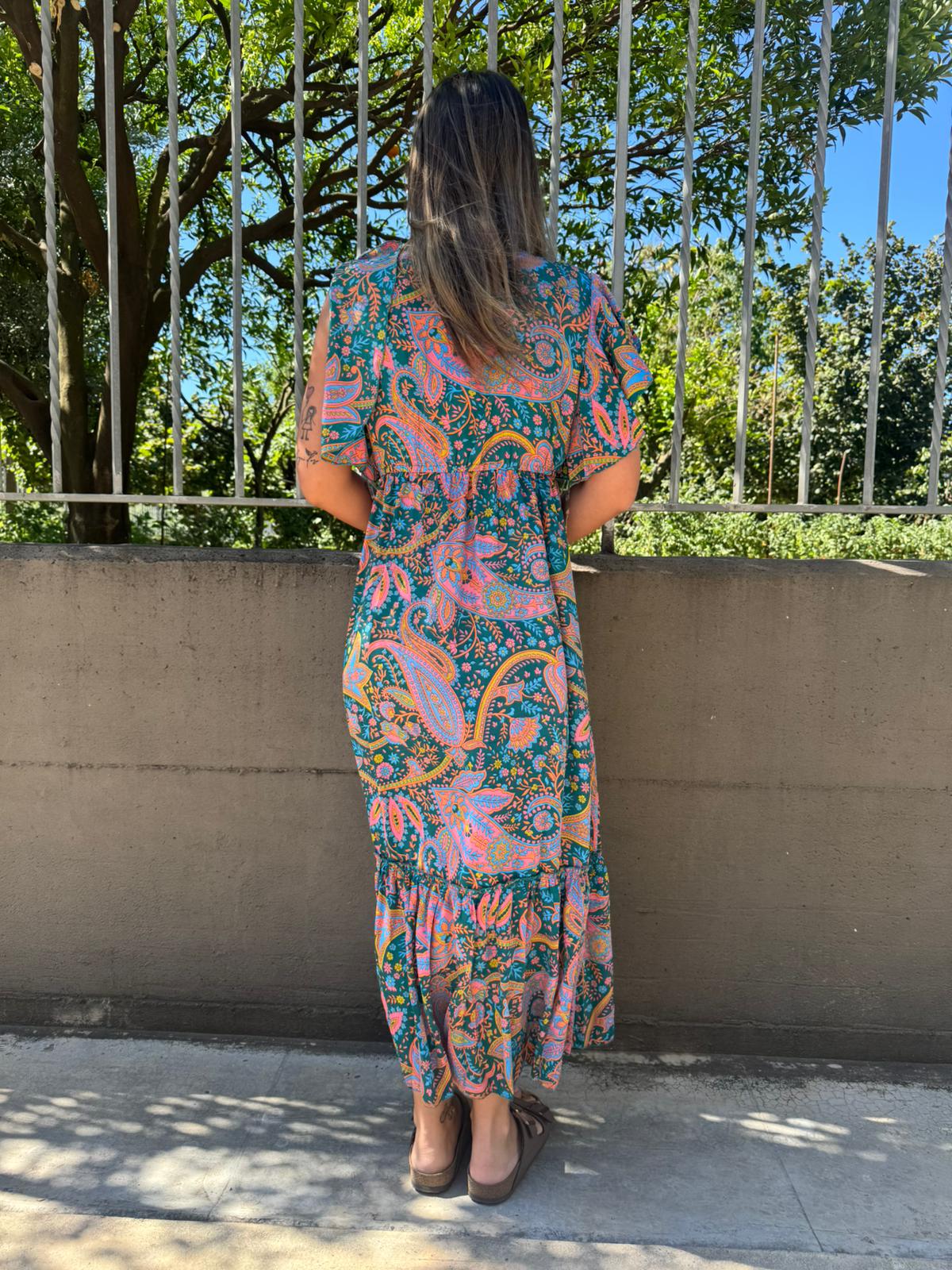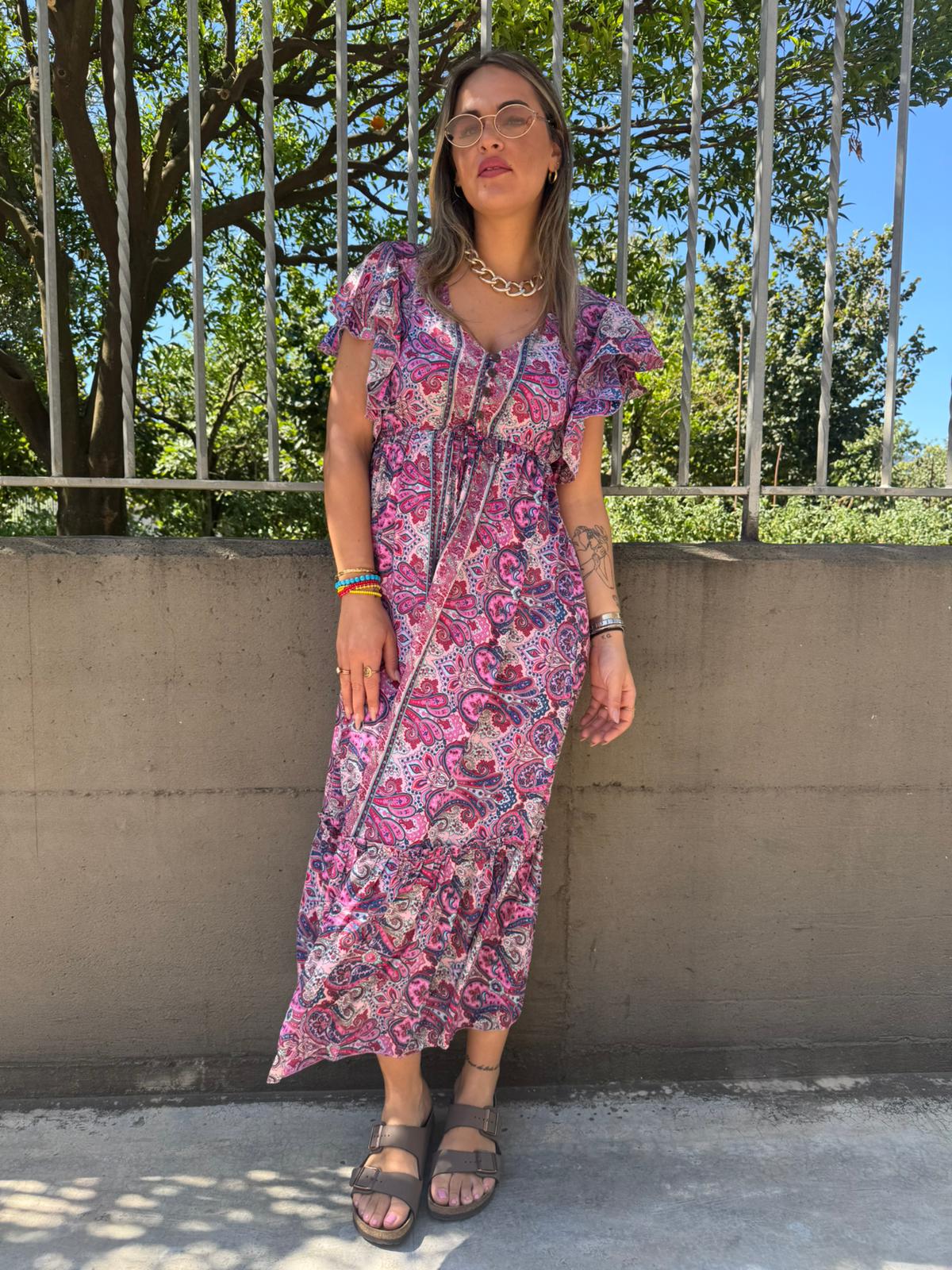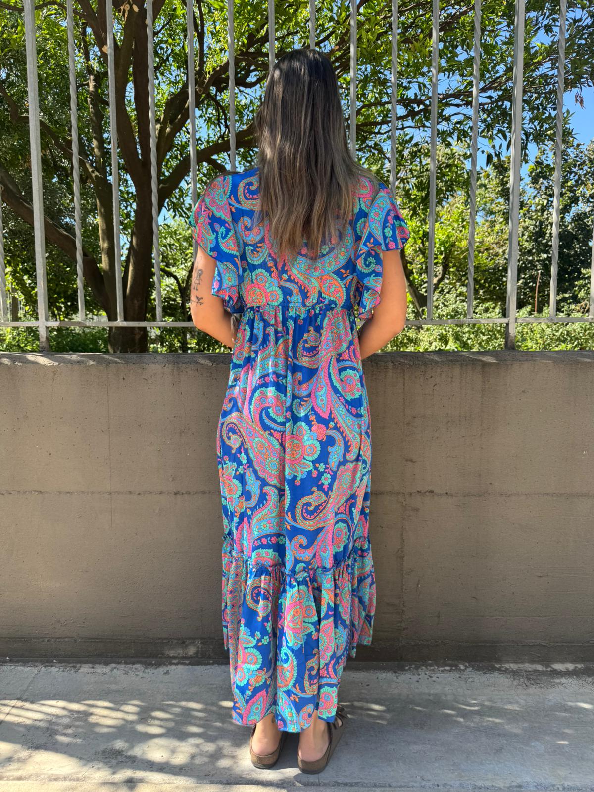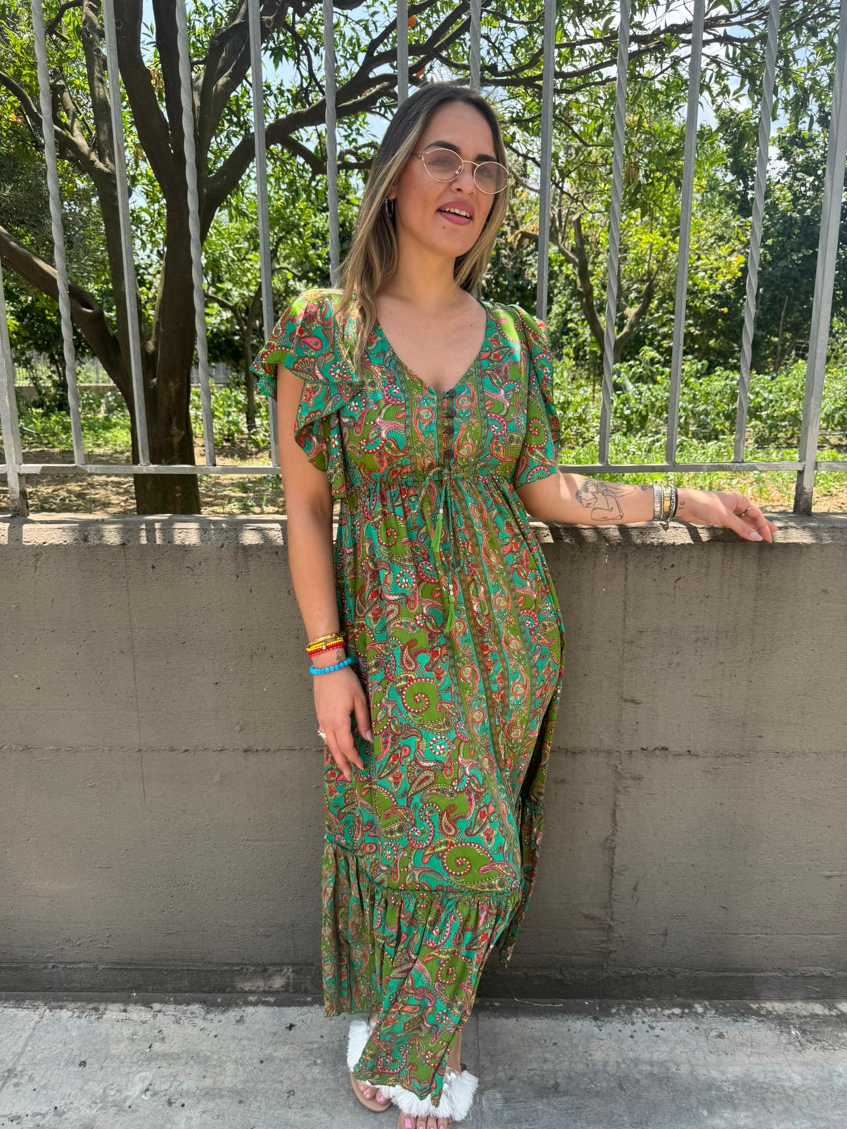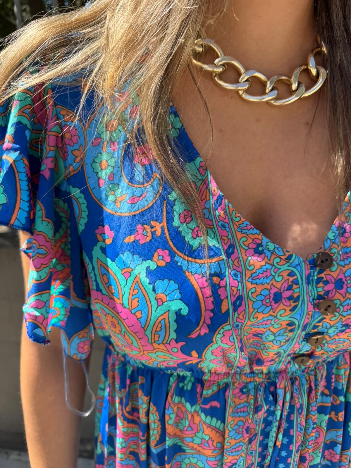 Vestito lungo indiano con bottoni e laccetto regolabile