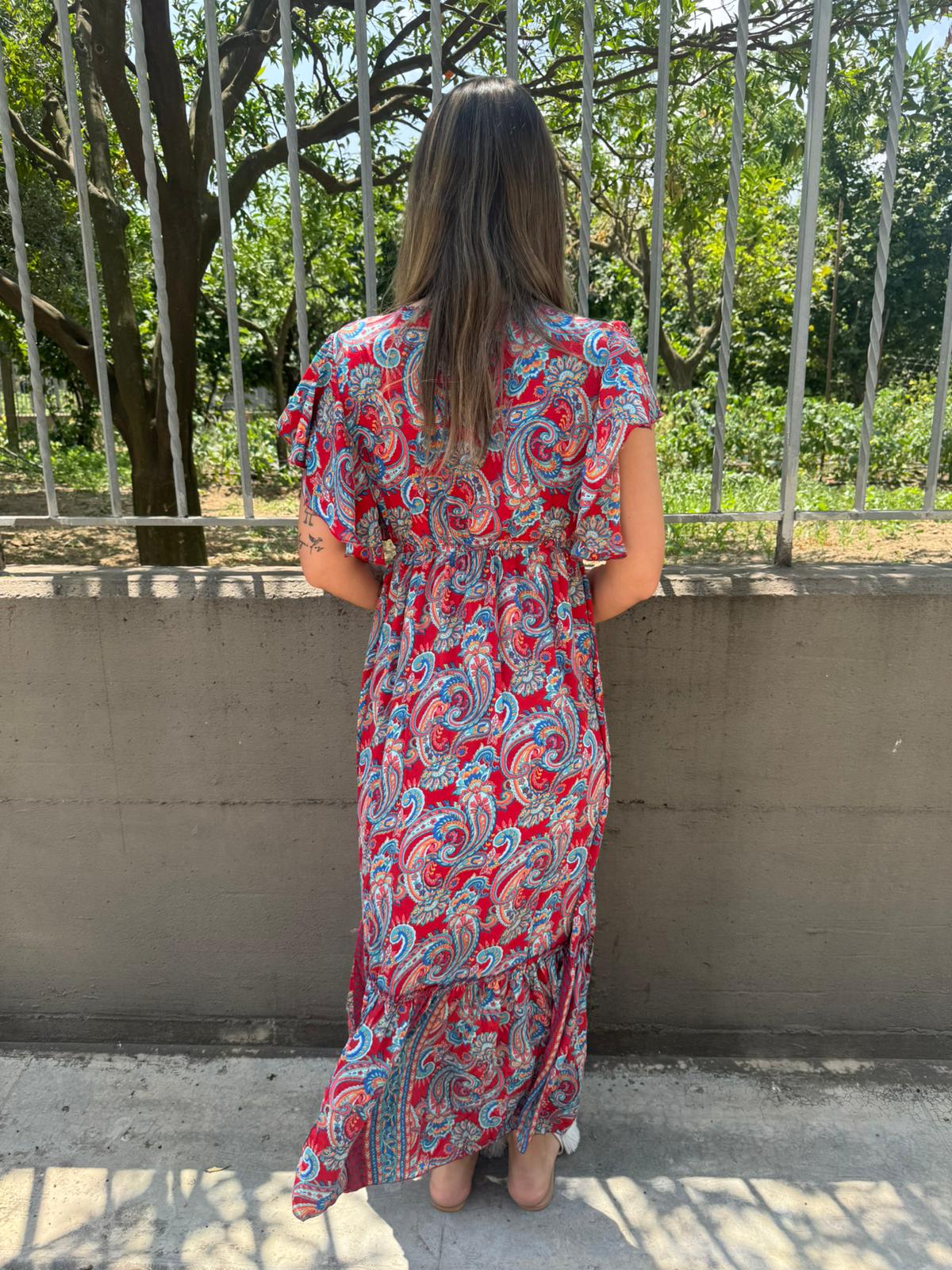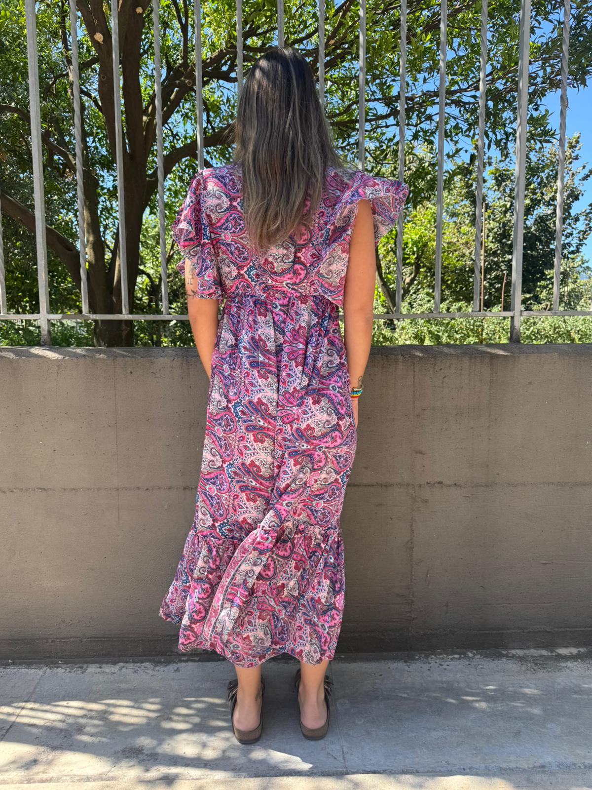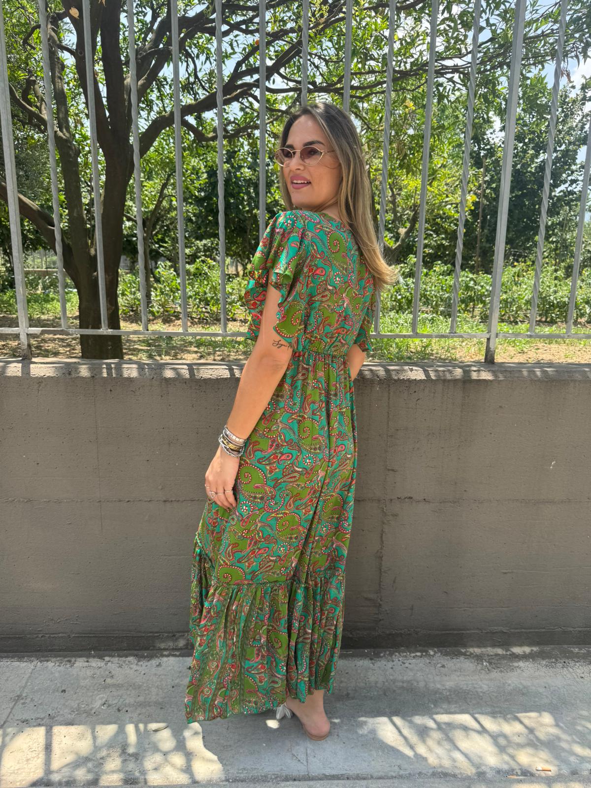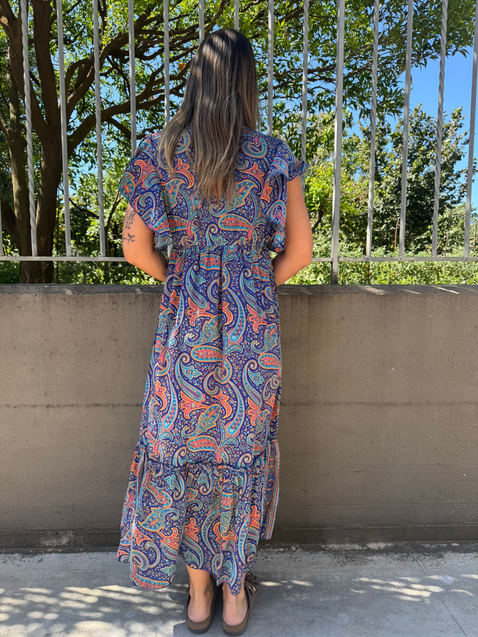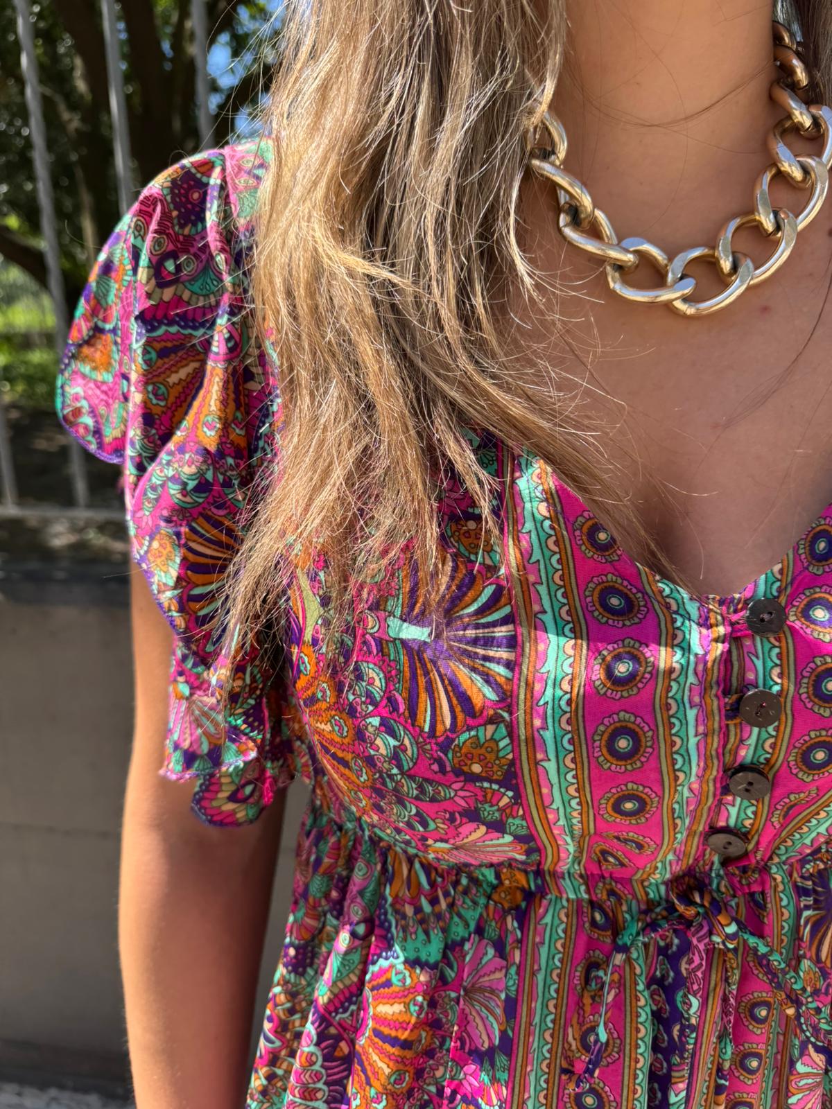 Vestito lungo indiano con bottoni e laccetto regolabile