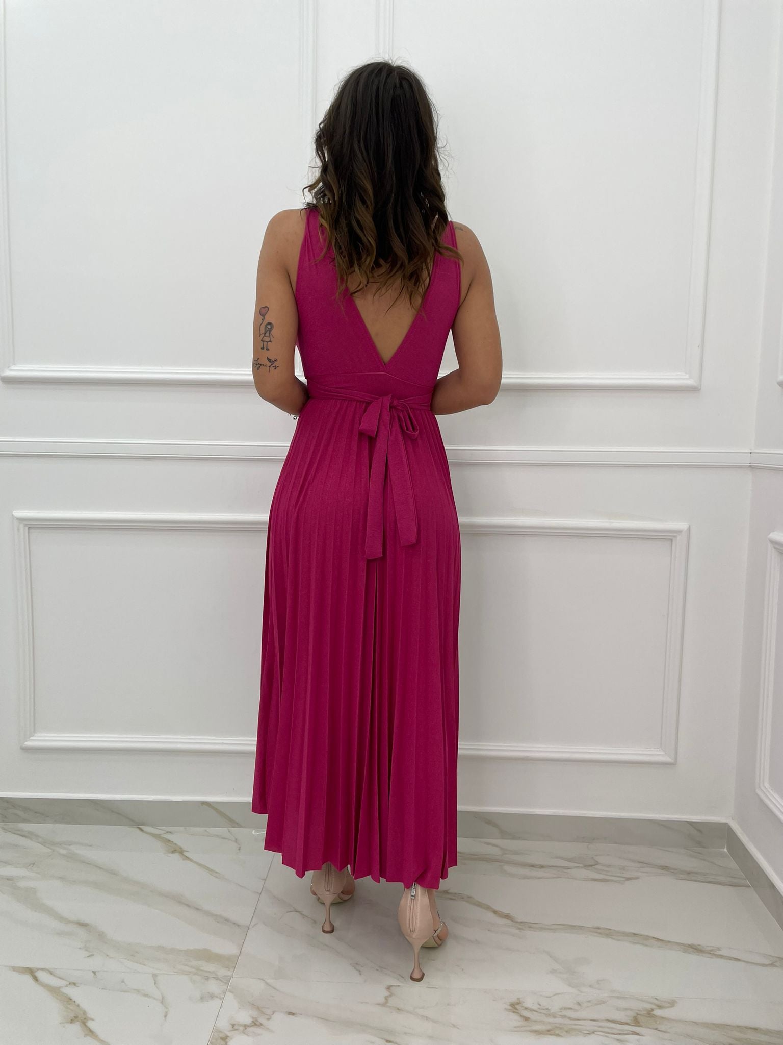 - Vestito lungo tinta unita