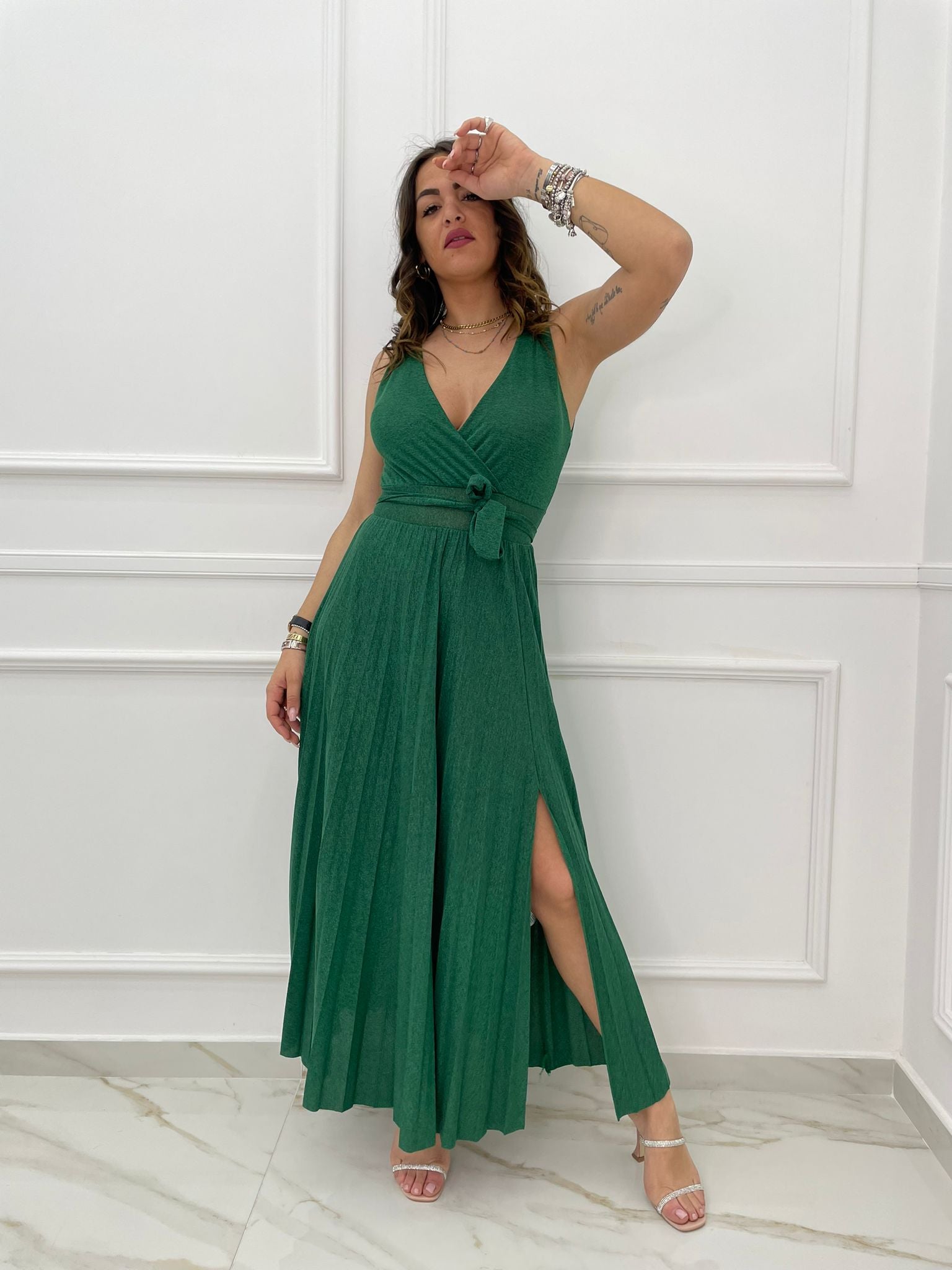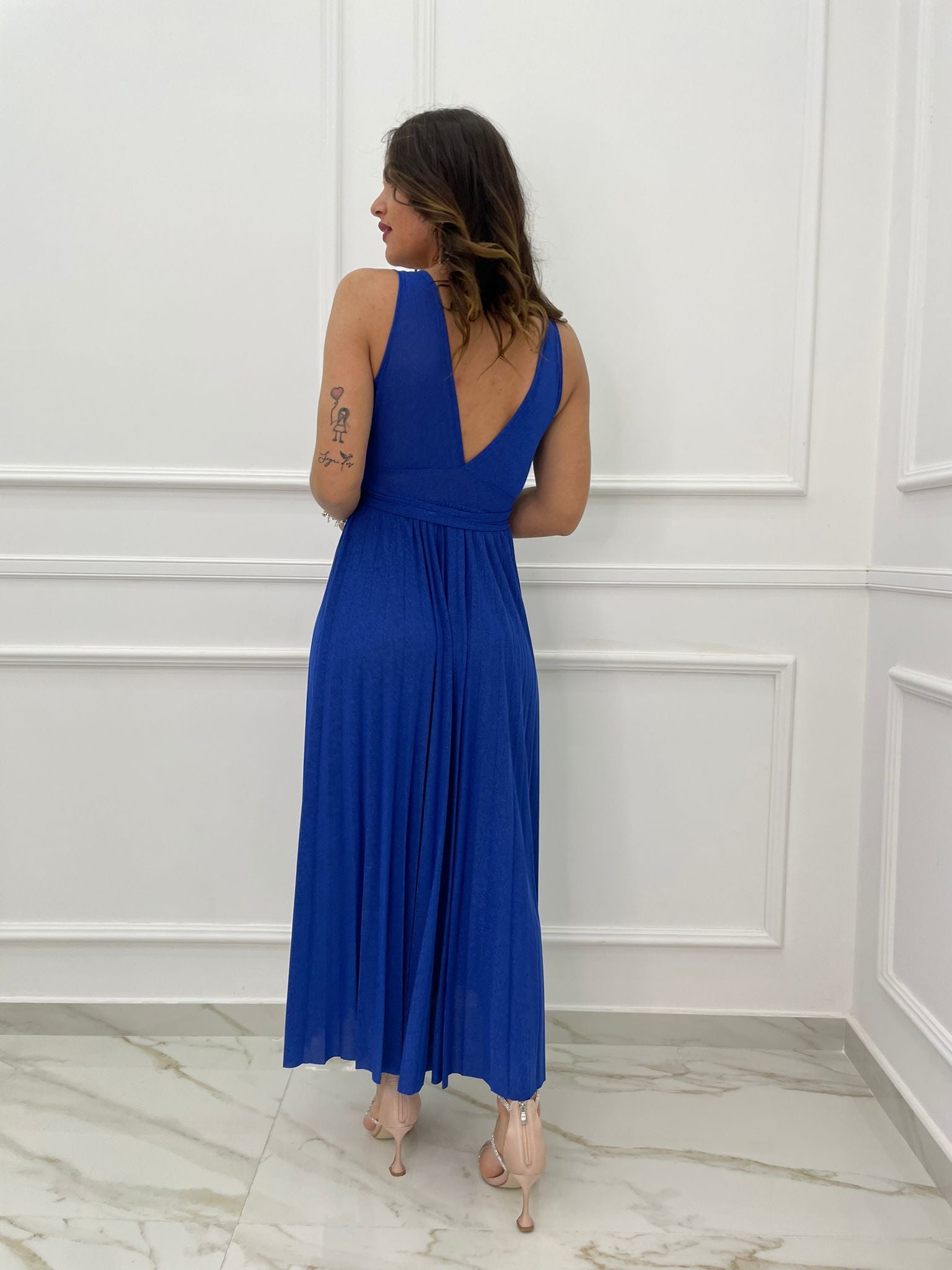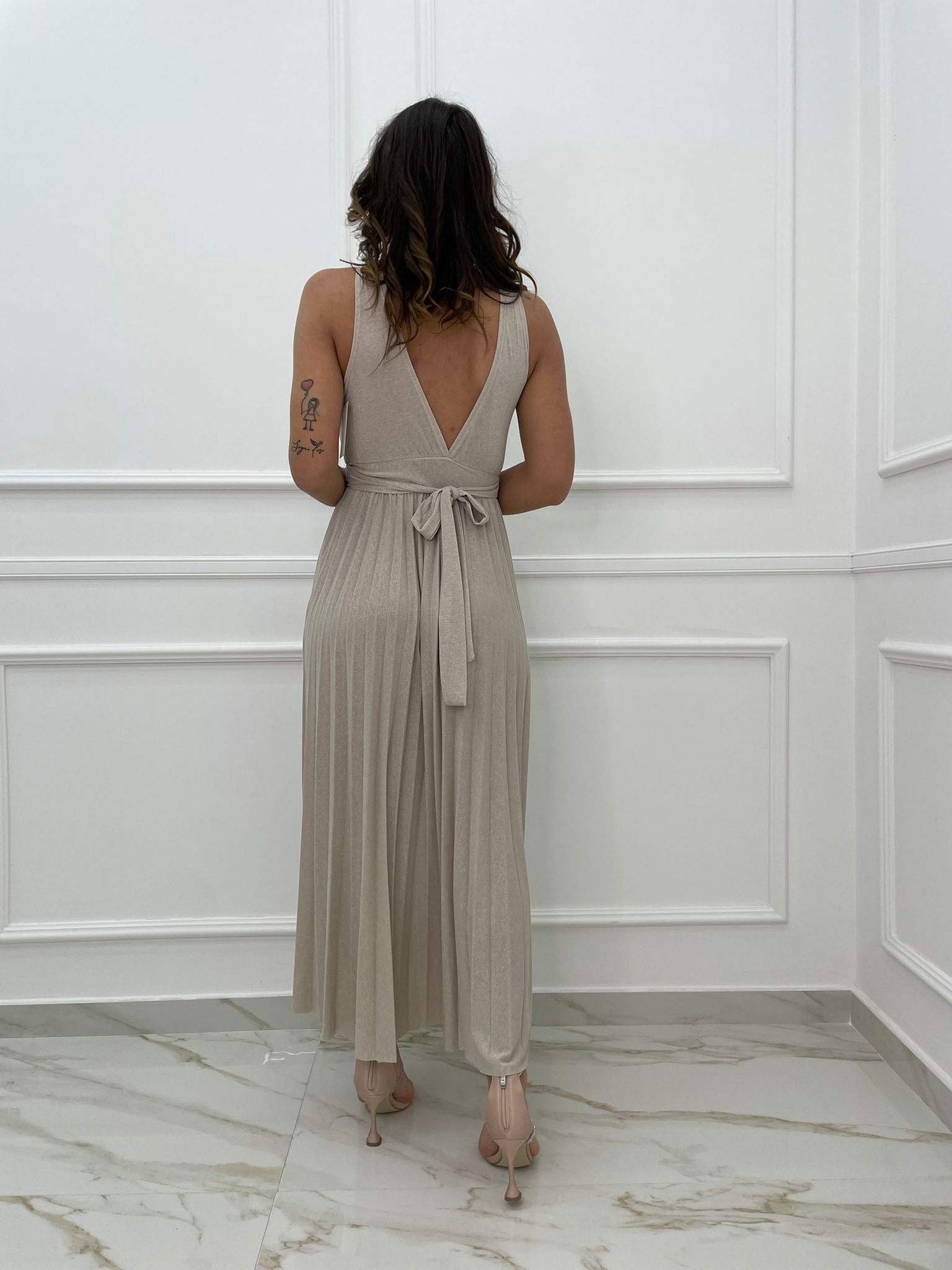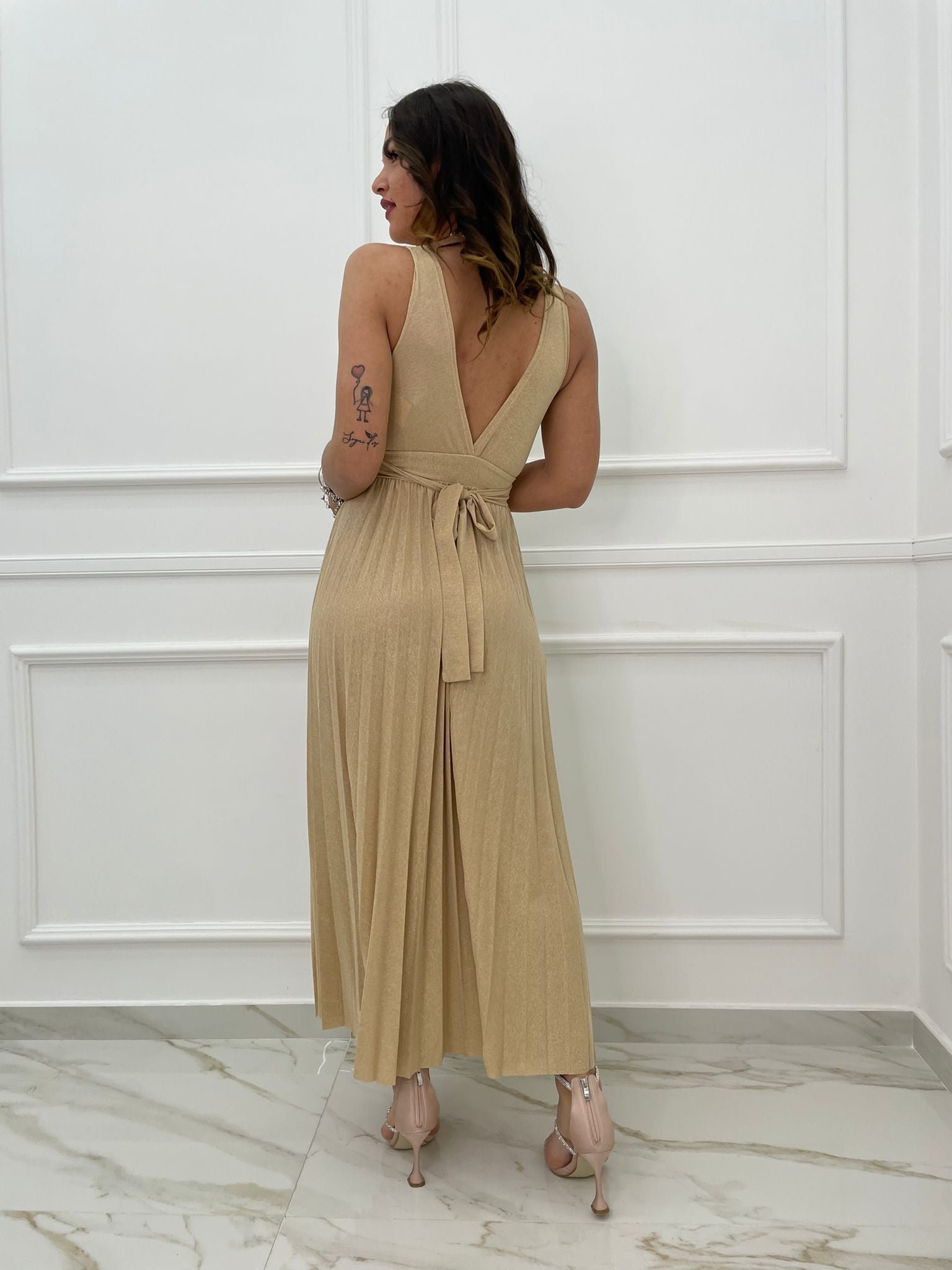 Vestito lungo lurex con scollo a V alla schiena