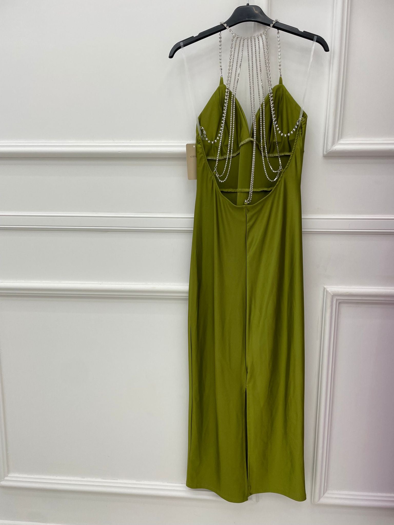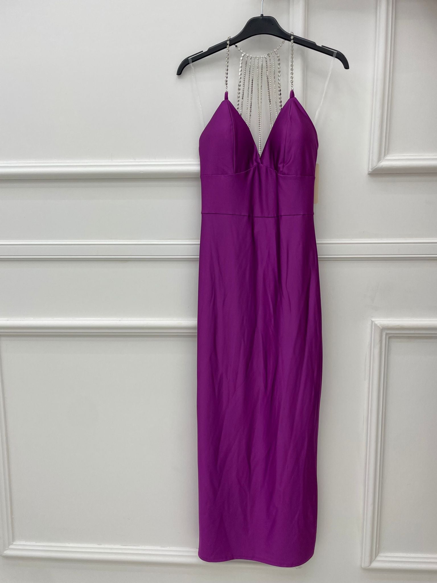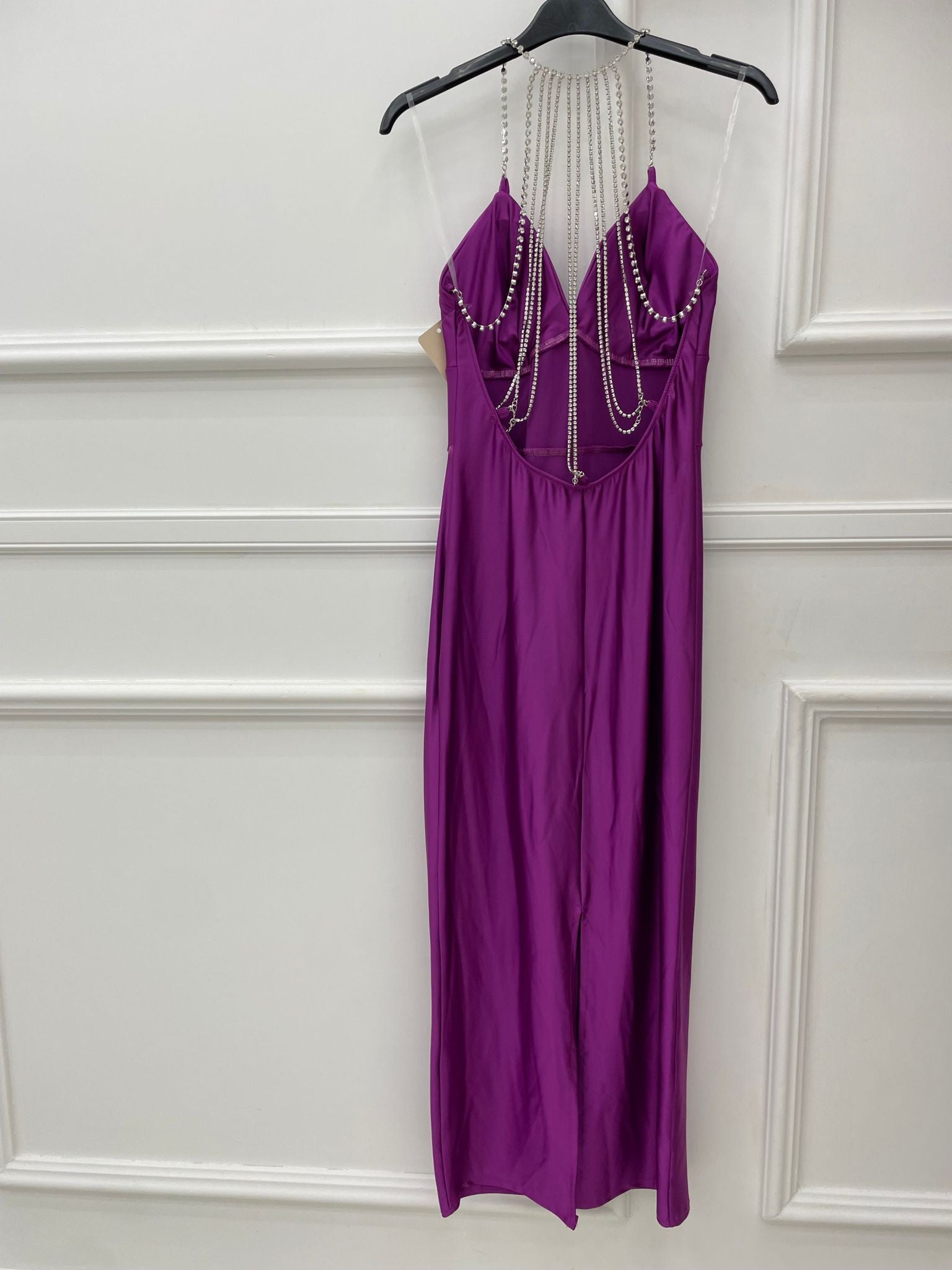 Vestito lungo tinta unita con swarovski alla schiena