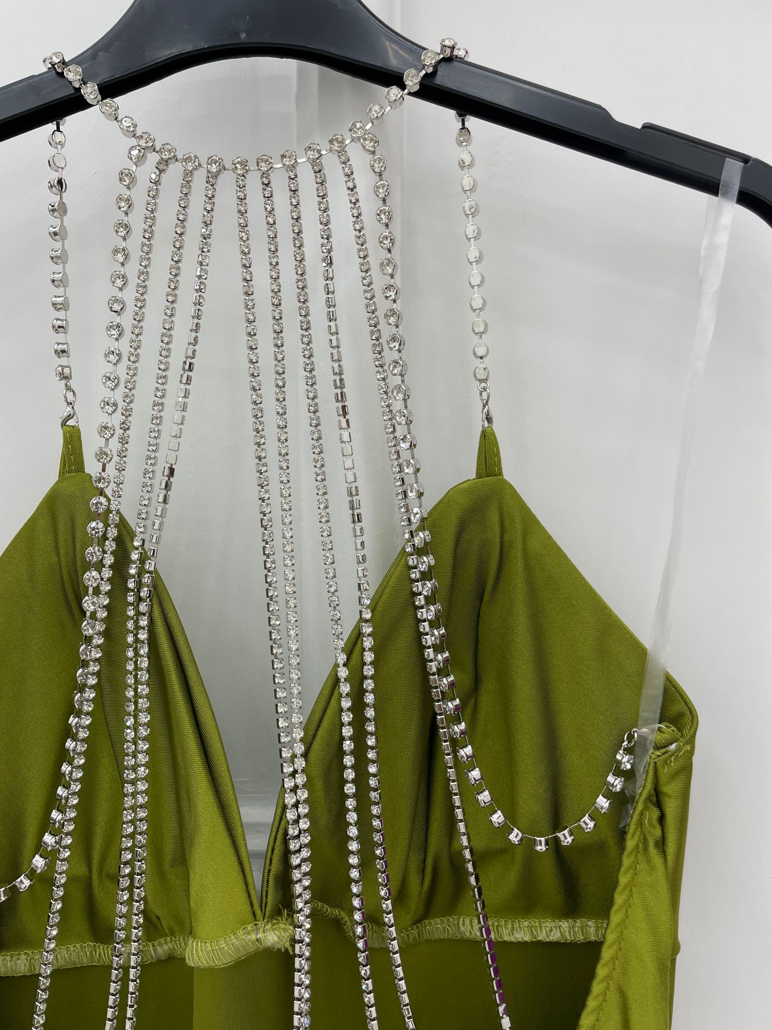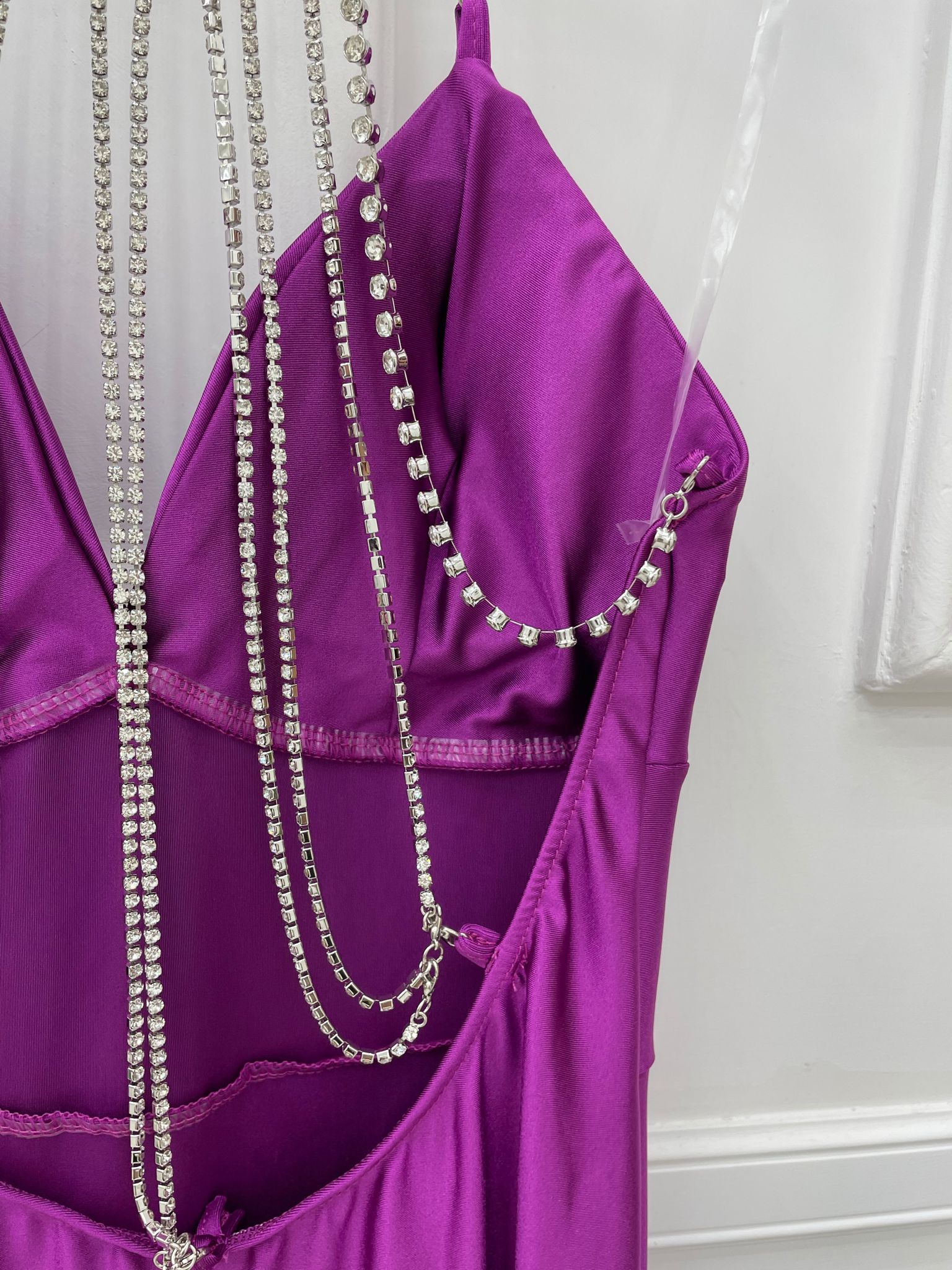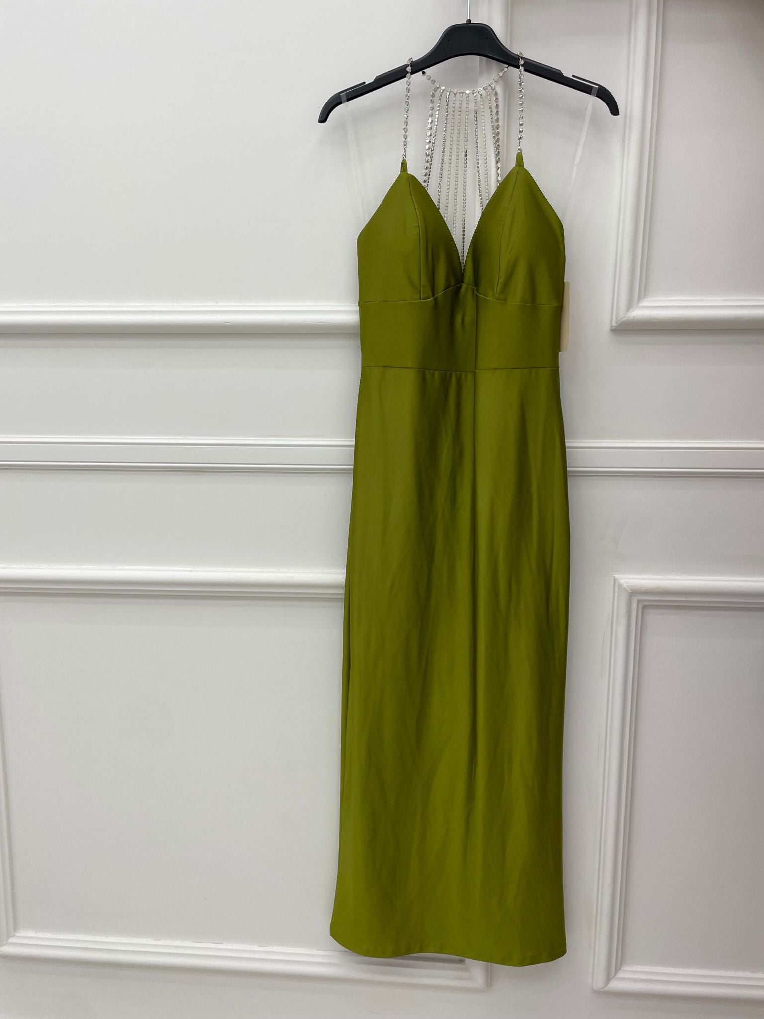 Vestito lungo tinta unita con swarovski alla schiena