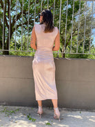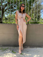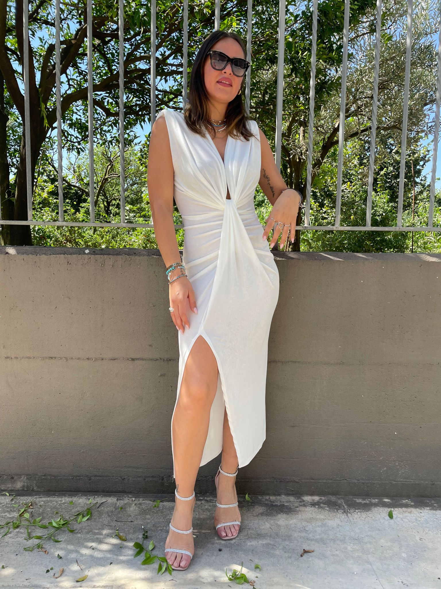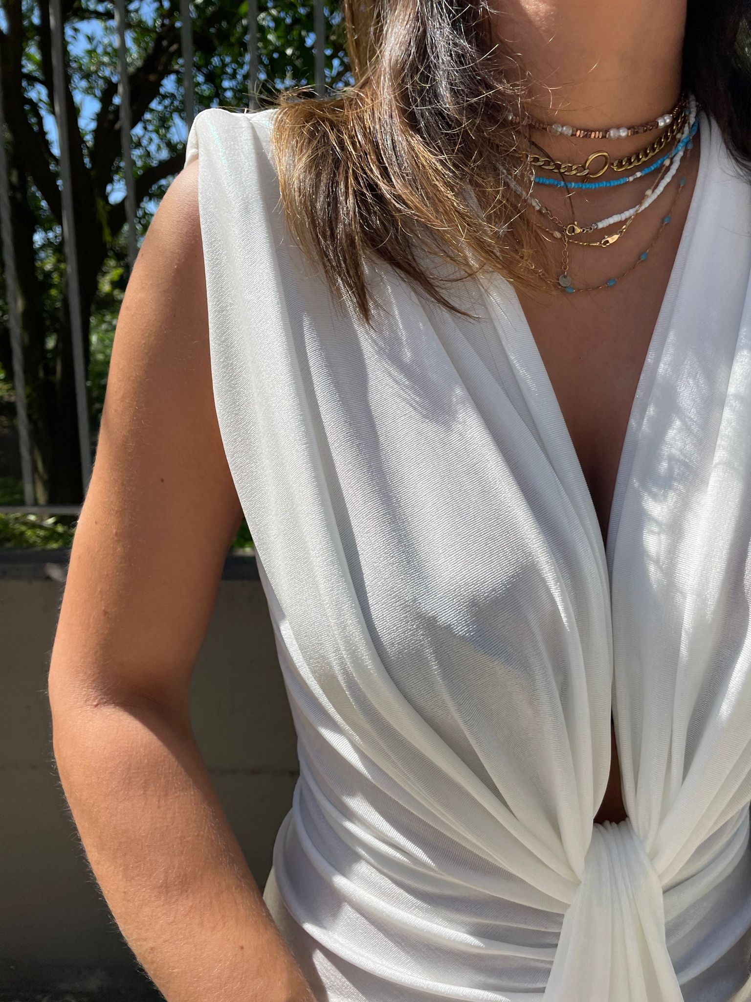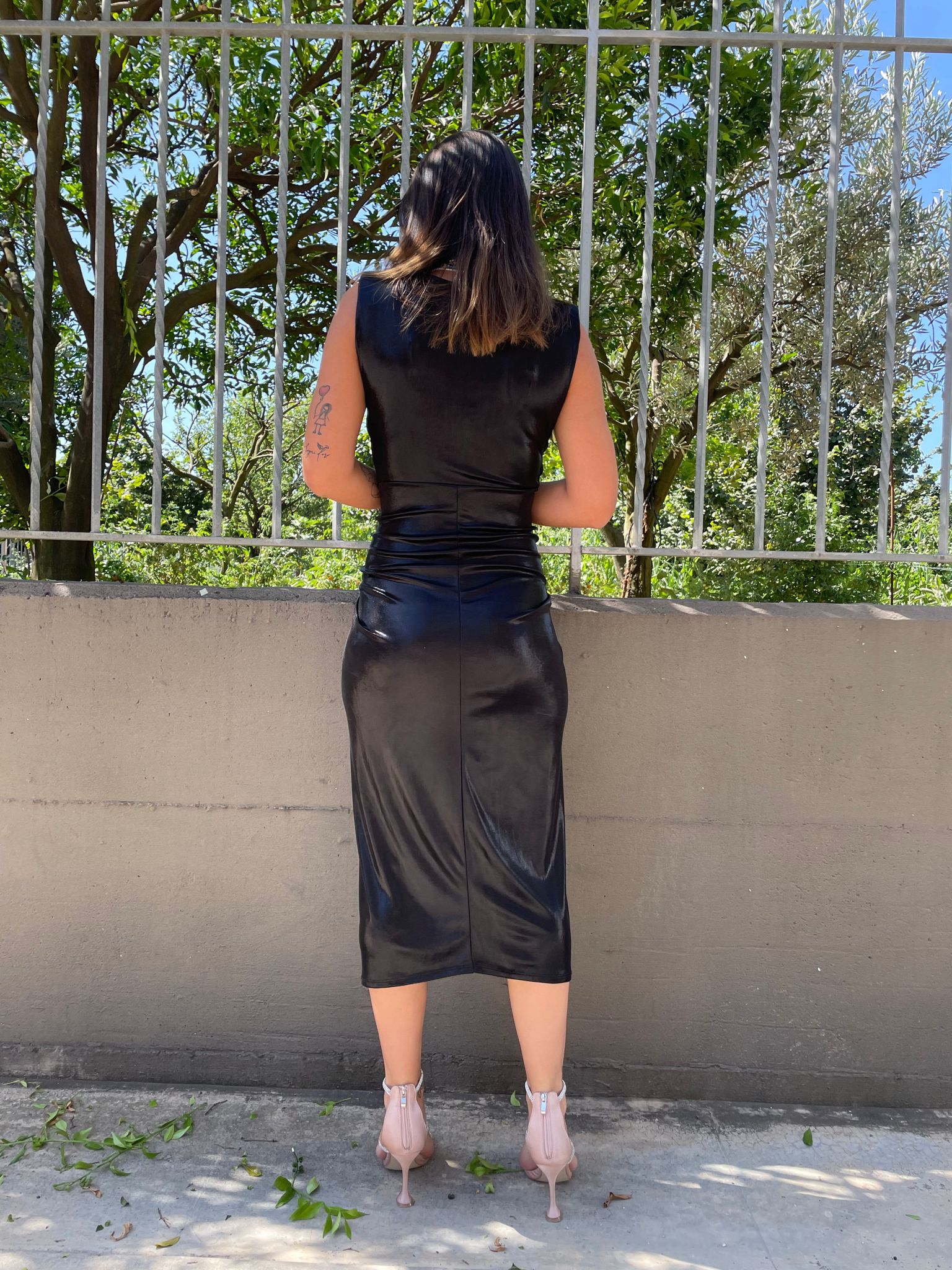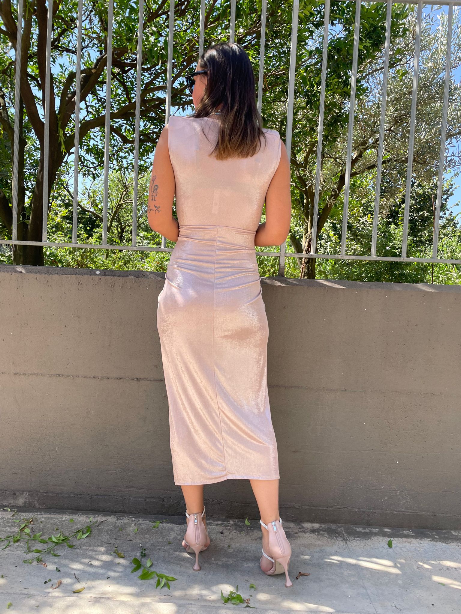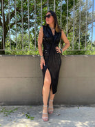 Vestito lurex tinta unita con scollo profondo
