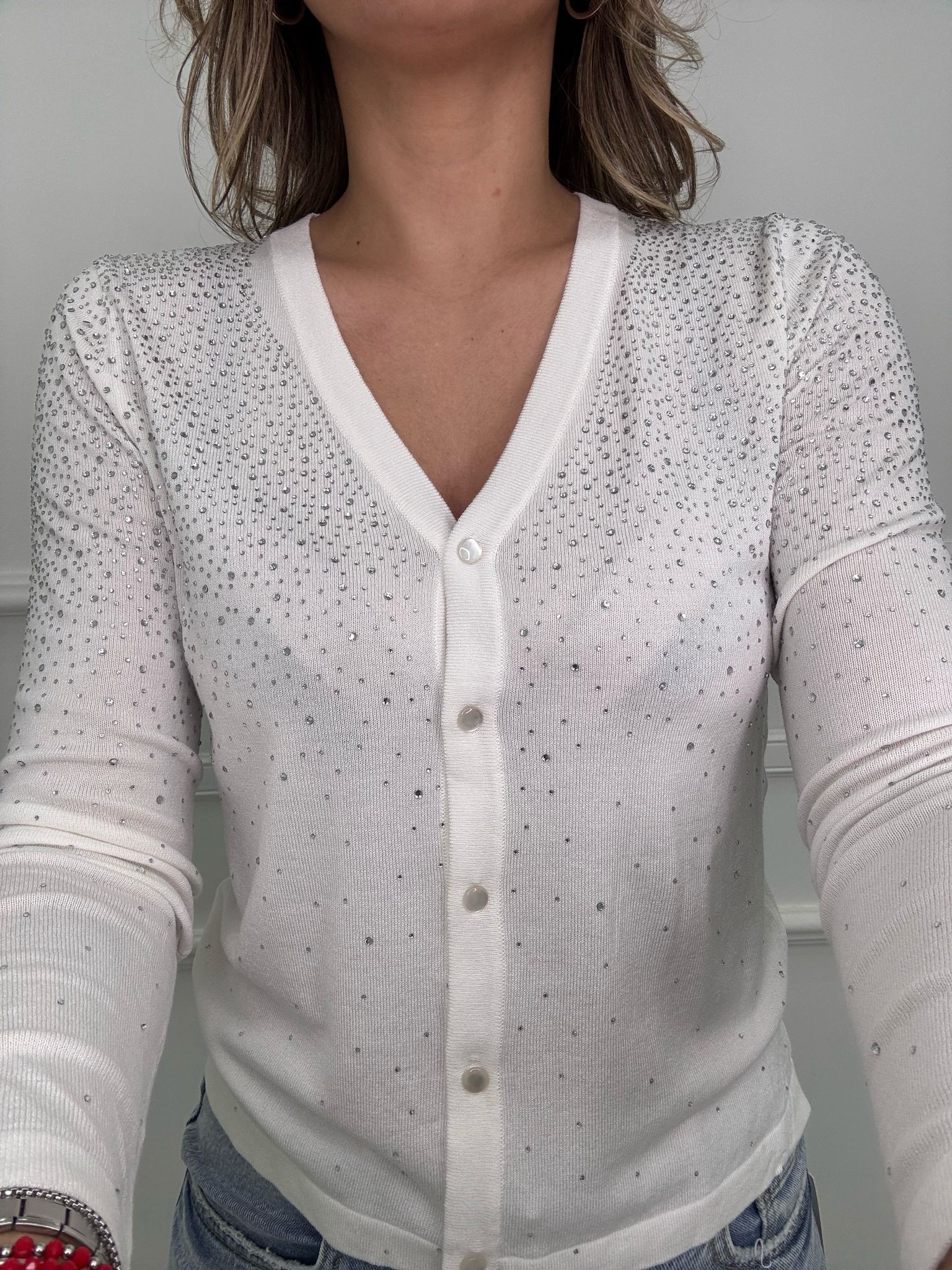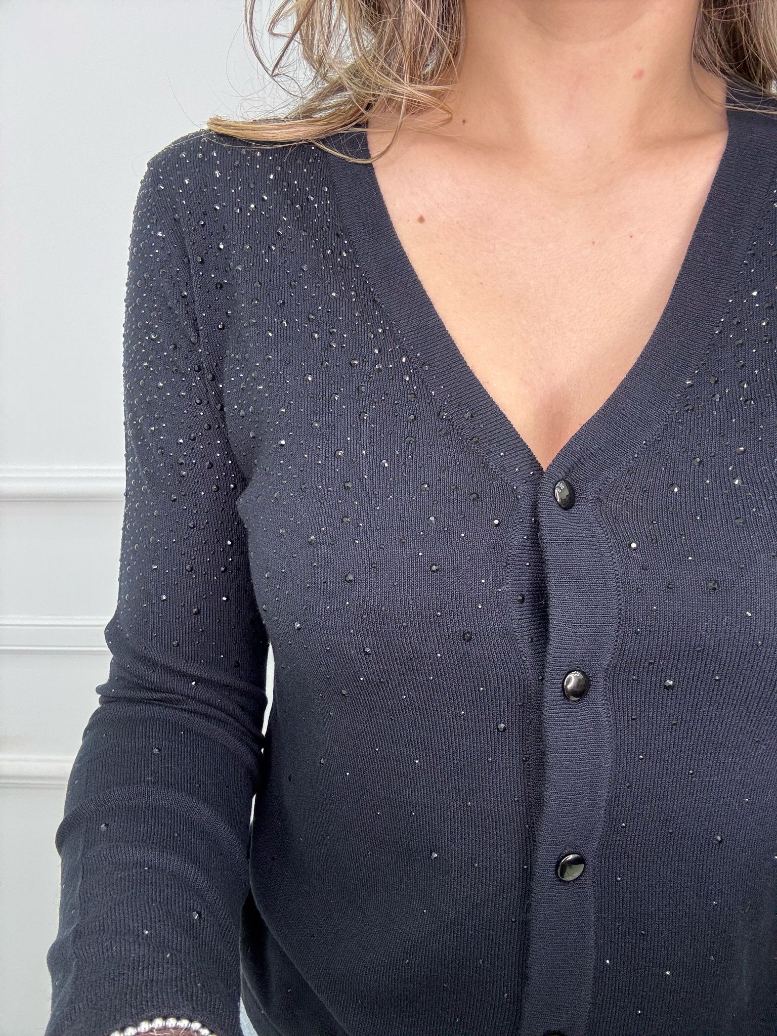 Cardigan in filo scollo a V con swarovski