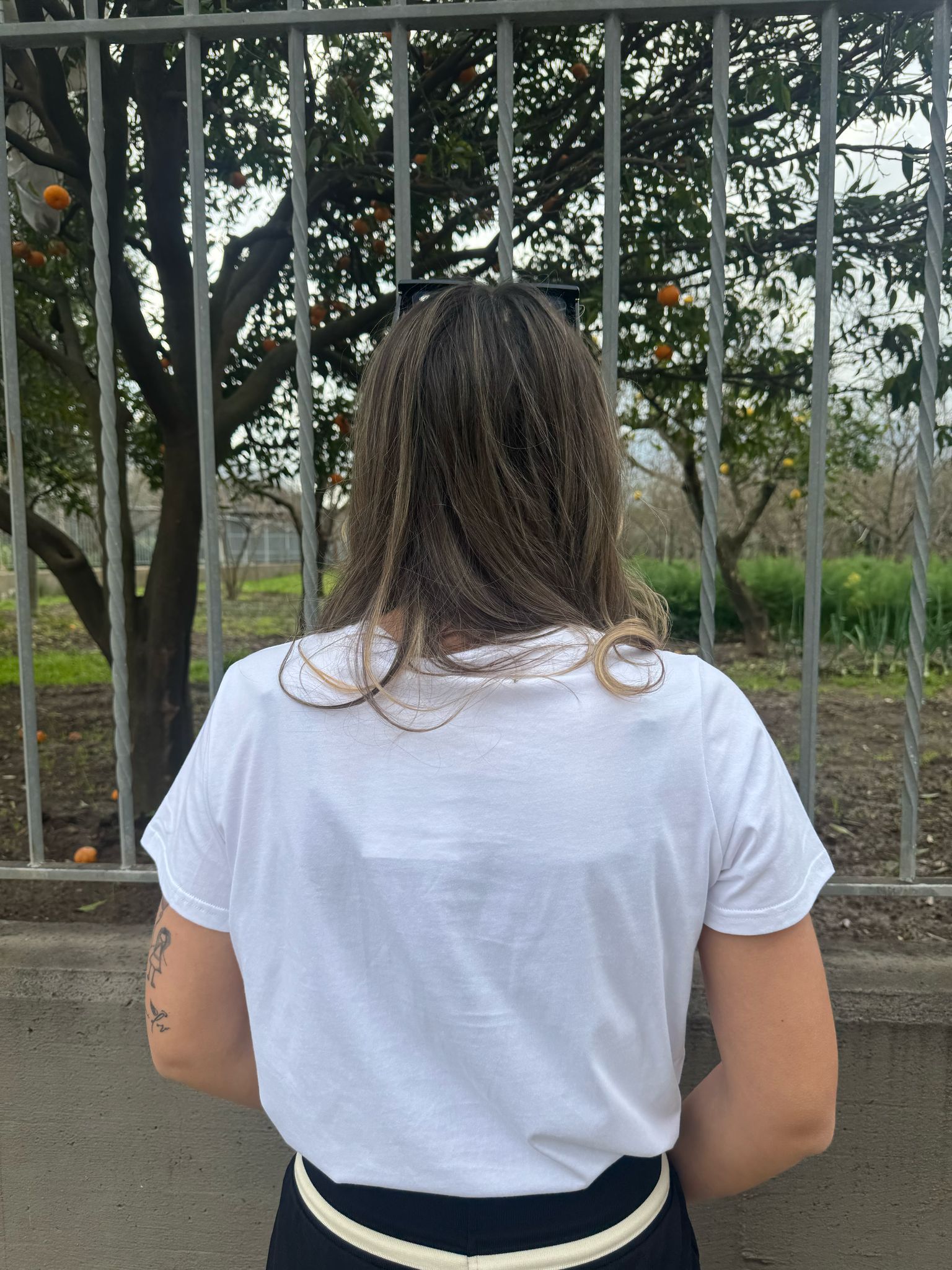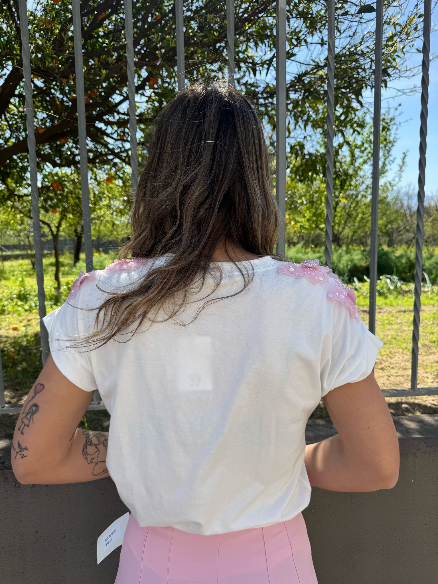 T-shirt con applicazioni colorate alle spalle