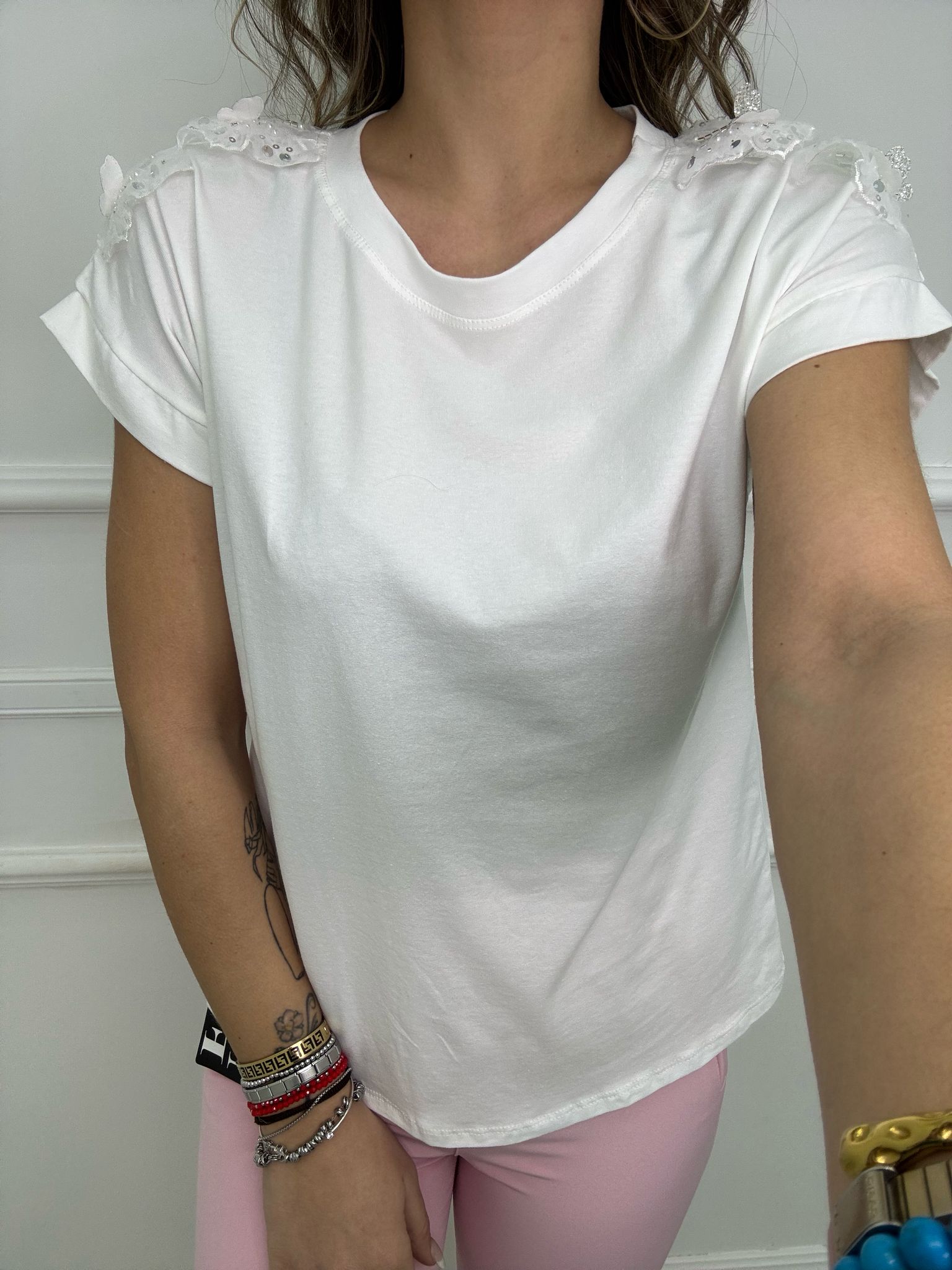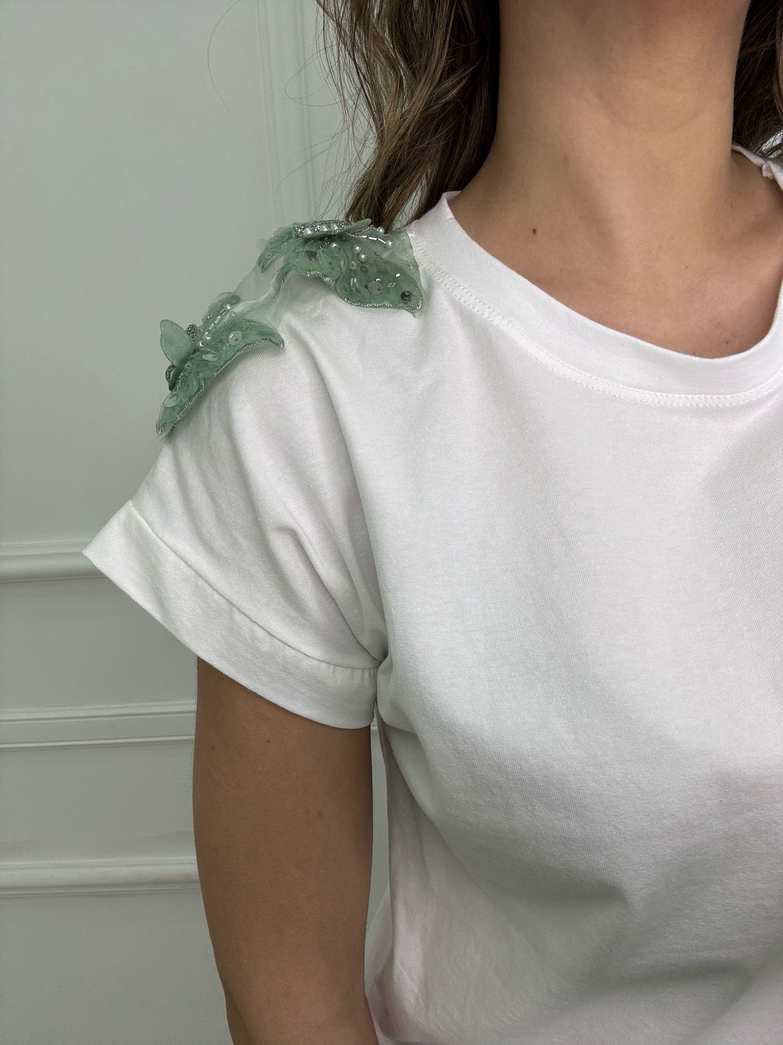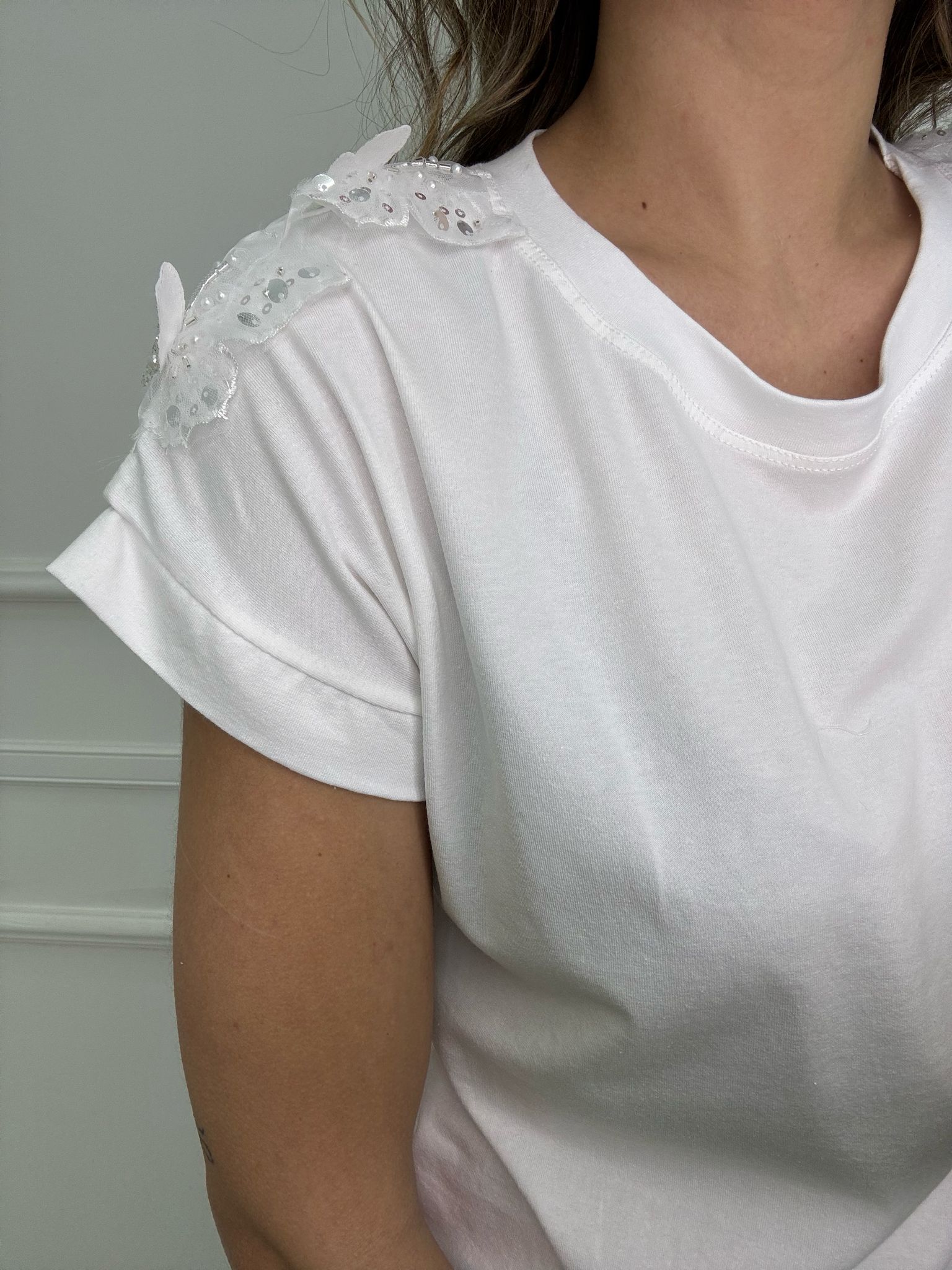 T-shirt con applicazioni alla spalla