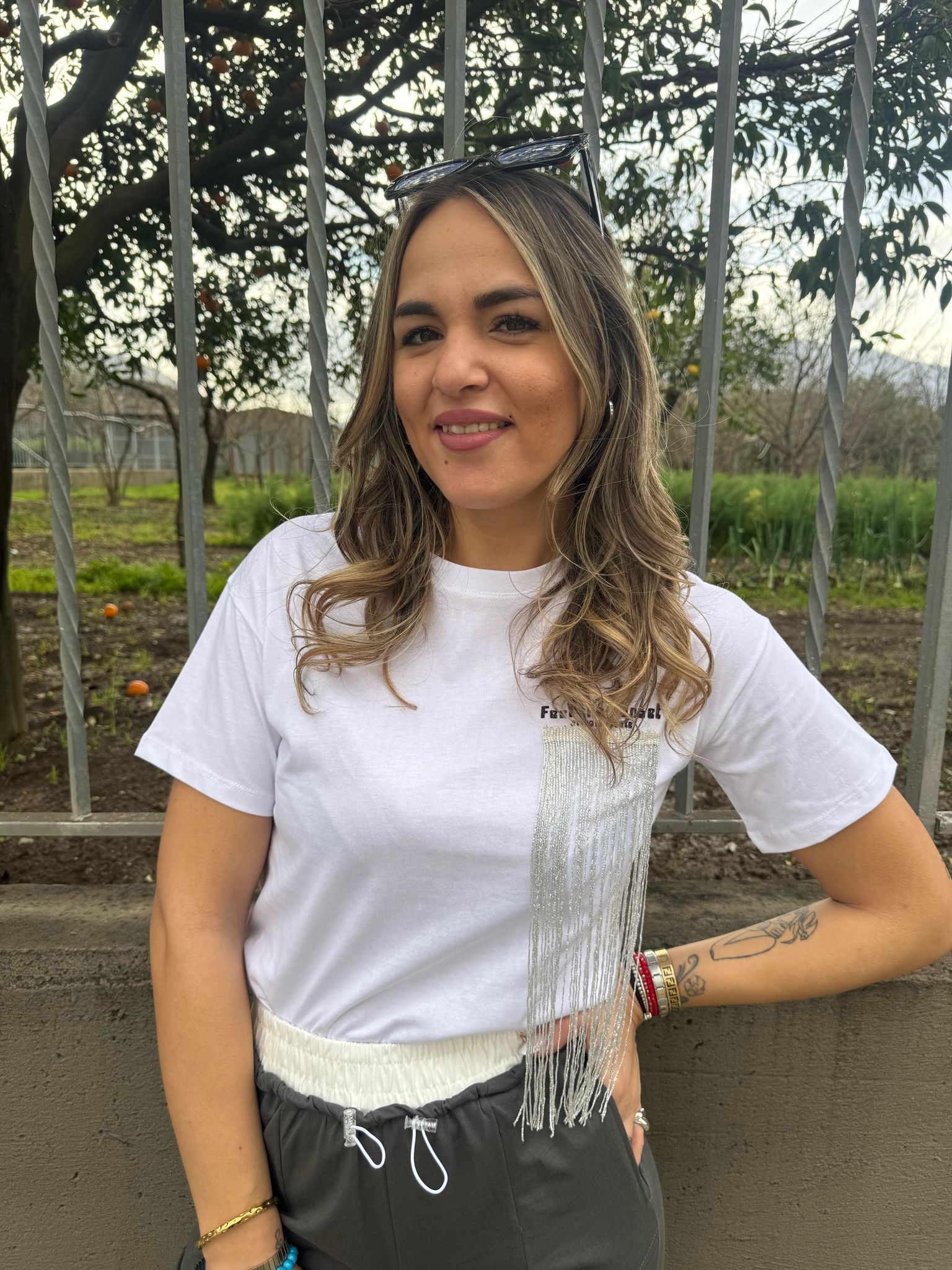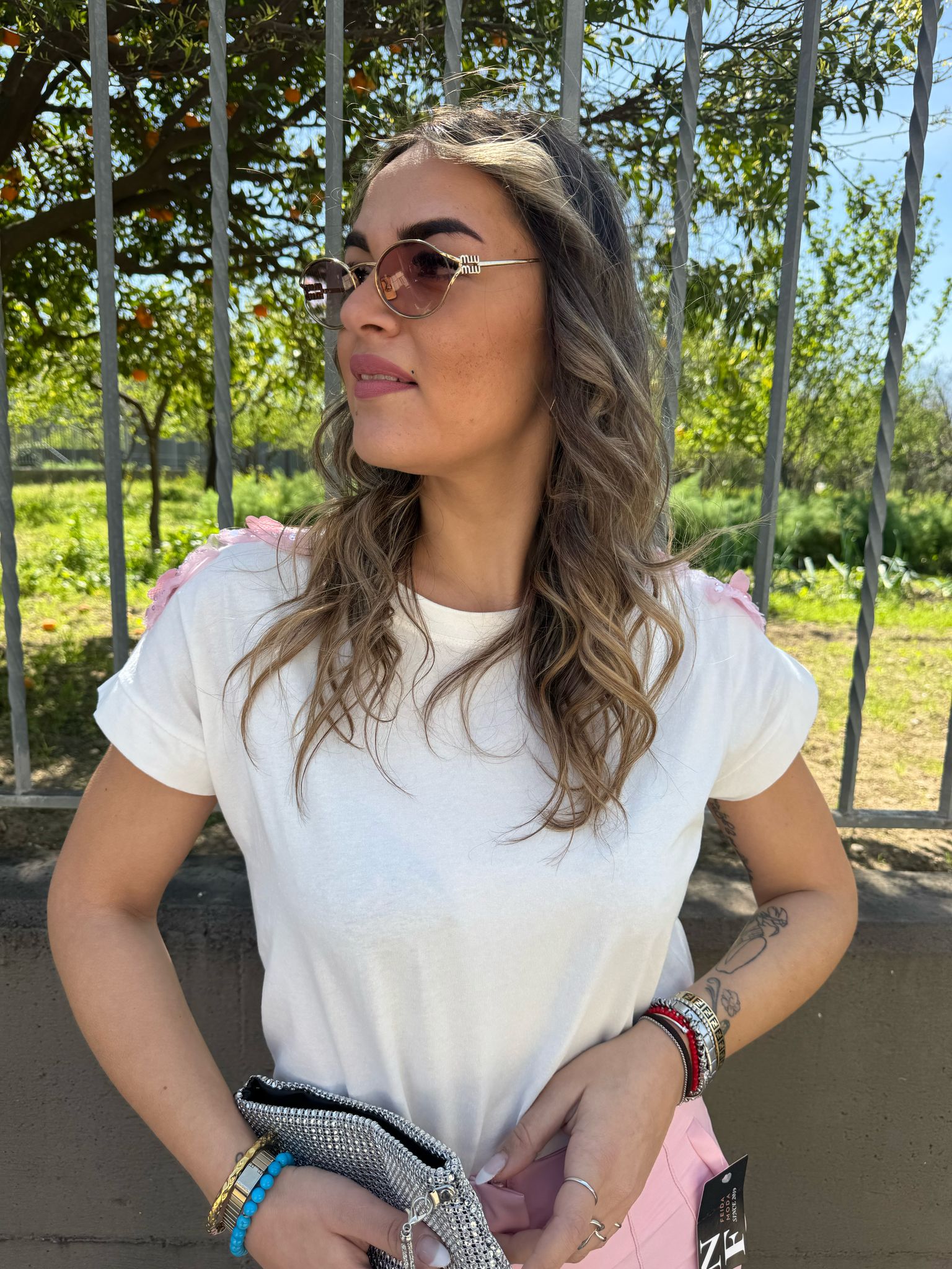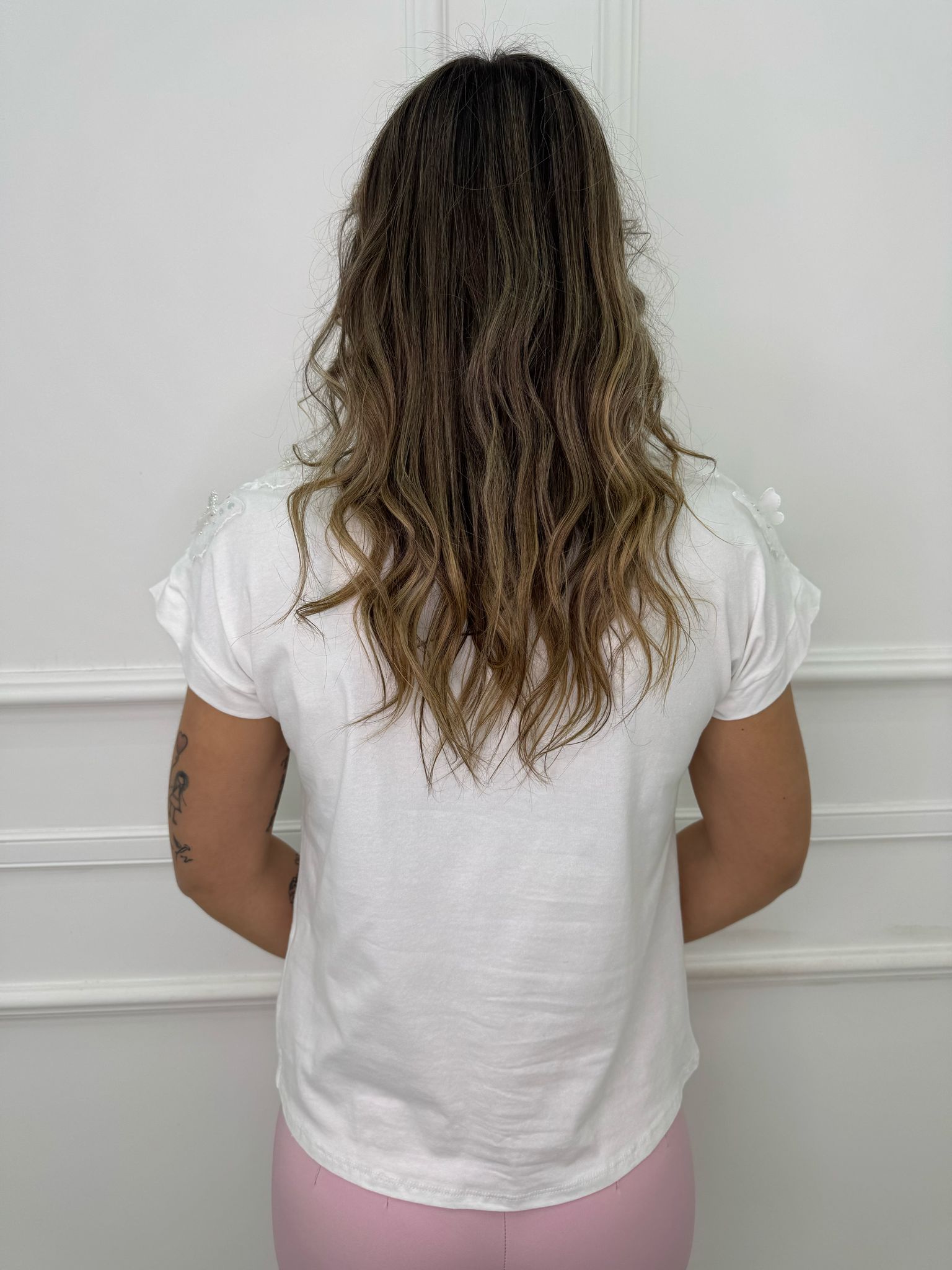 T-shirt con applicazioni alla spalla