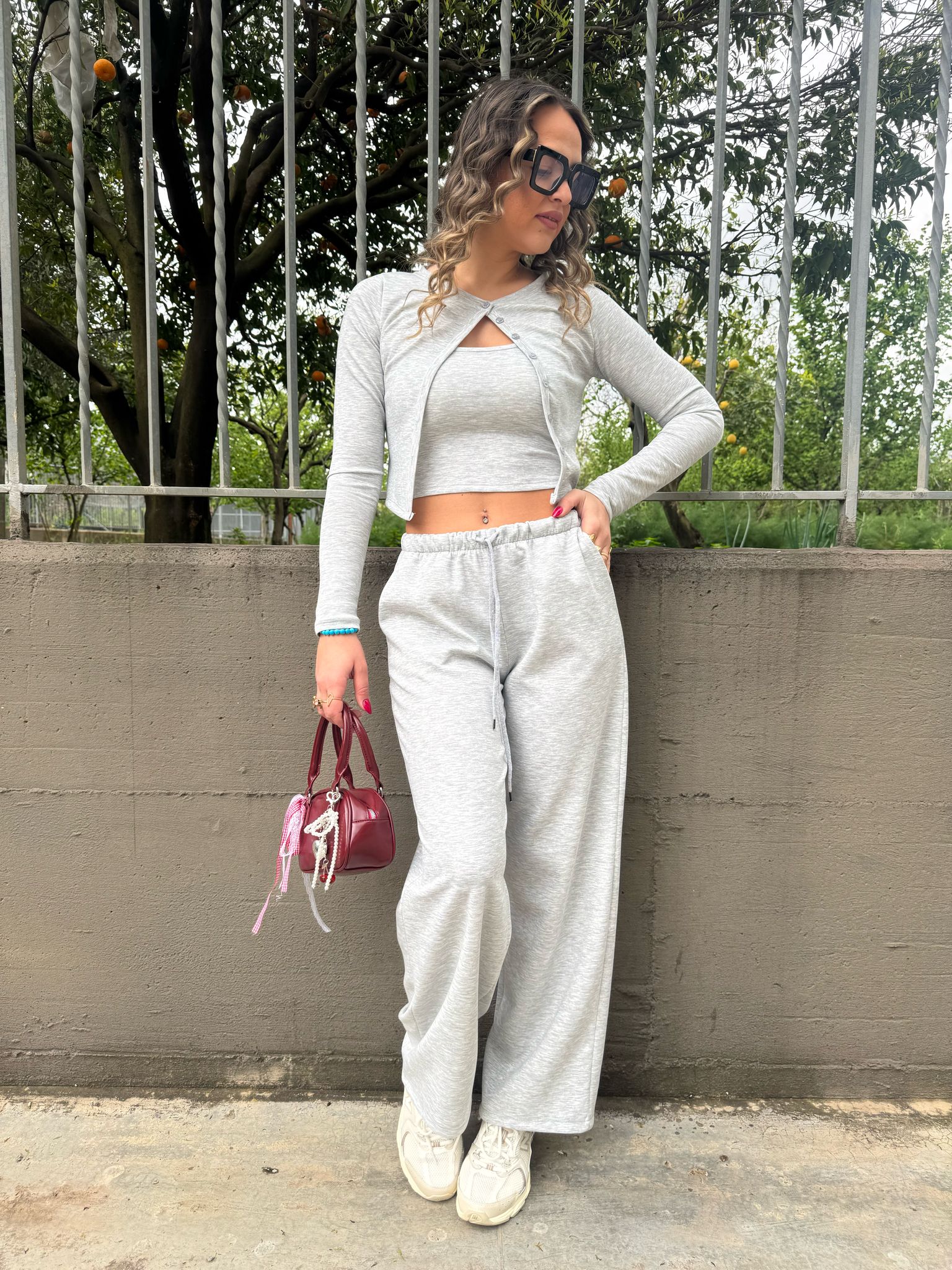 Coordinato tuta 3 pezzi con cardigan crop