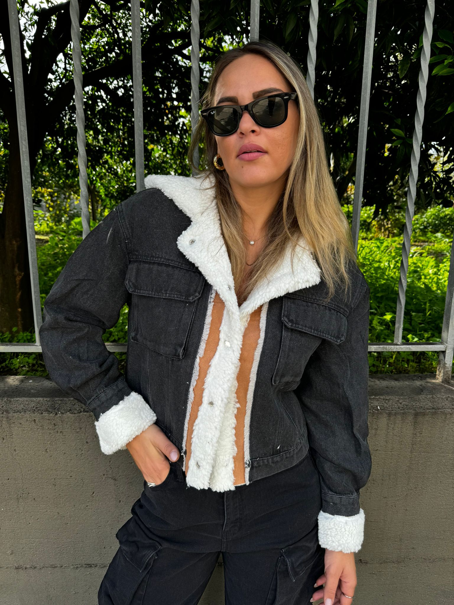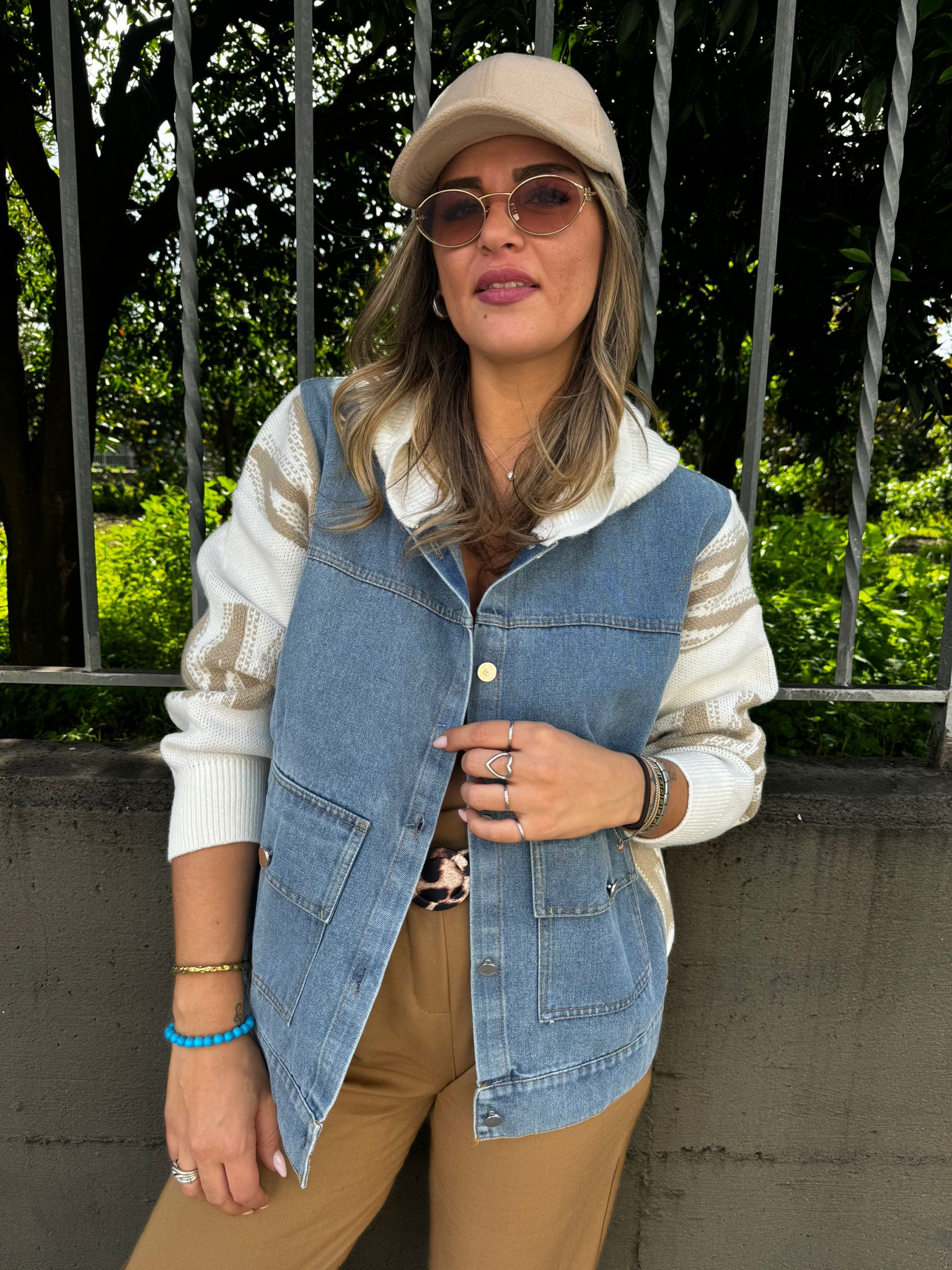 Cardigan giubbino con parte avanti in jeans