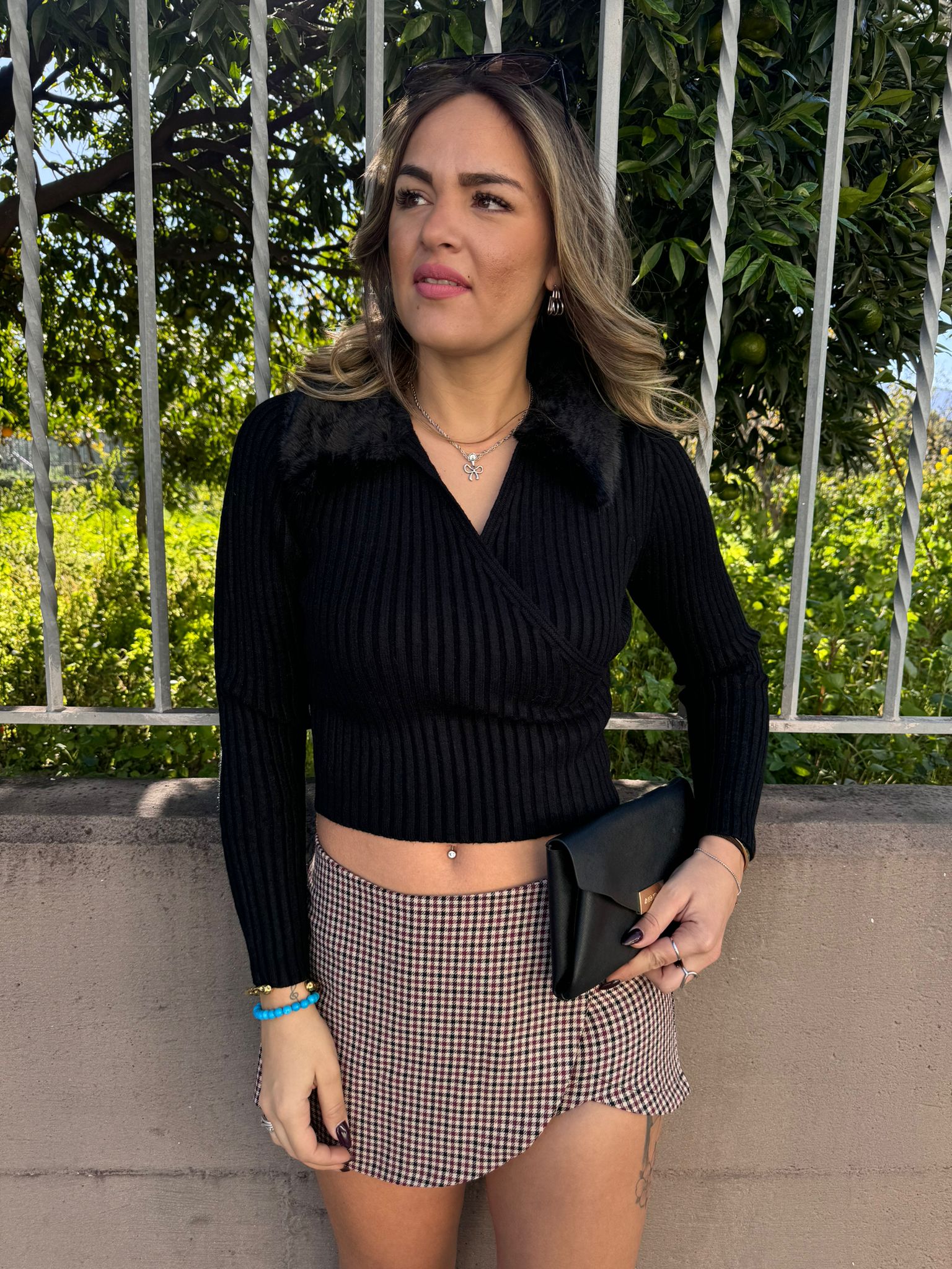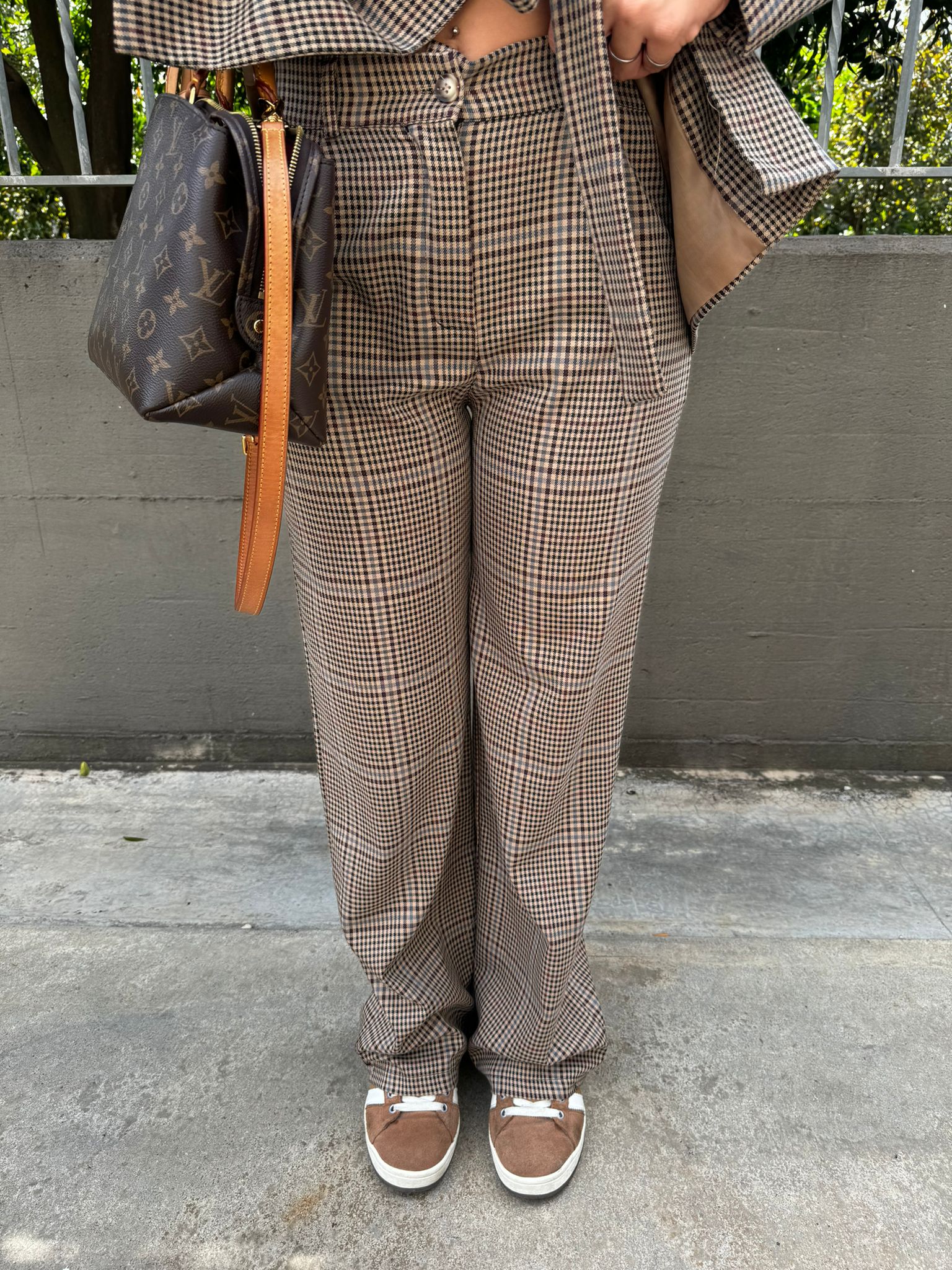Tailleur 2 pezzi tartan con pantalone e giacca con cintura