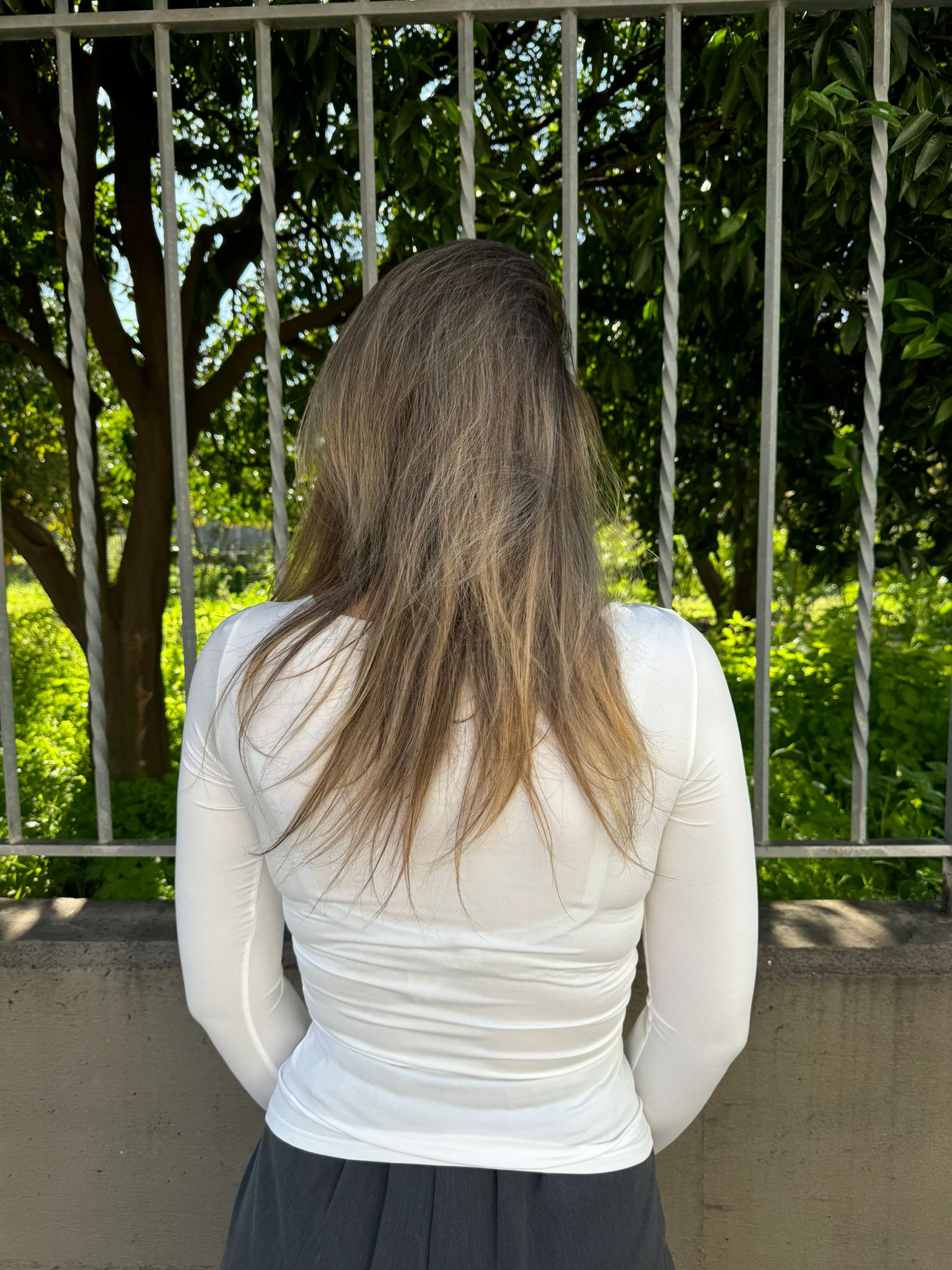 Maglia in lycra tinta unita con drappeggio