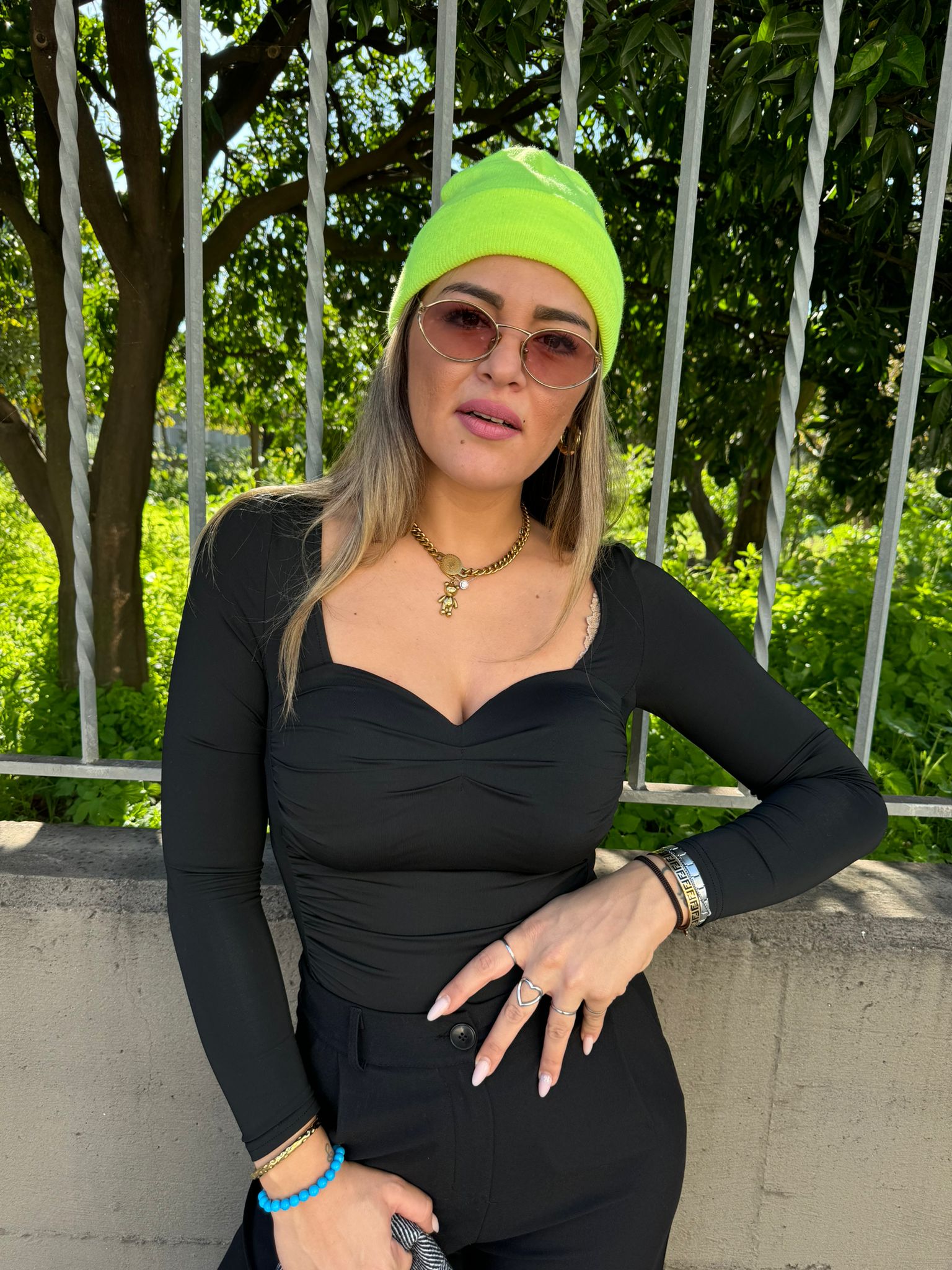 Body nero mezzo collo con swarovski