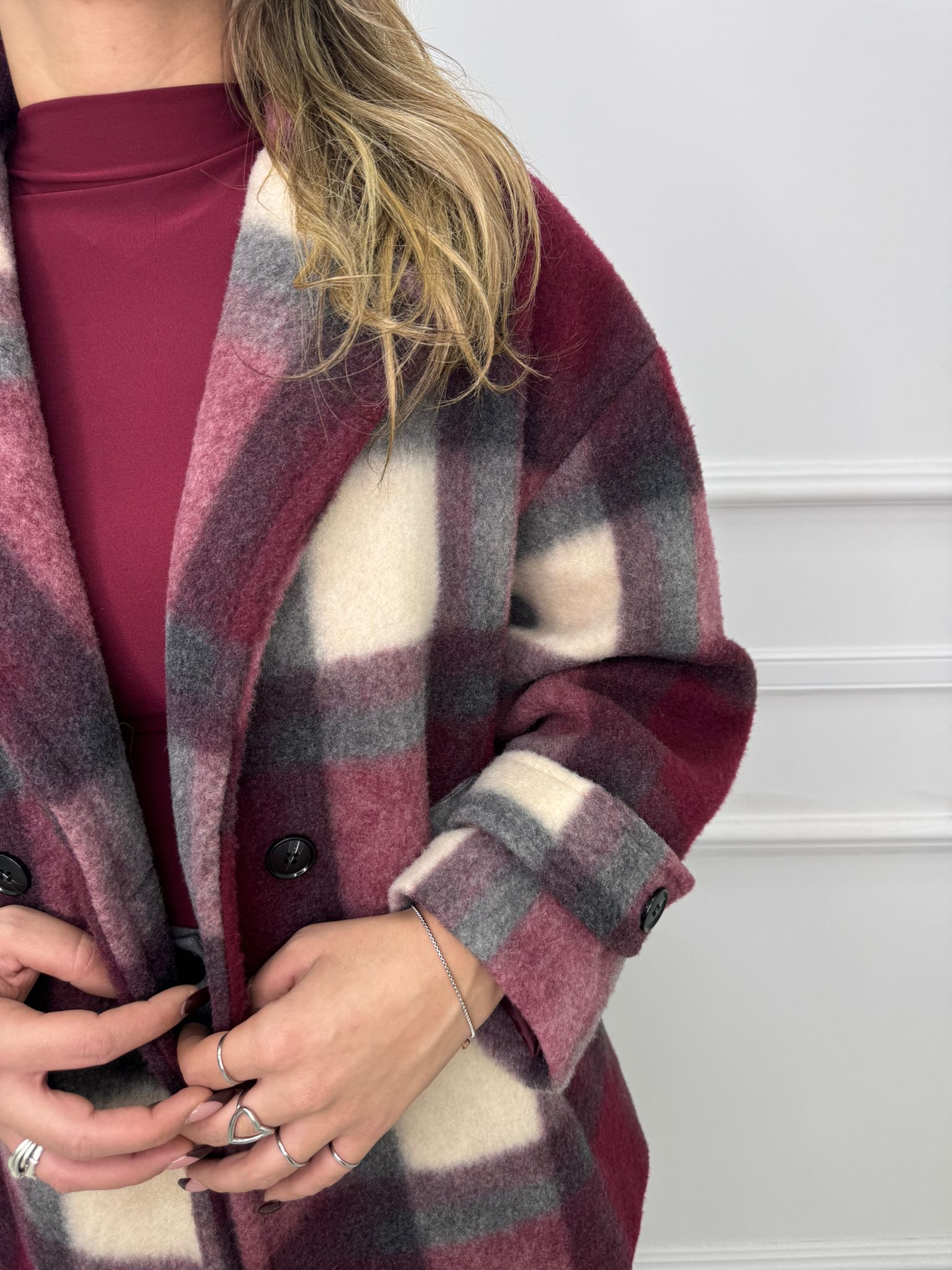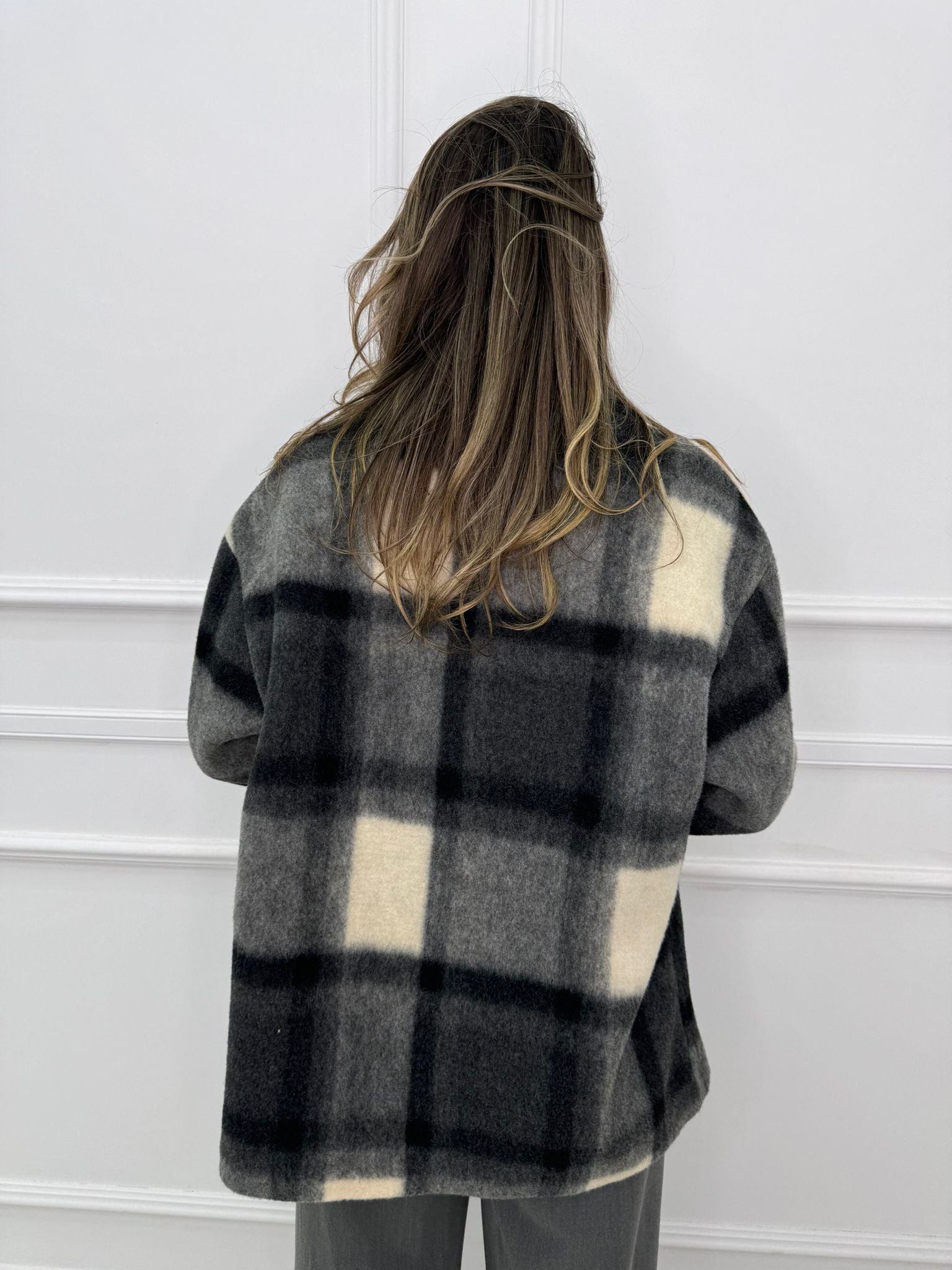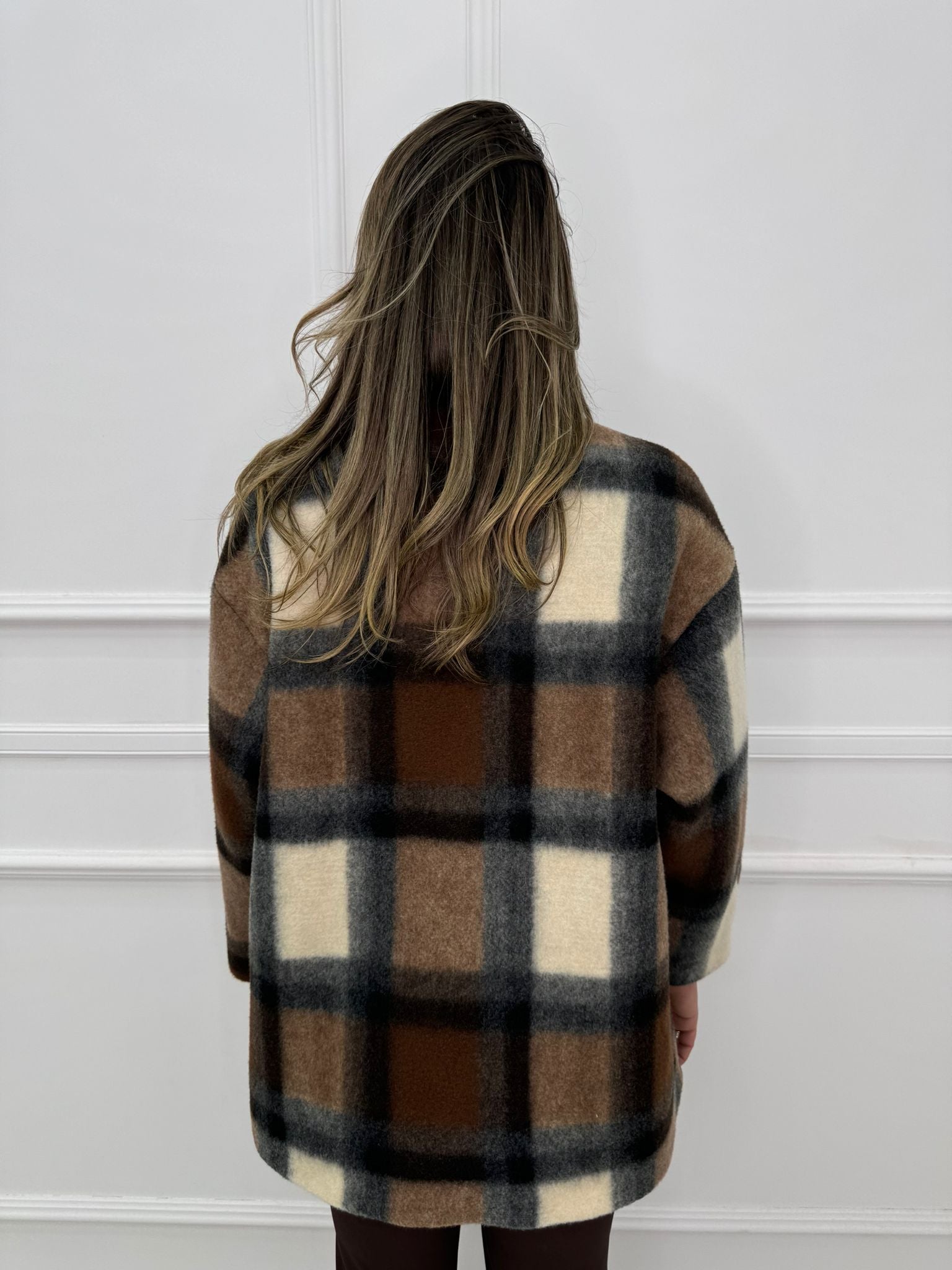 Cappotto lungo modello over fantasia quadrettini