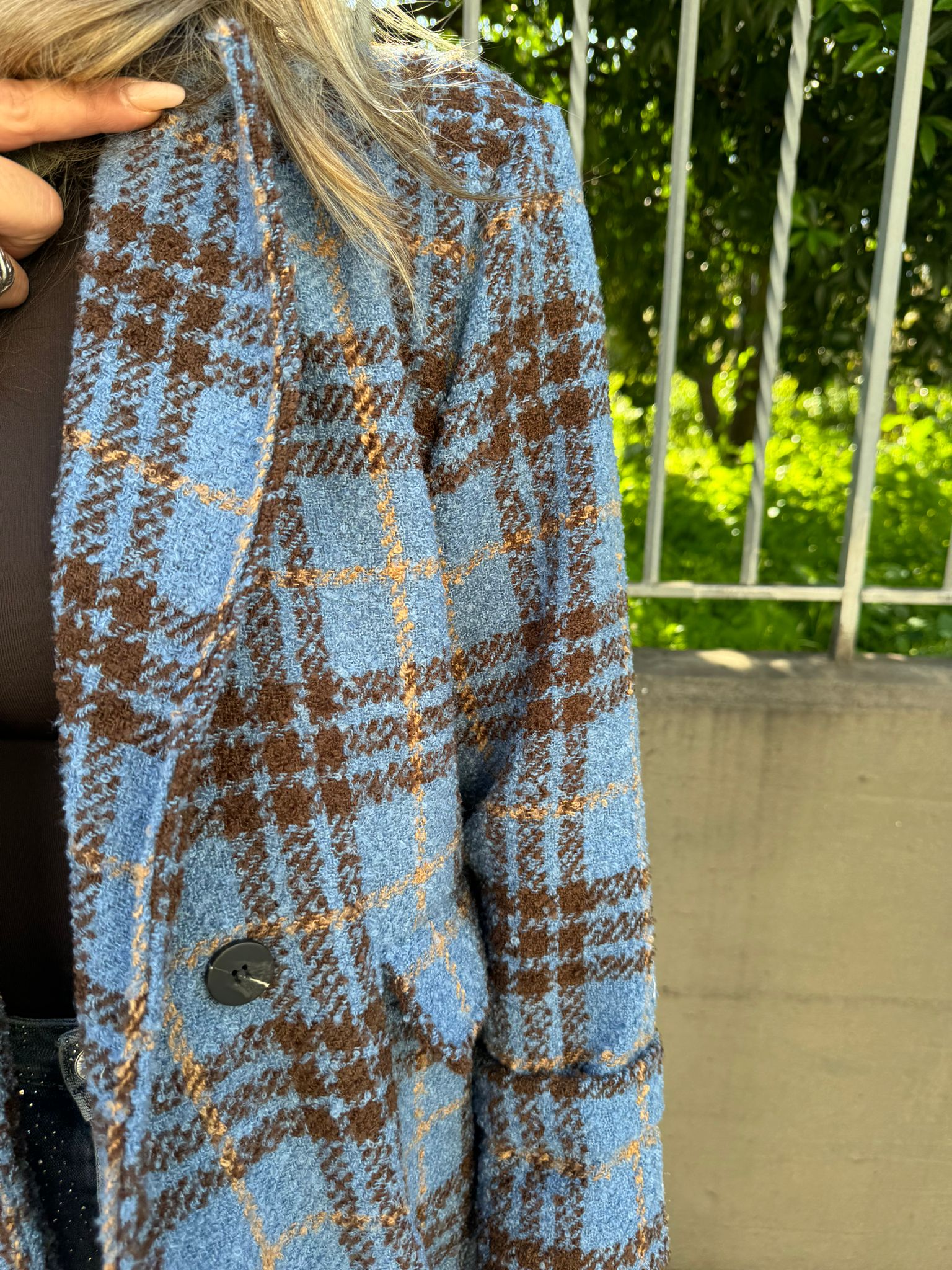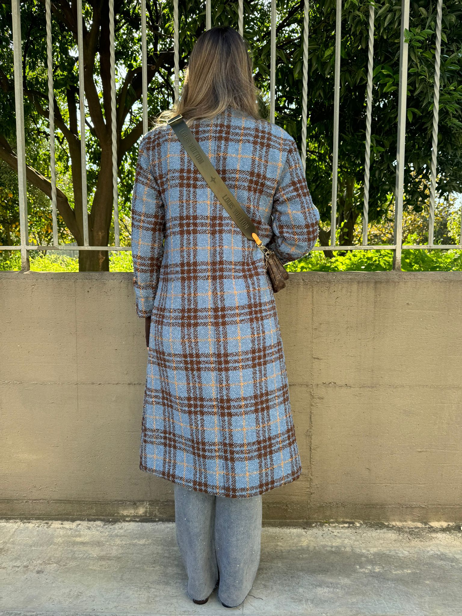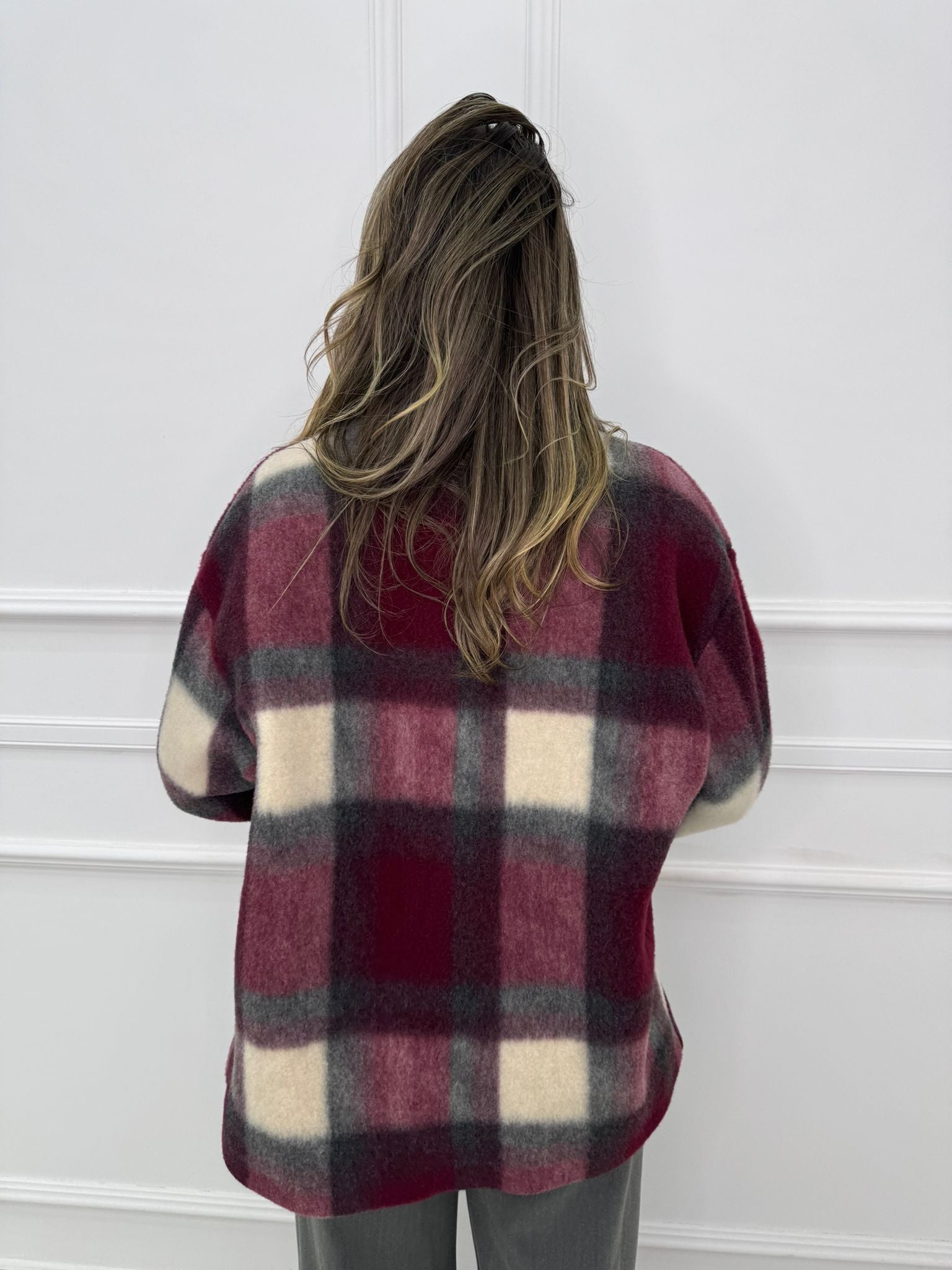 Cappotto lungo modello over fantasia quadrettini