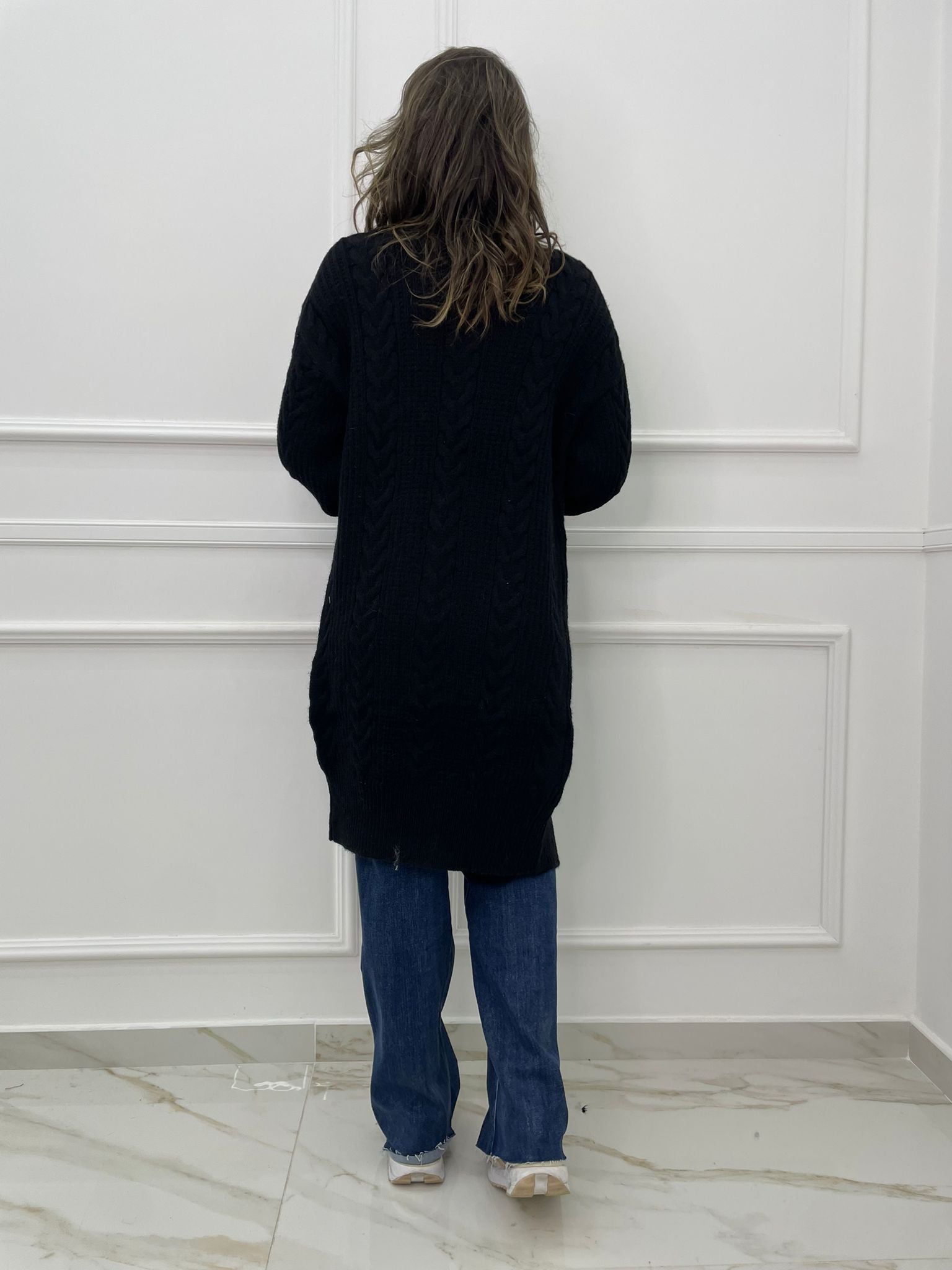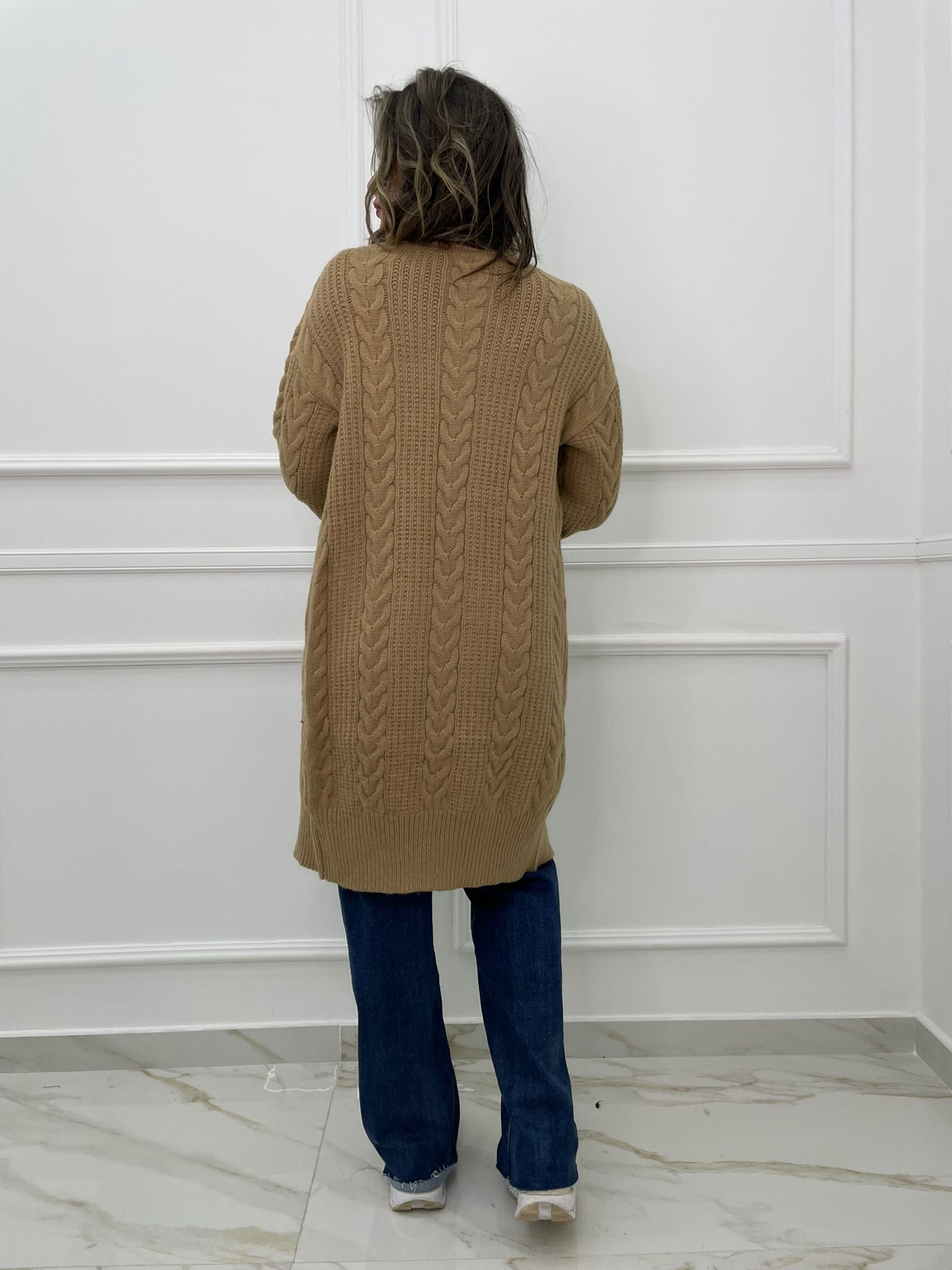 Cardigan lungo tinta unita trama treccia