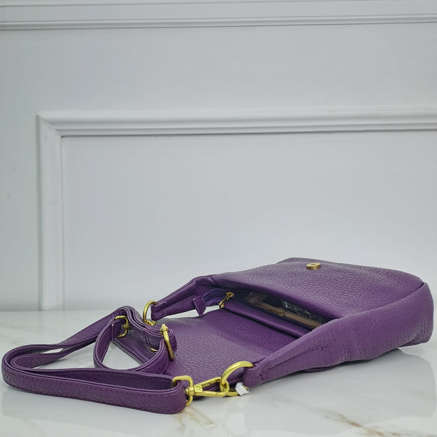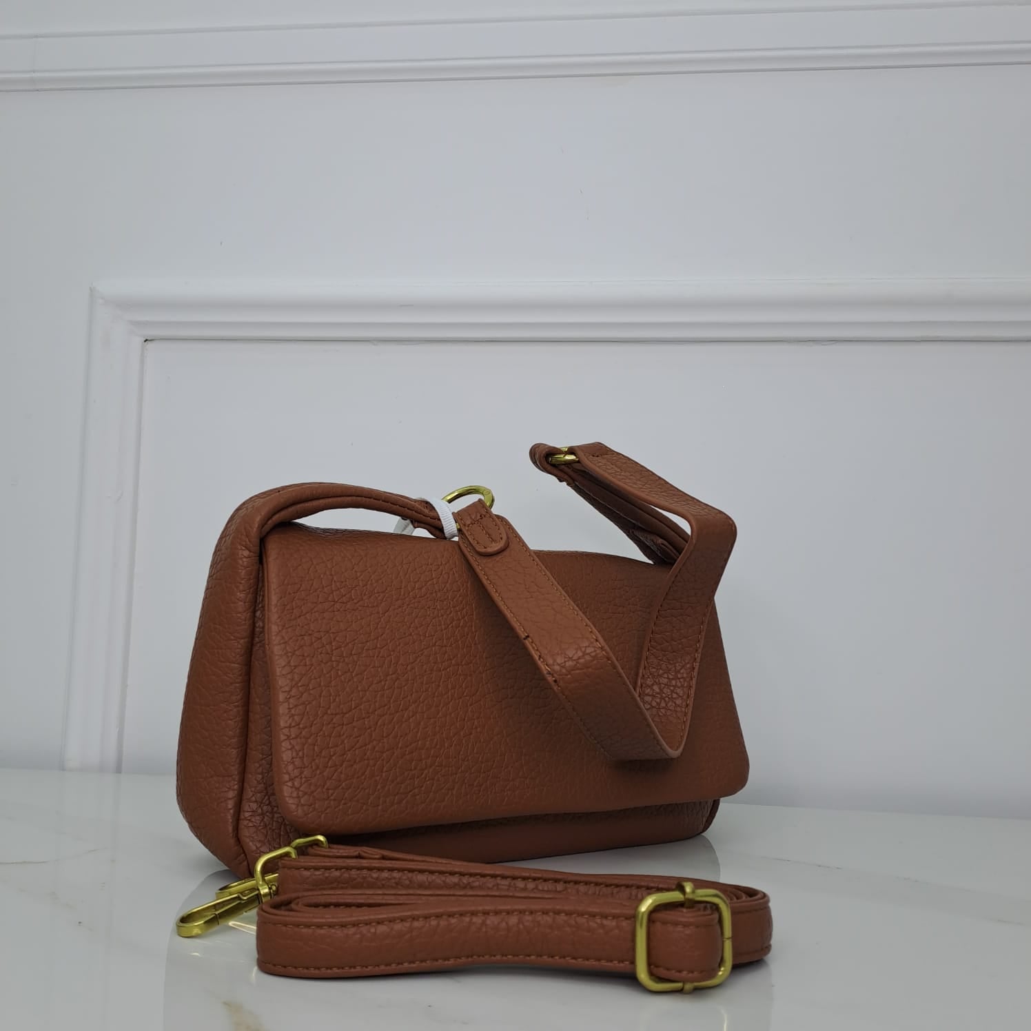 Borsa in eco pelle tinta unita con chiusura nascosta