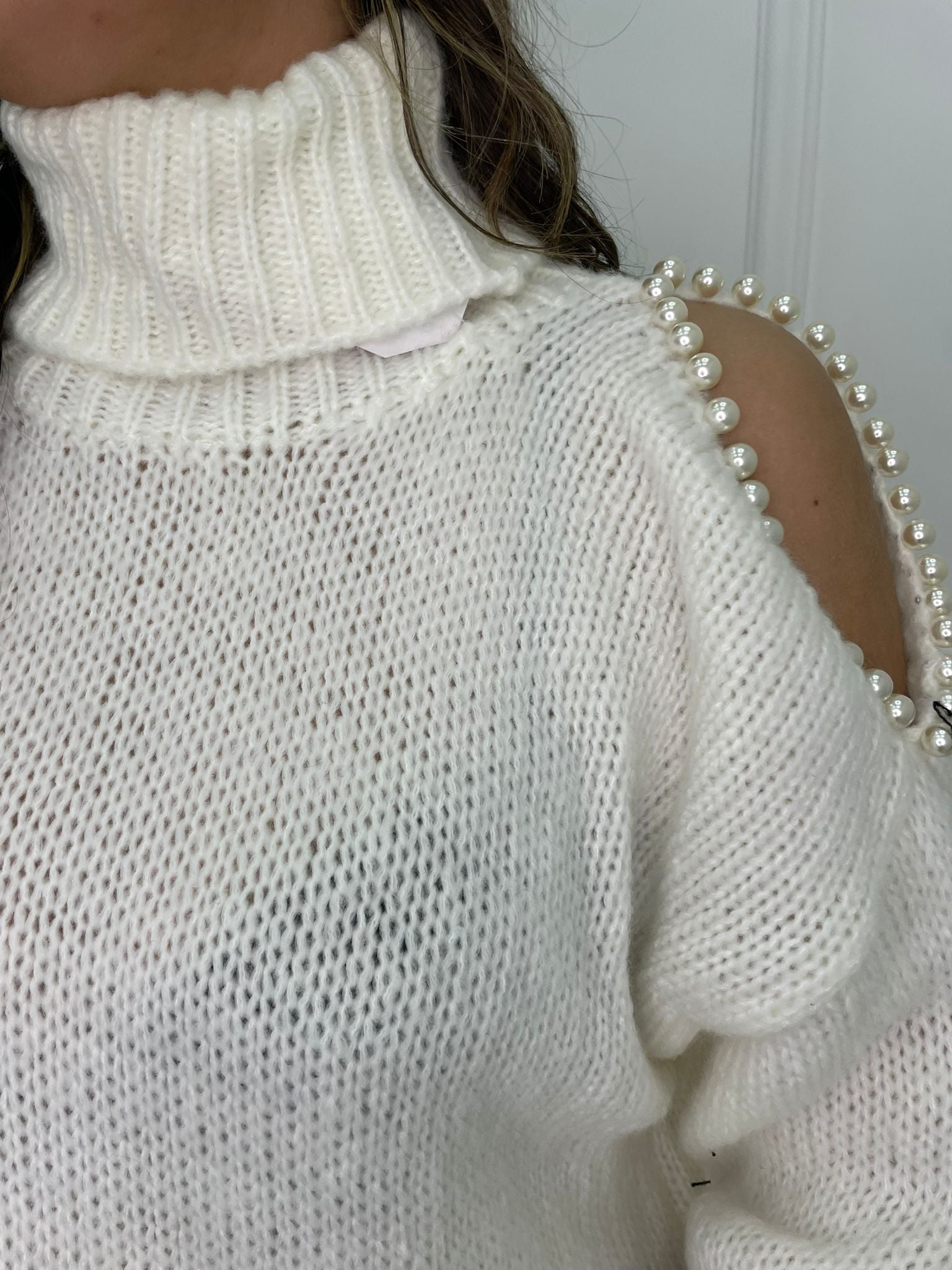 Maglione over con spalla scoperta con perle