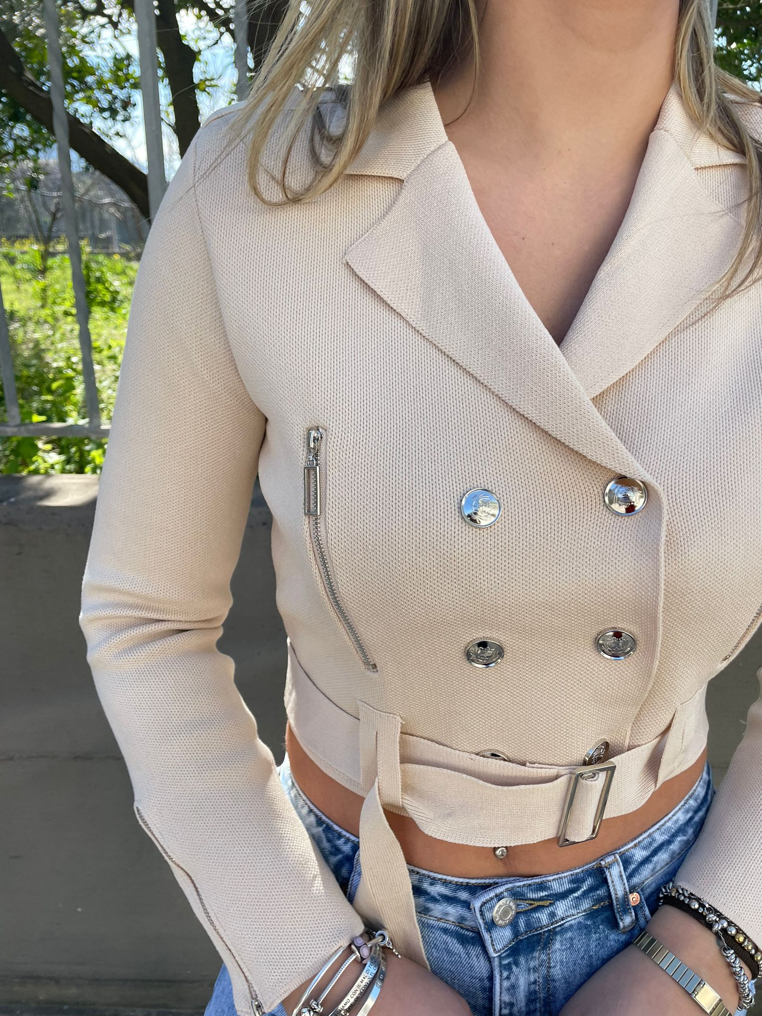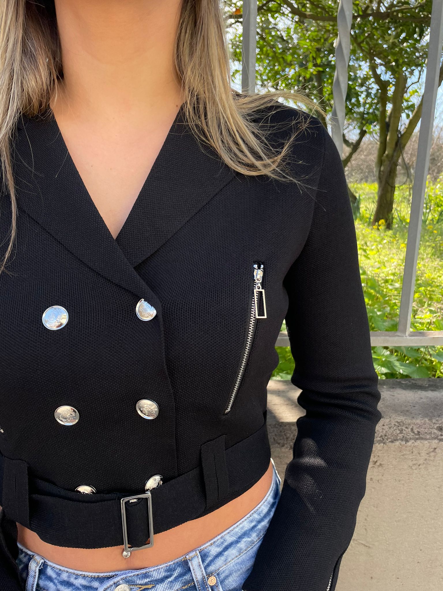 Giacca in filo doppio petto con cintura in vita