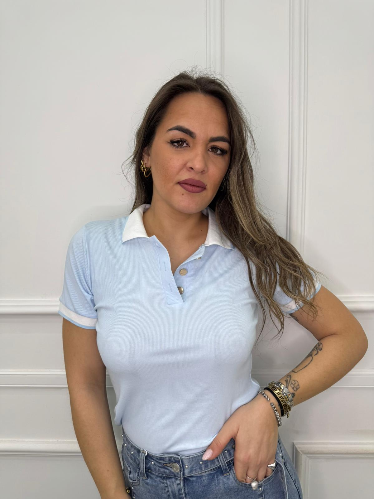 Polo a costine con colletto bianco