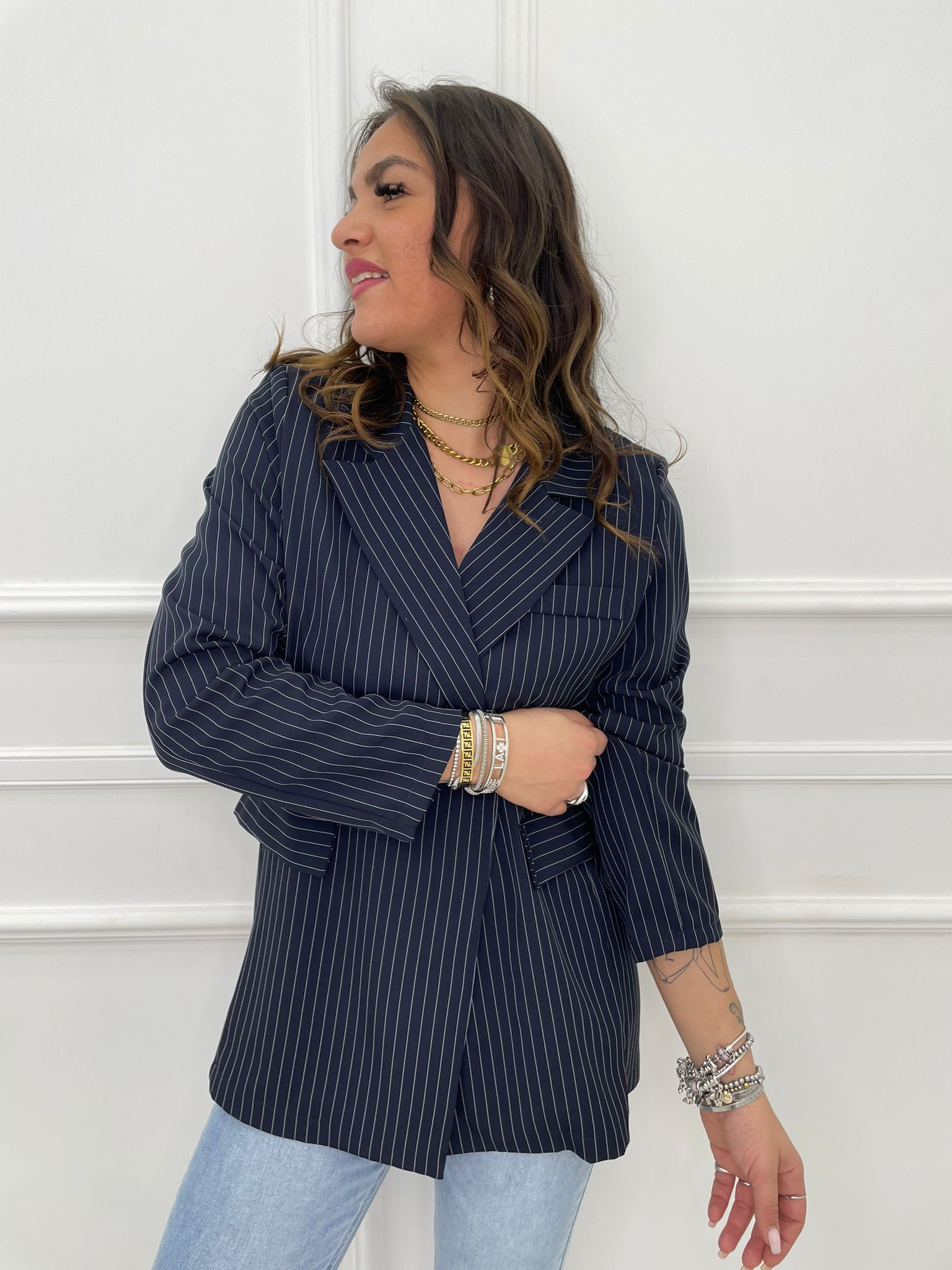 Giacca over gessata doppio petto